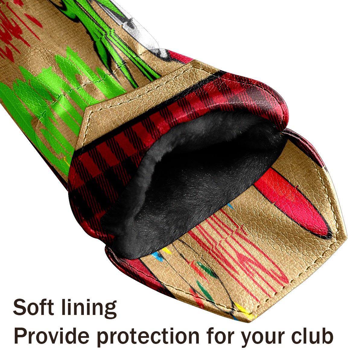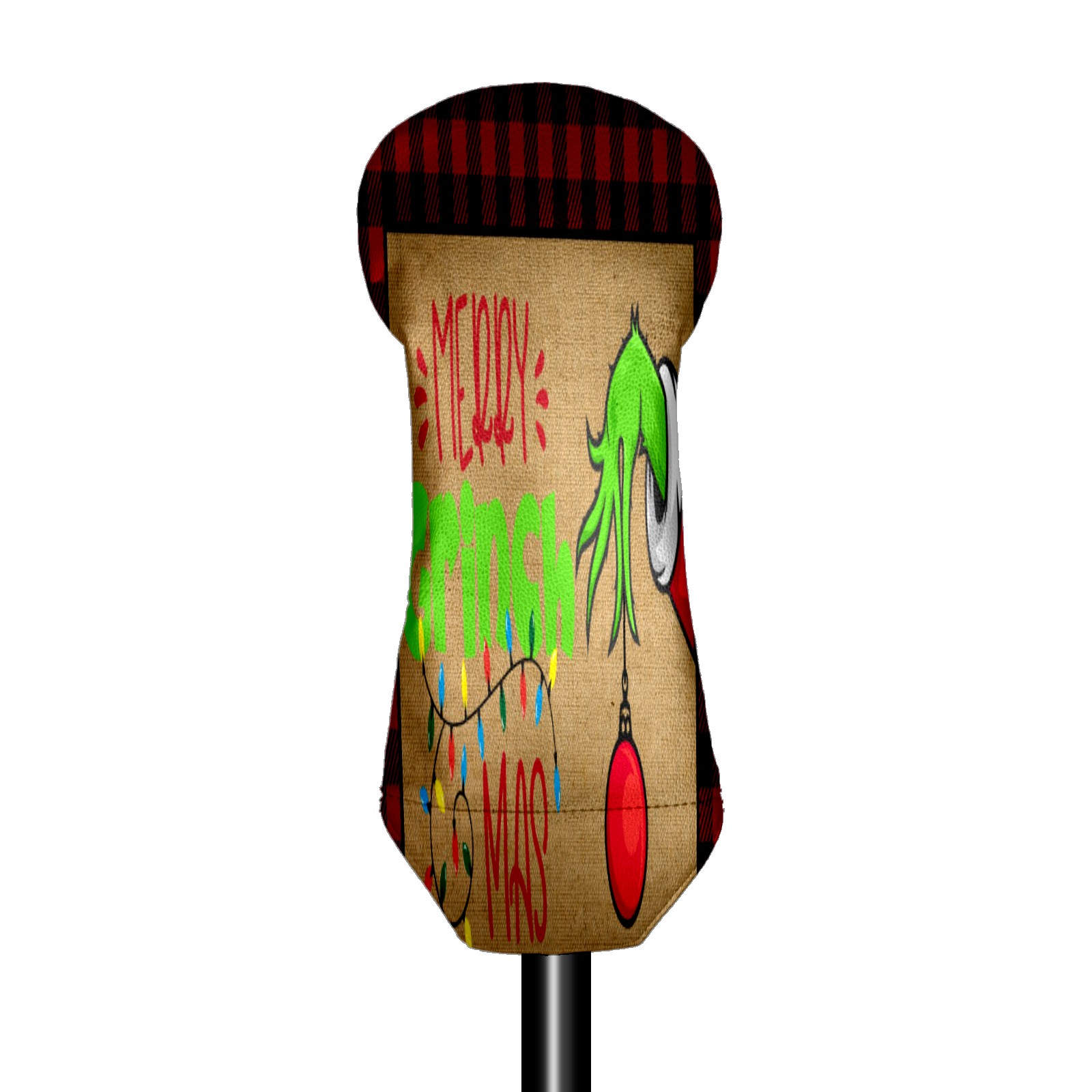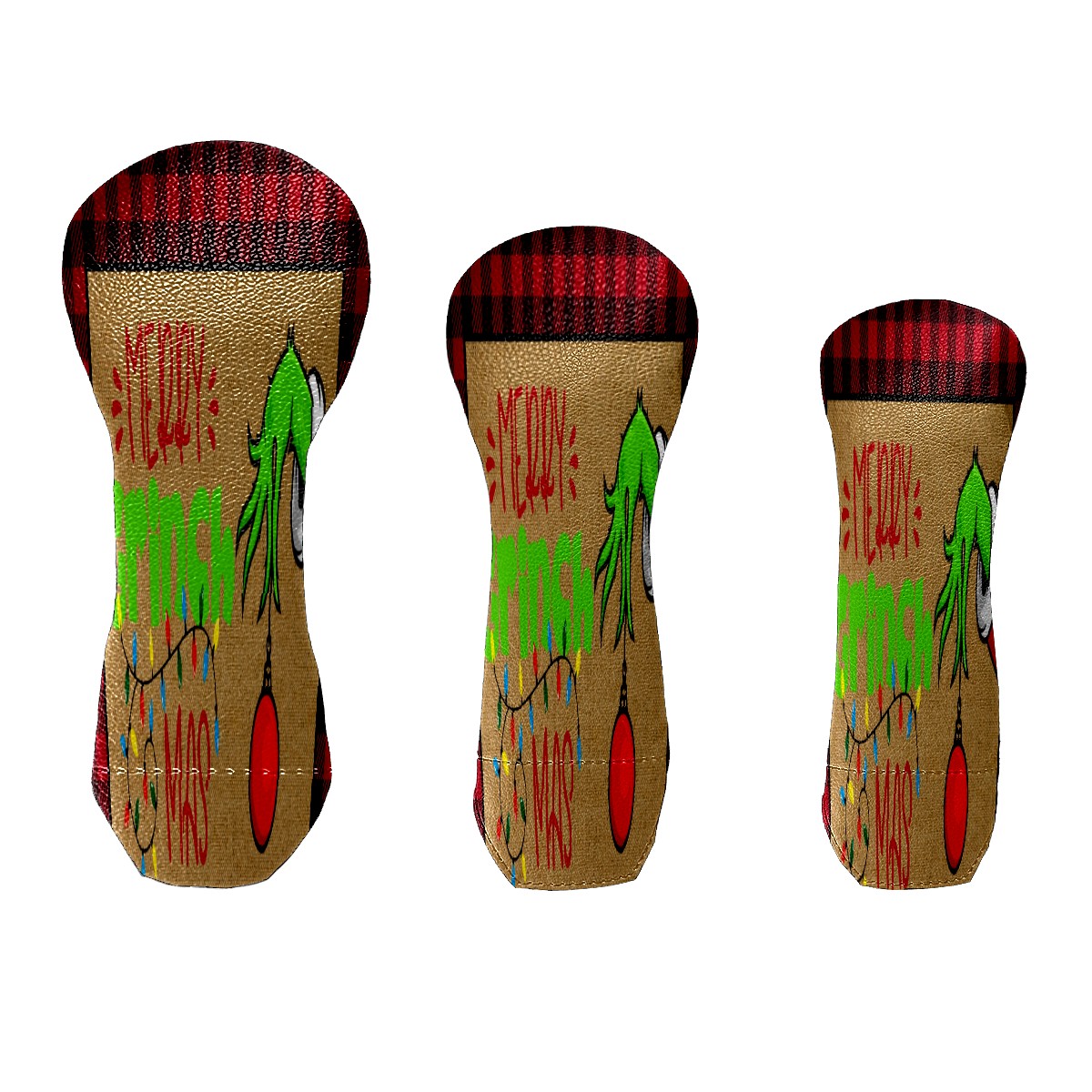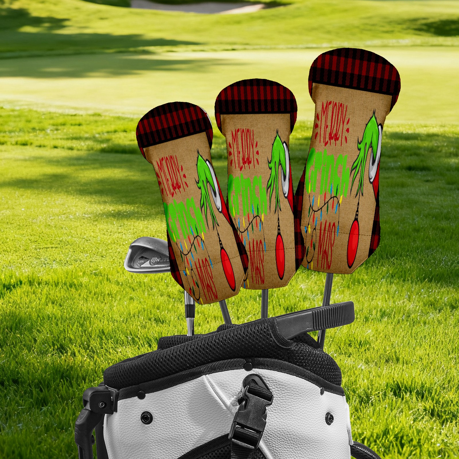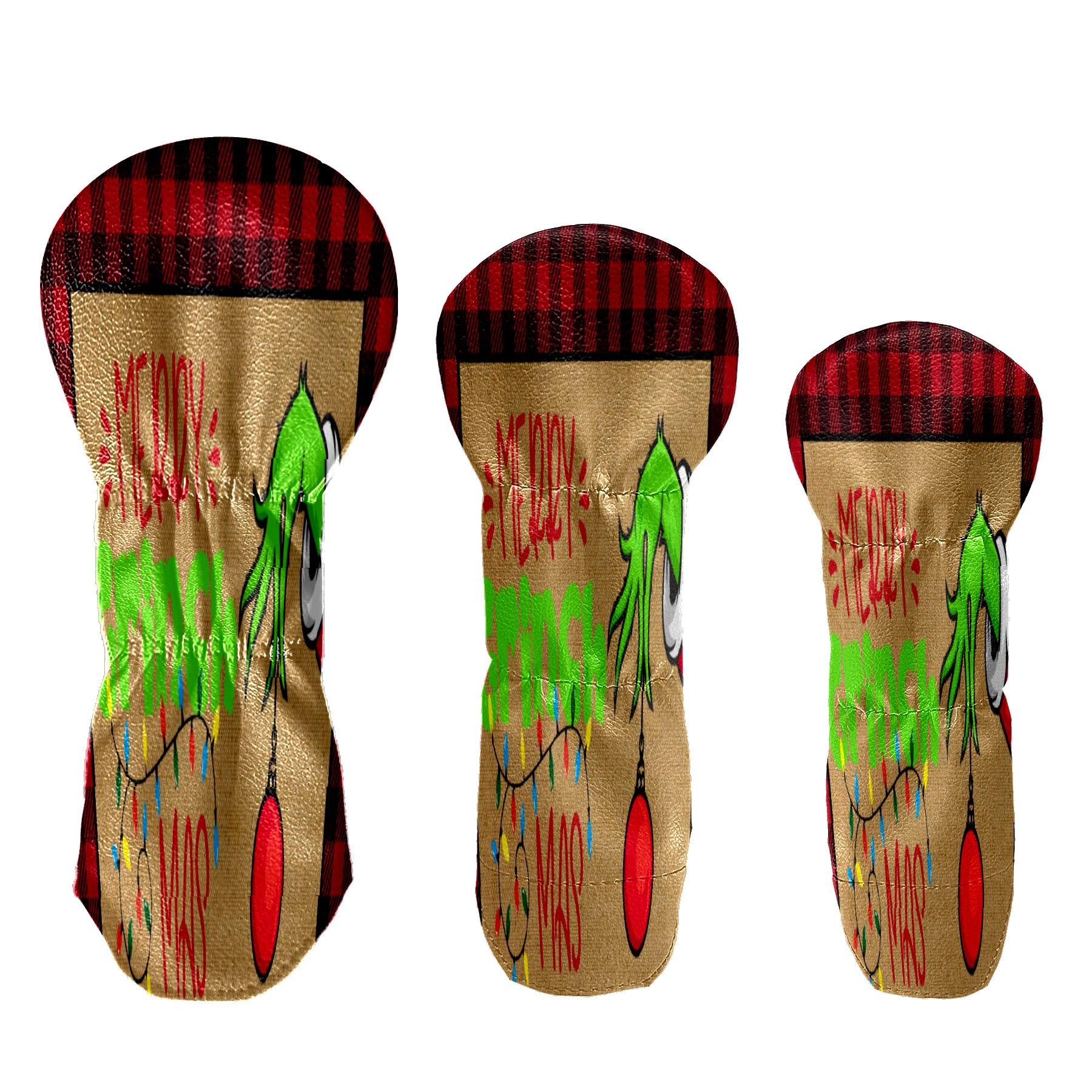 Golf Club Head Cover Waterproof Leather for Driver & Fairway Wood, Driver Headcovers, Golf Accessories for Men Women, Anti-Scratch, Golf Gift for Golfers, 1/3/5 Wood Cover Merry Christmas Grinchmas Buffalo Plaid