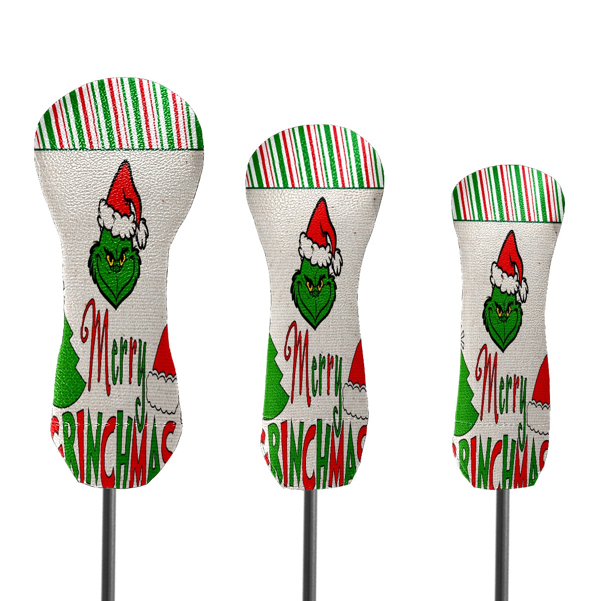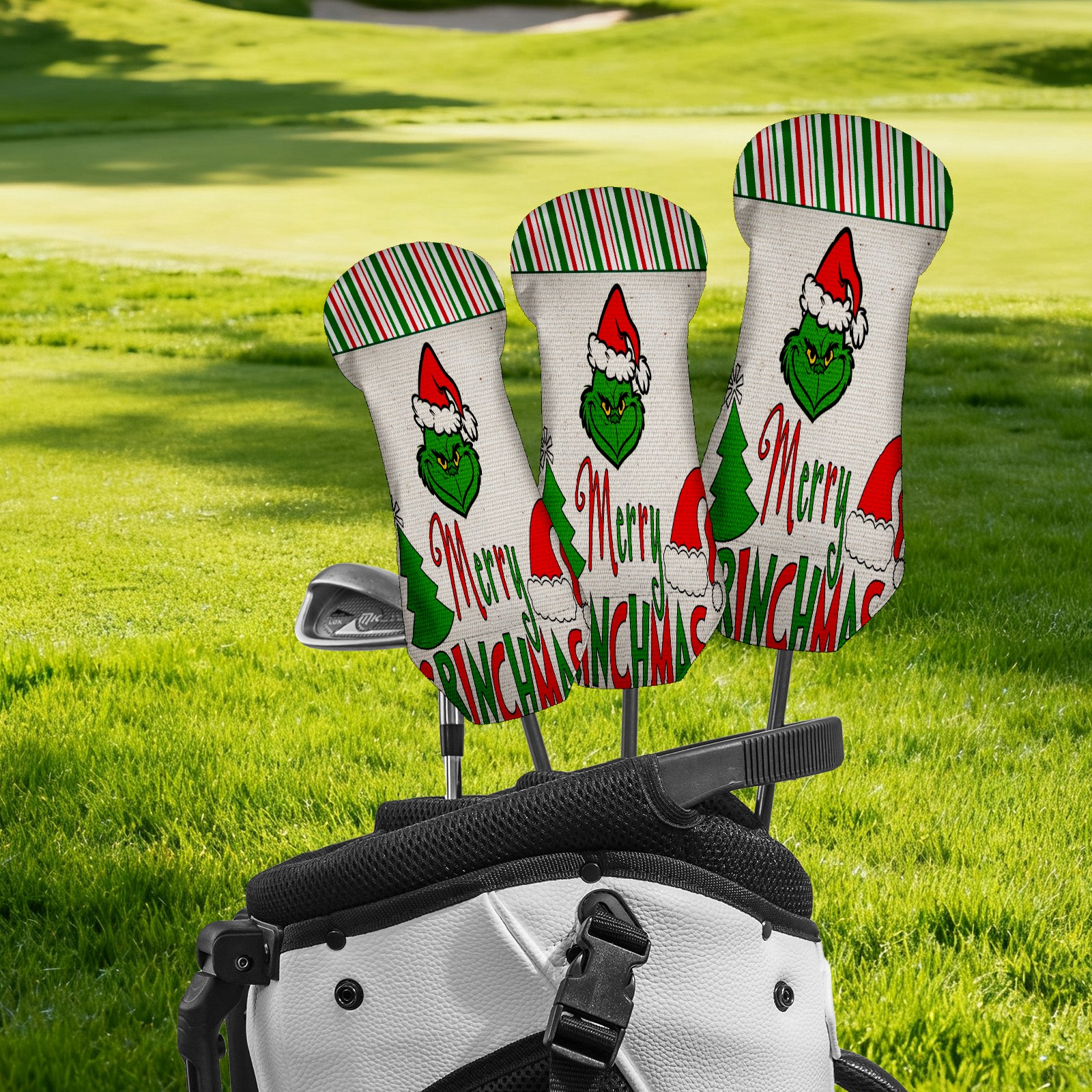 Golf Club Head Cover Waterproof Leather for Driver & Fairway Wood, Driver Headcovers, Golf Accessories for Men Women, Anti-Scratch, Golf Gift for Golfers, 1/3/5 Wood Cover Merry Christmas Grinchmas Stripe (1)