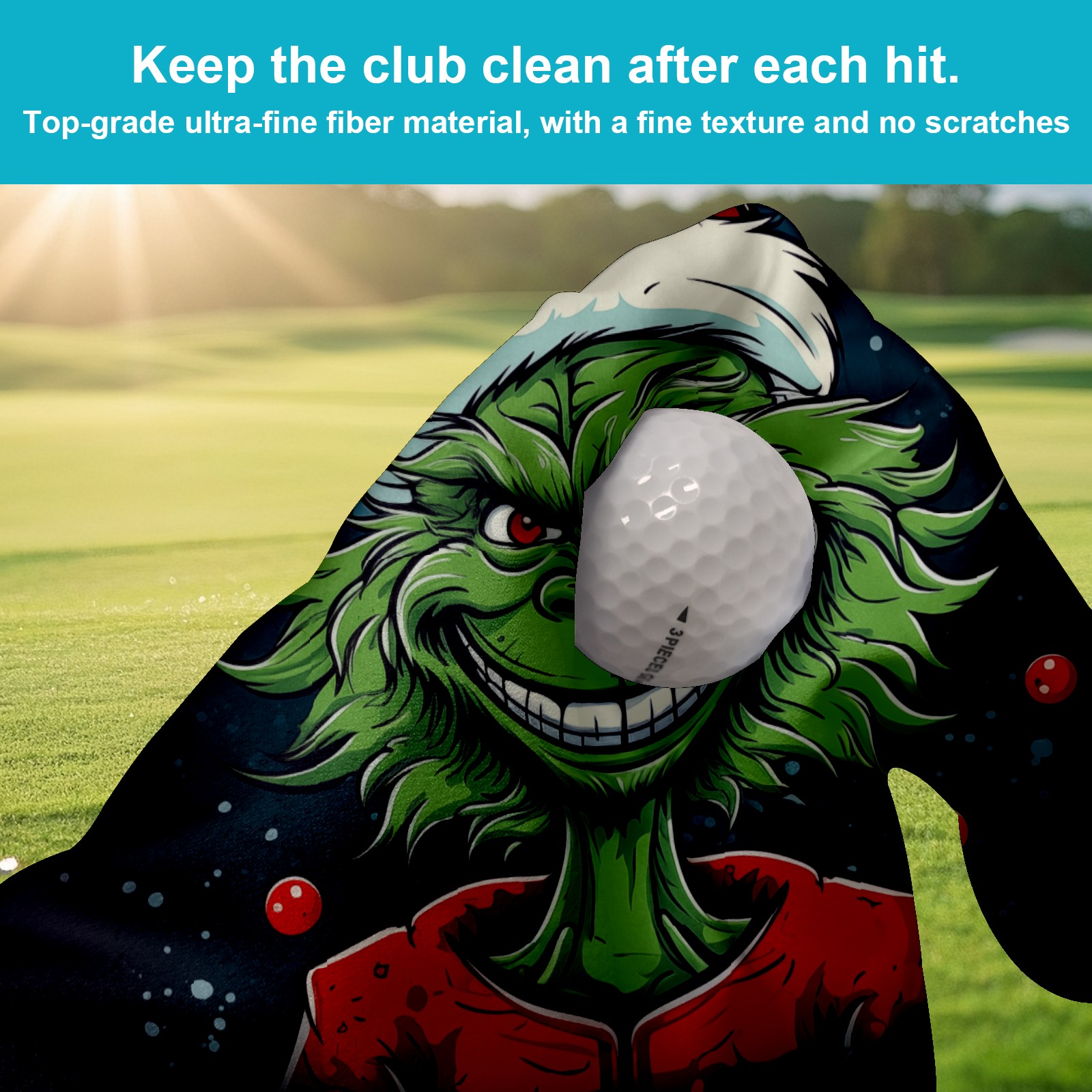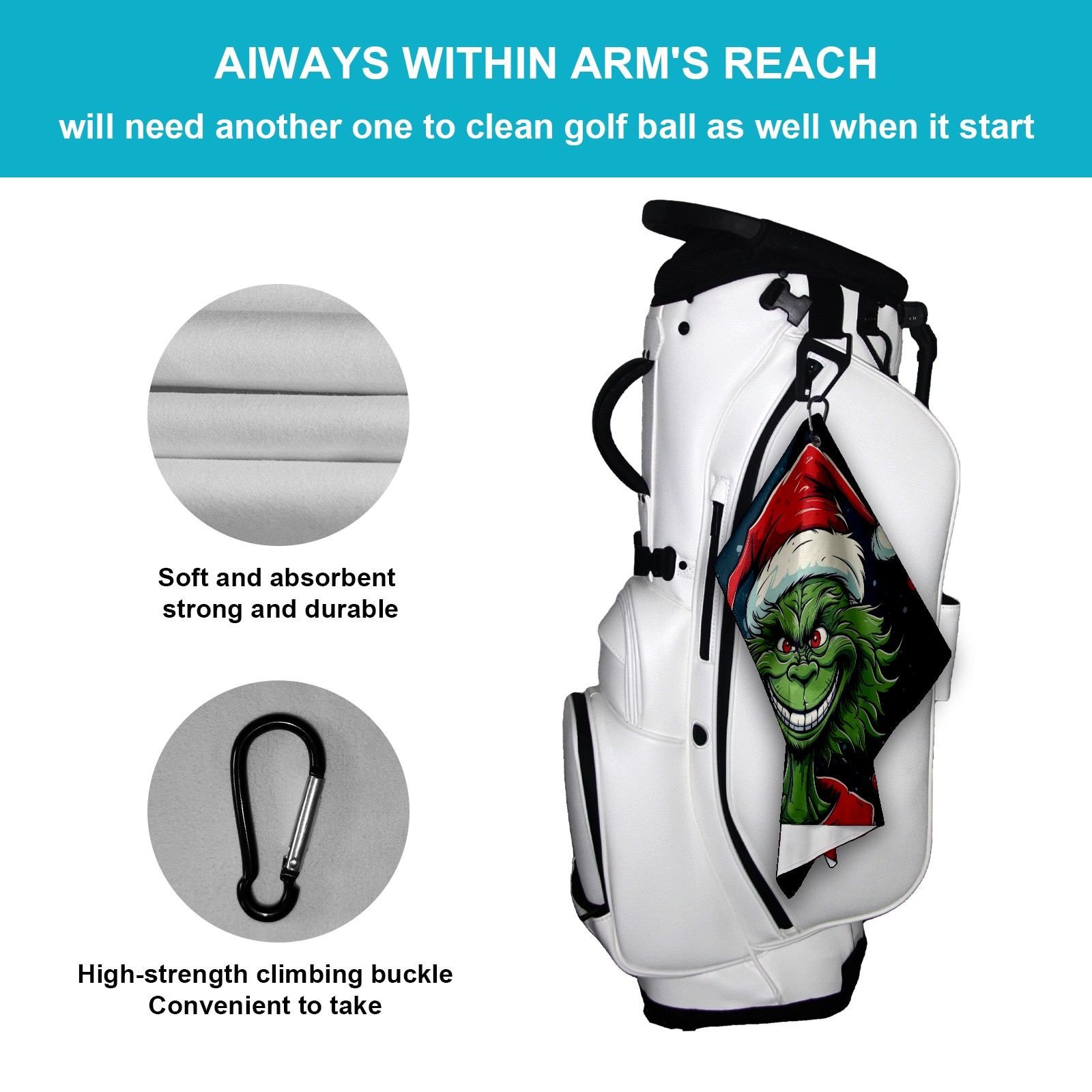 Christmas Grinch Golf Towel Gifts Sport Accessories Embroidered Golf Club Spot-Clean Design for Men Women Golfer Fan Swing Swear Repeat