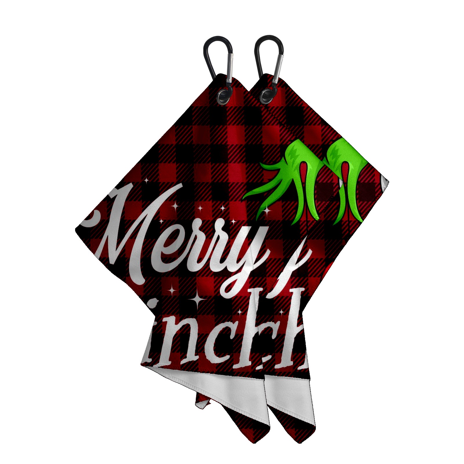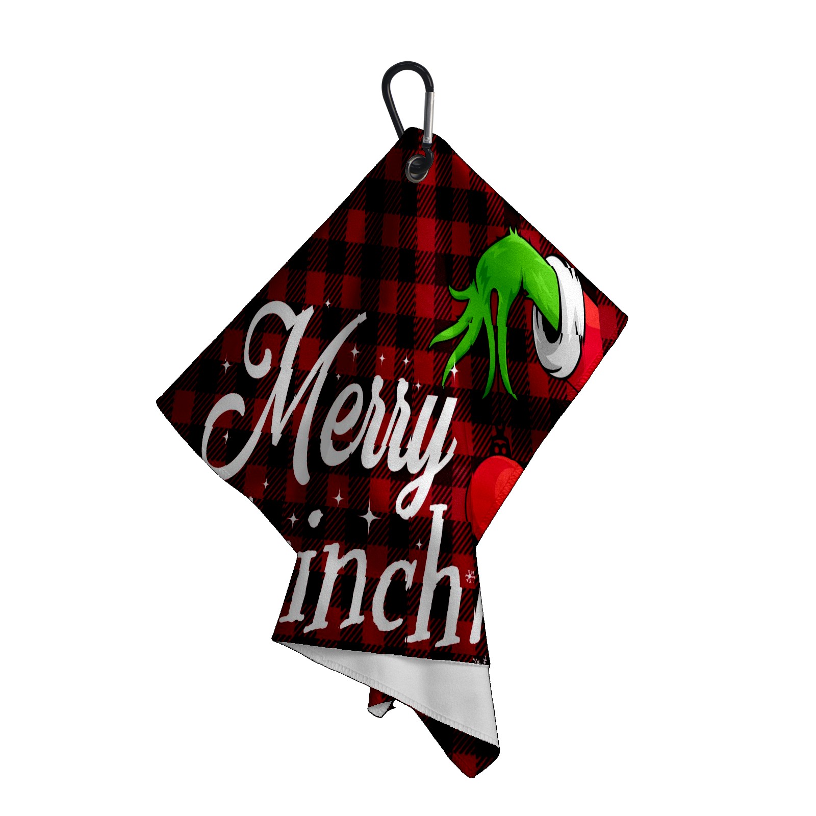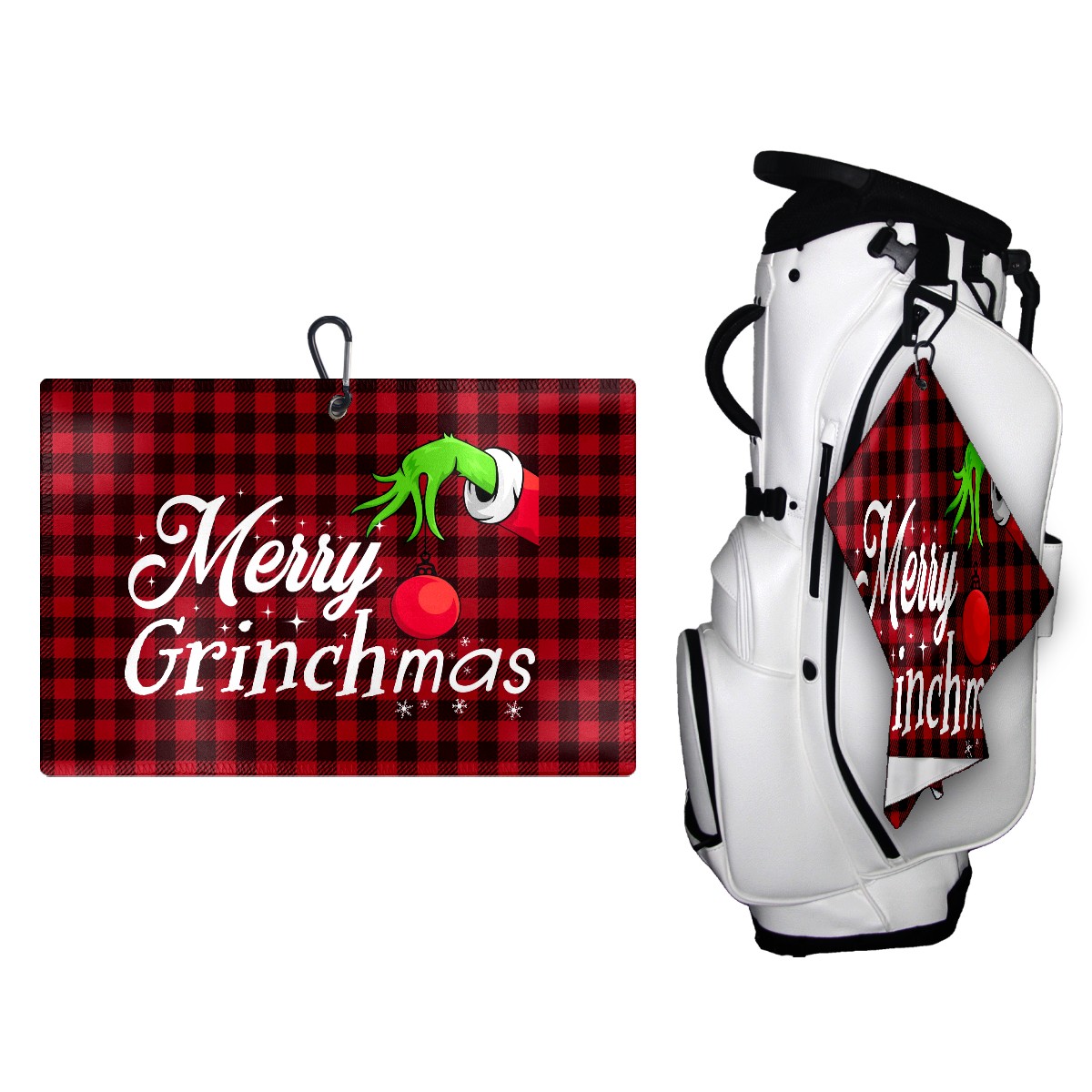 Merry Christmas Grinchmas Buffalo Plaid (1) Golf Towel Gifts Sport Accessories Embroidered Golf Club Spot-Clean Design for Men Women Golfer Fan Swing Swear Repeat