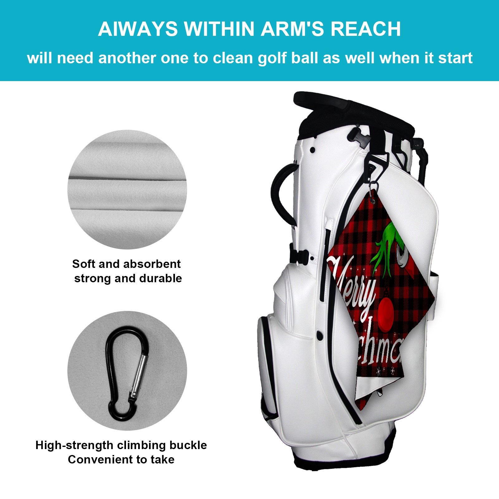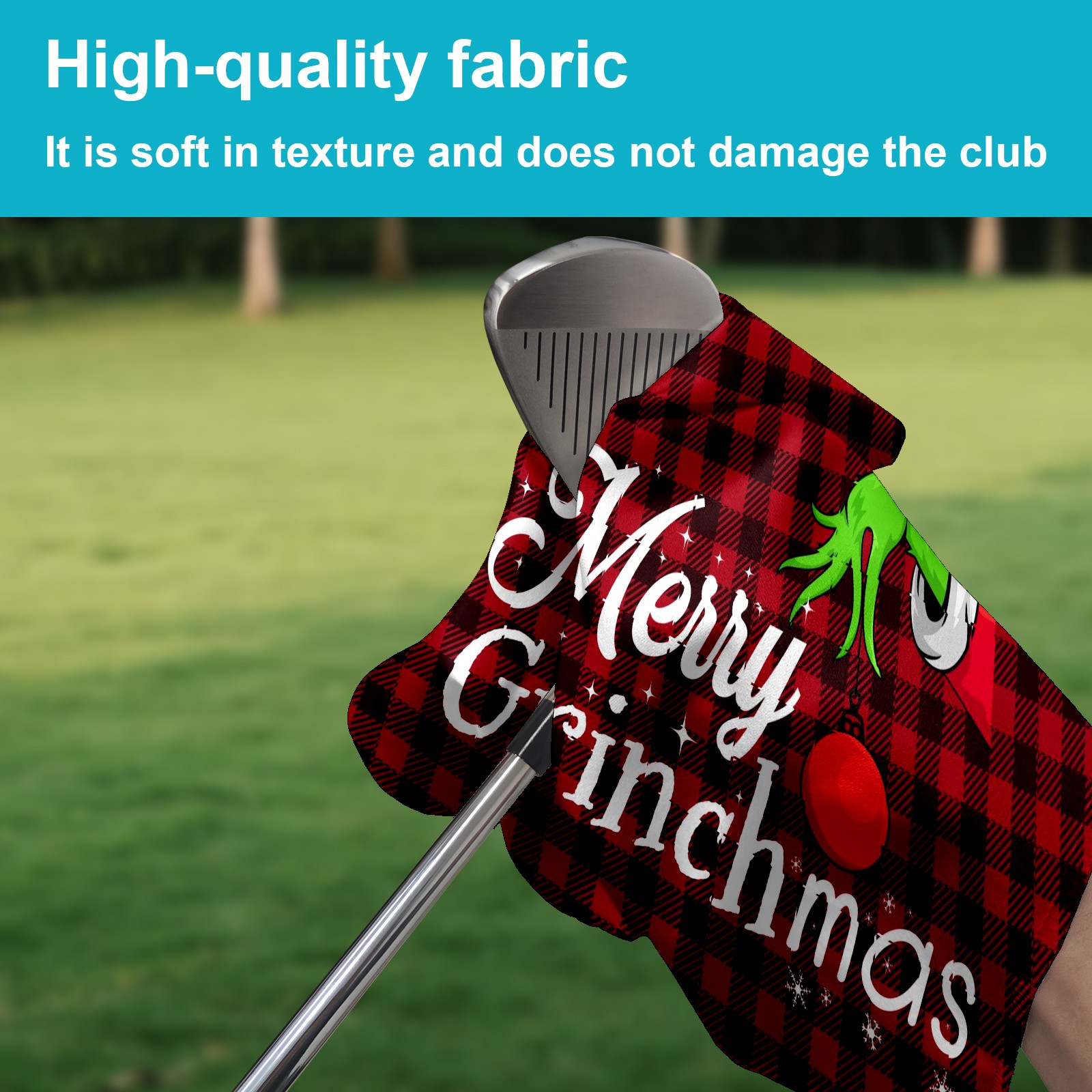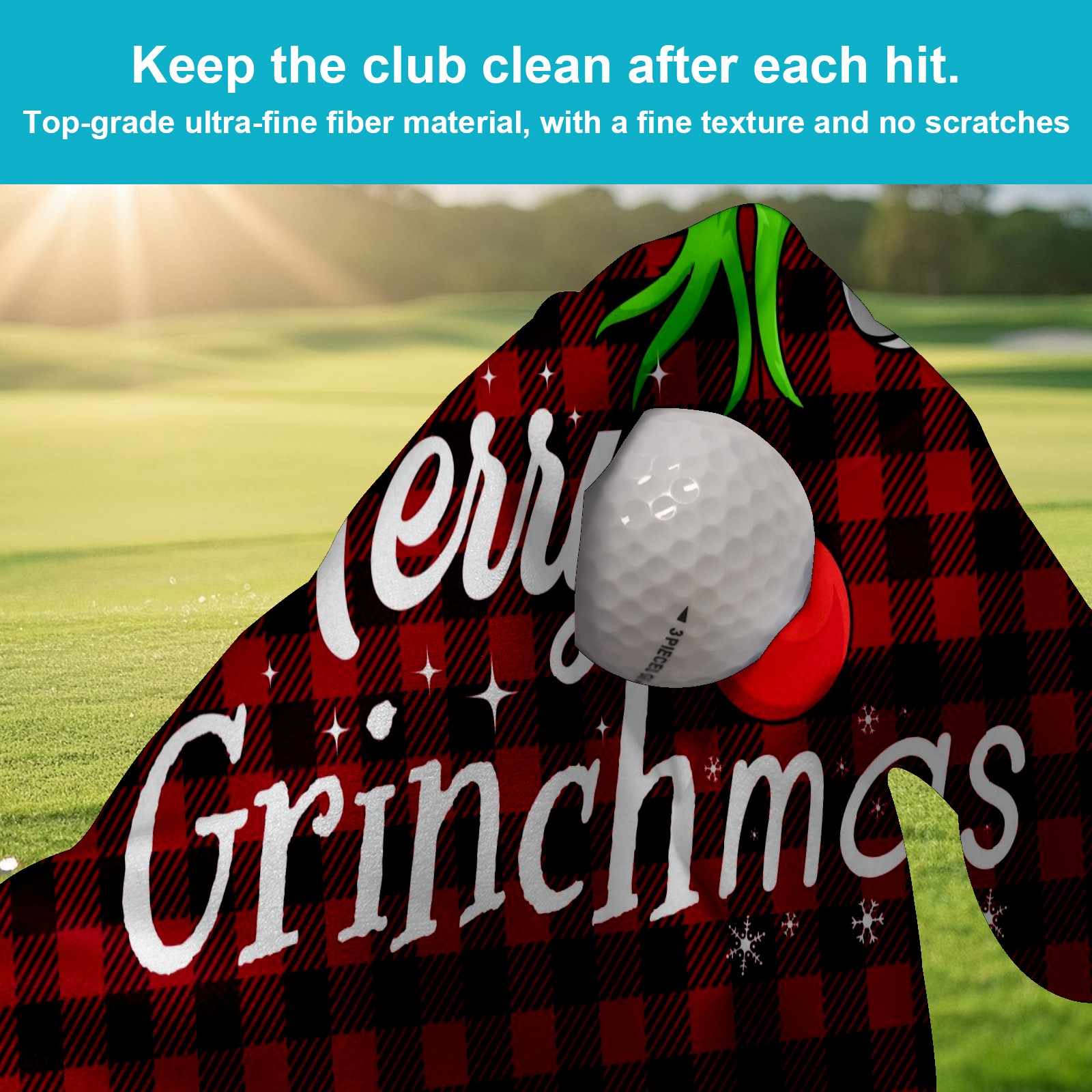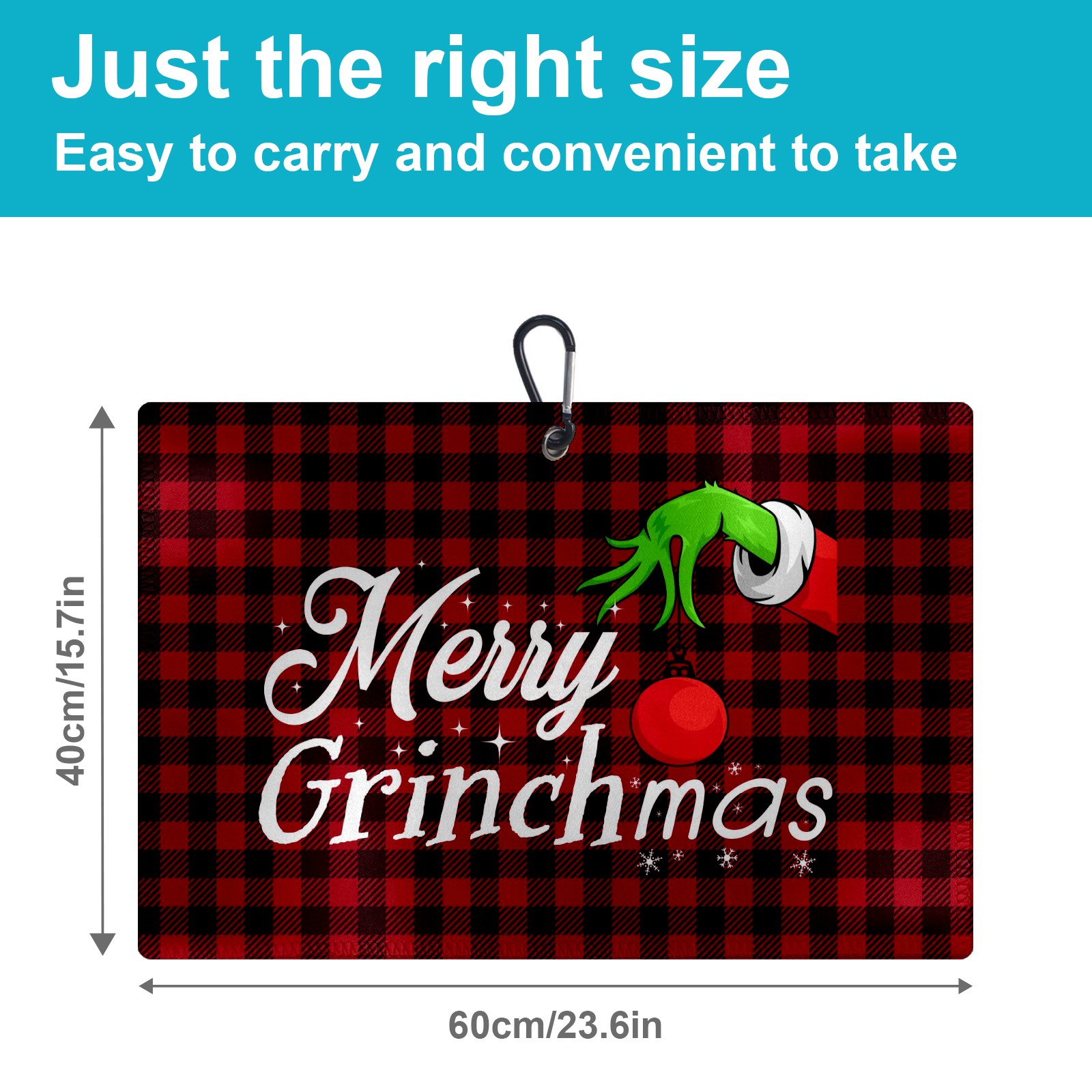 Merry Christmas Grinchmas Buffalo Plaid (1) Golf Towel Gifts Sport Accessories Embroidered Golf Club Spot-Clean Design for Men Women Golfer Fan Swing Swear Repeat