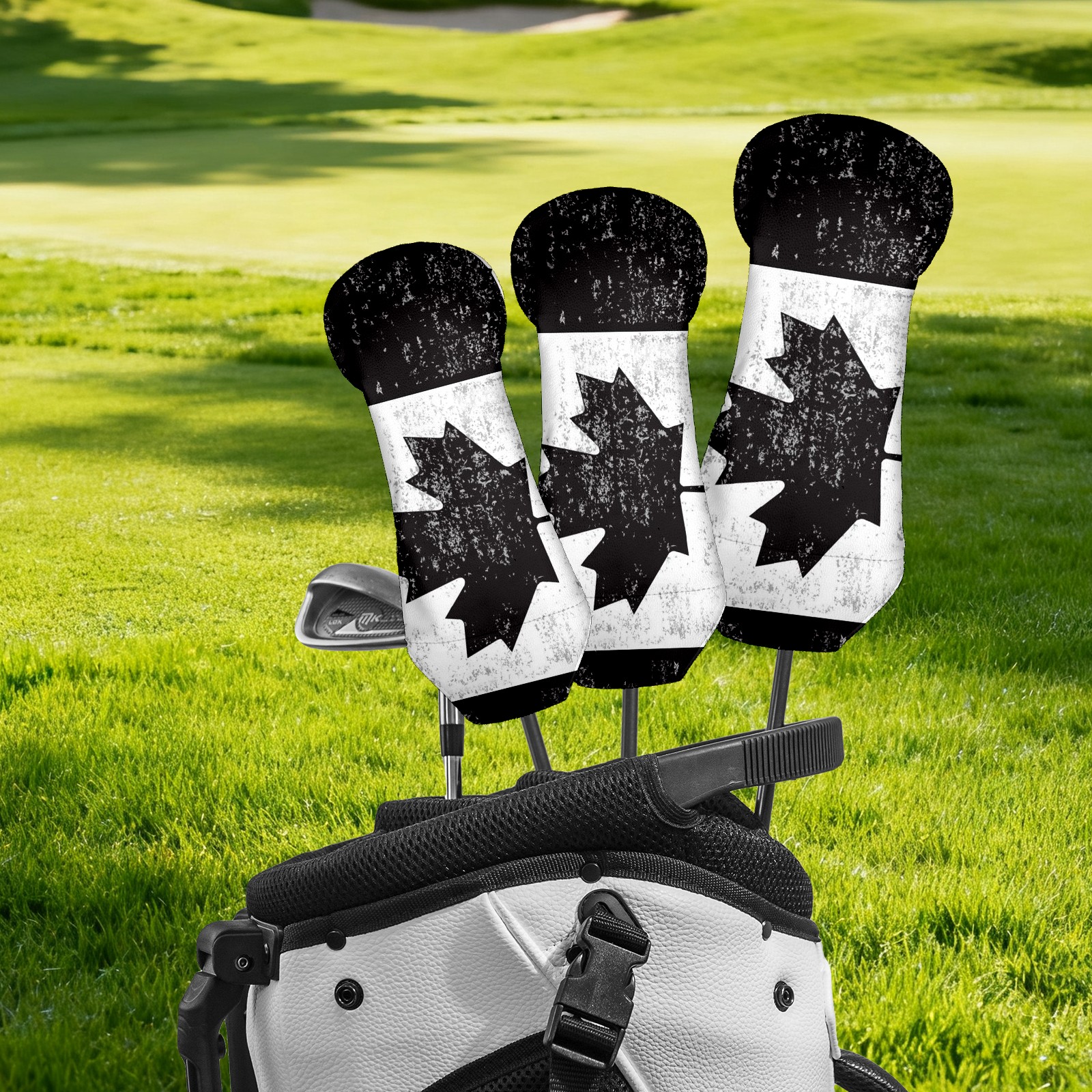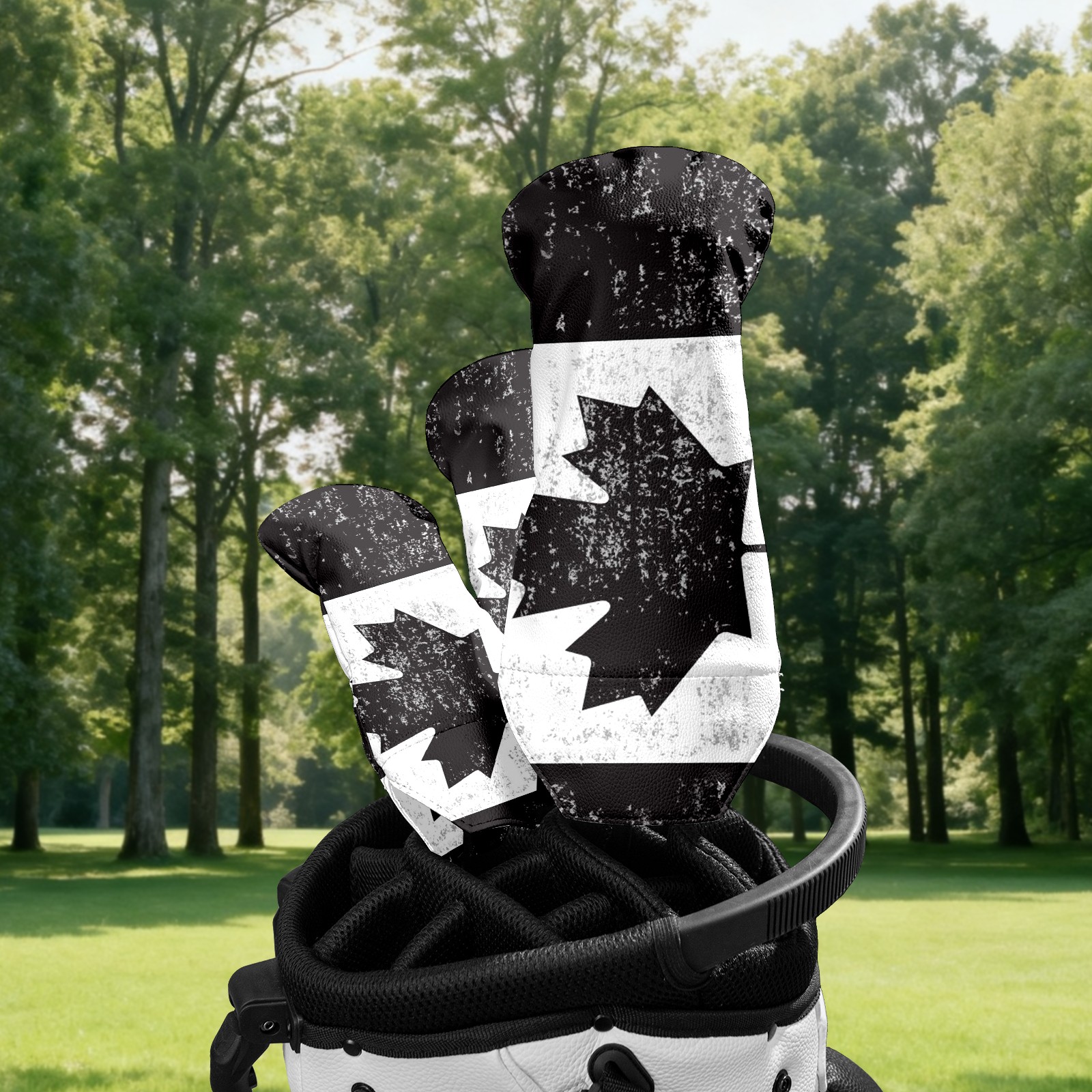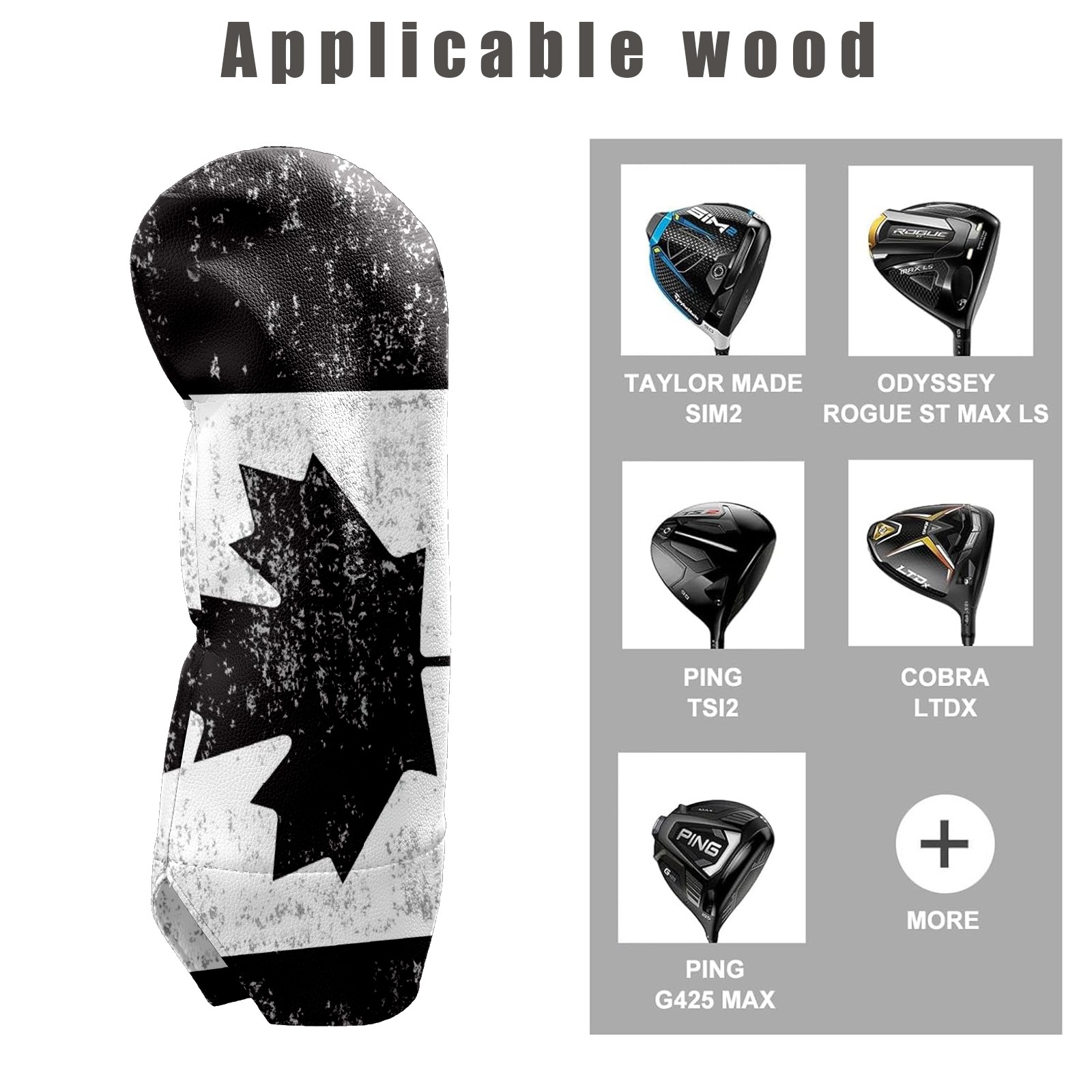 Golf Club Head Covers Driver Cover Fairway Hybrid Headcover Premium Leather Golf Head Covers for Woods and Driver Hybrid, Golf Headcovers for Women Men (Black Flag)