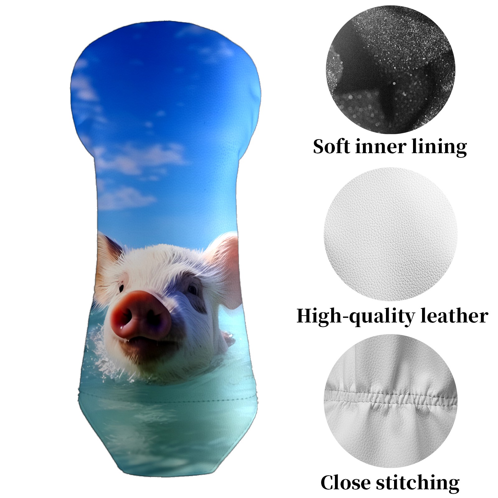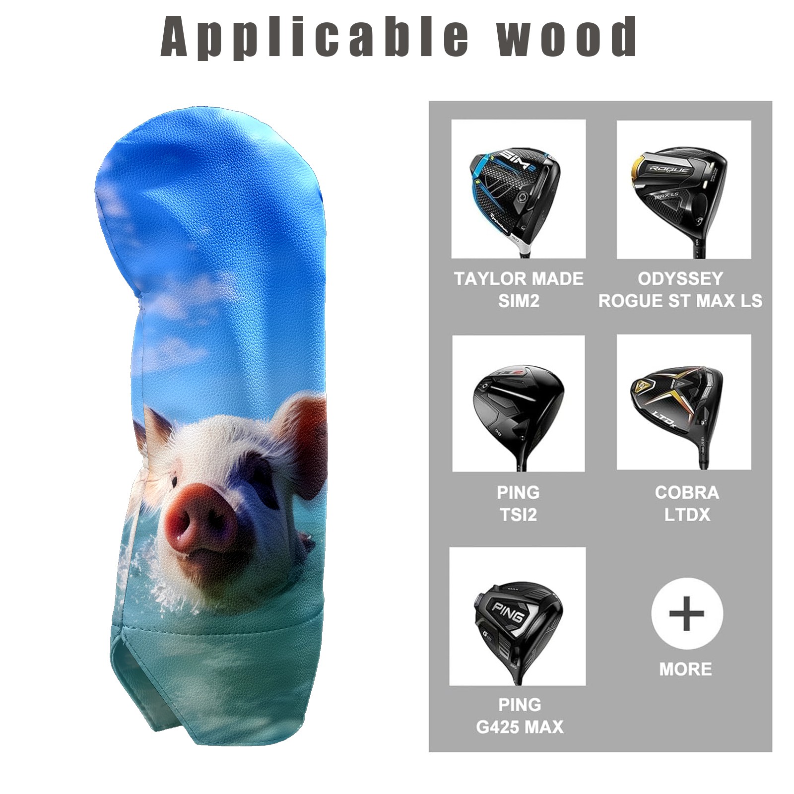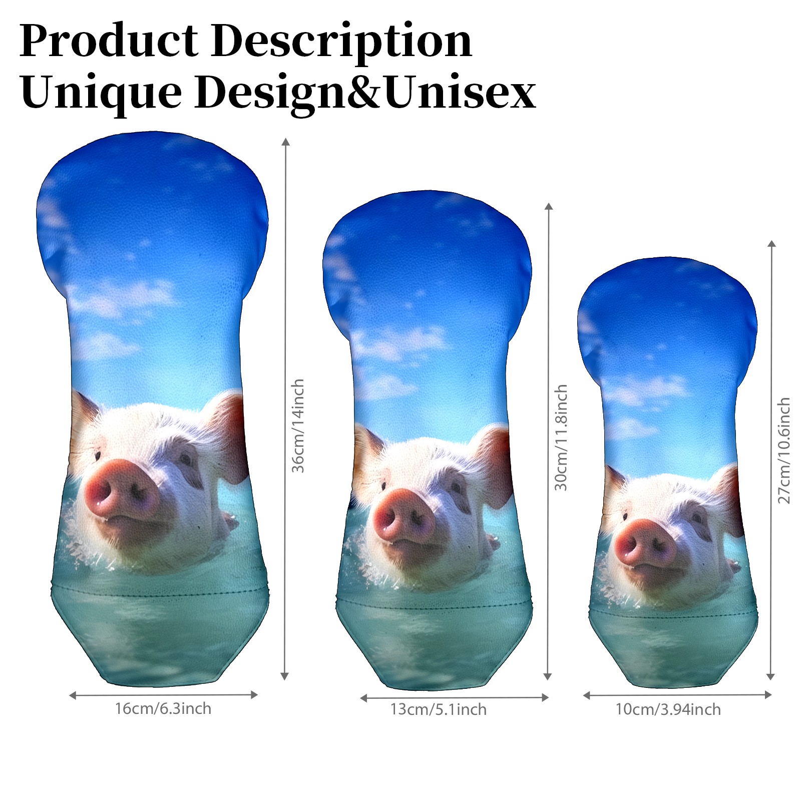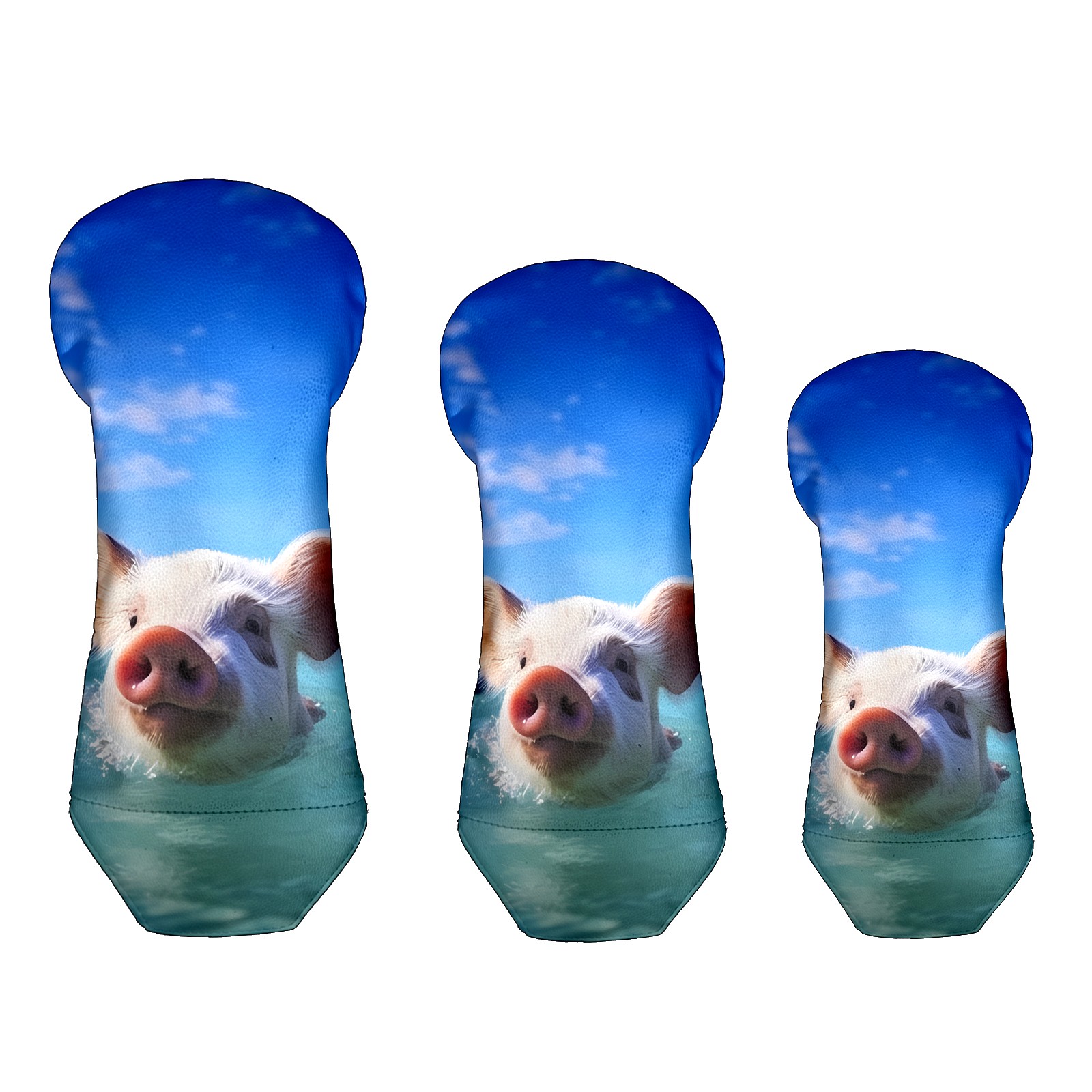 Golf Club Head Covers Driver Cover Fairway Hybrid Headcover Premium Leather Golf Head Covers for Woods and Driver Hybrid, Golf Headcovers for Women Men (Pigs Swimming (2))