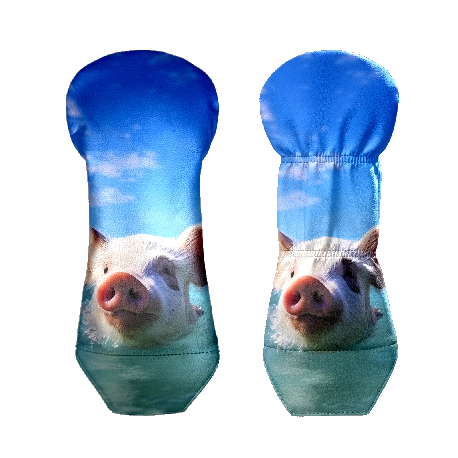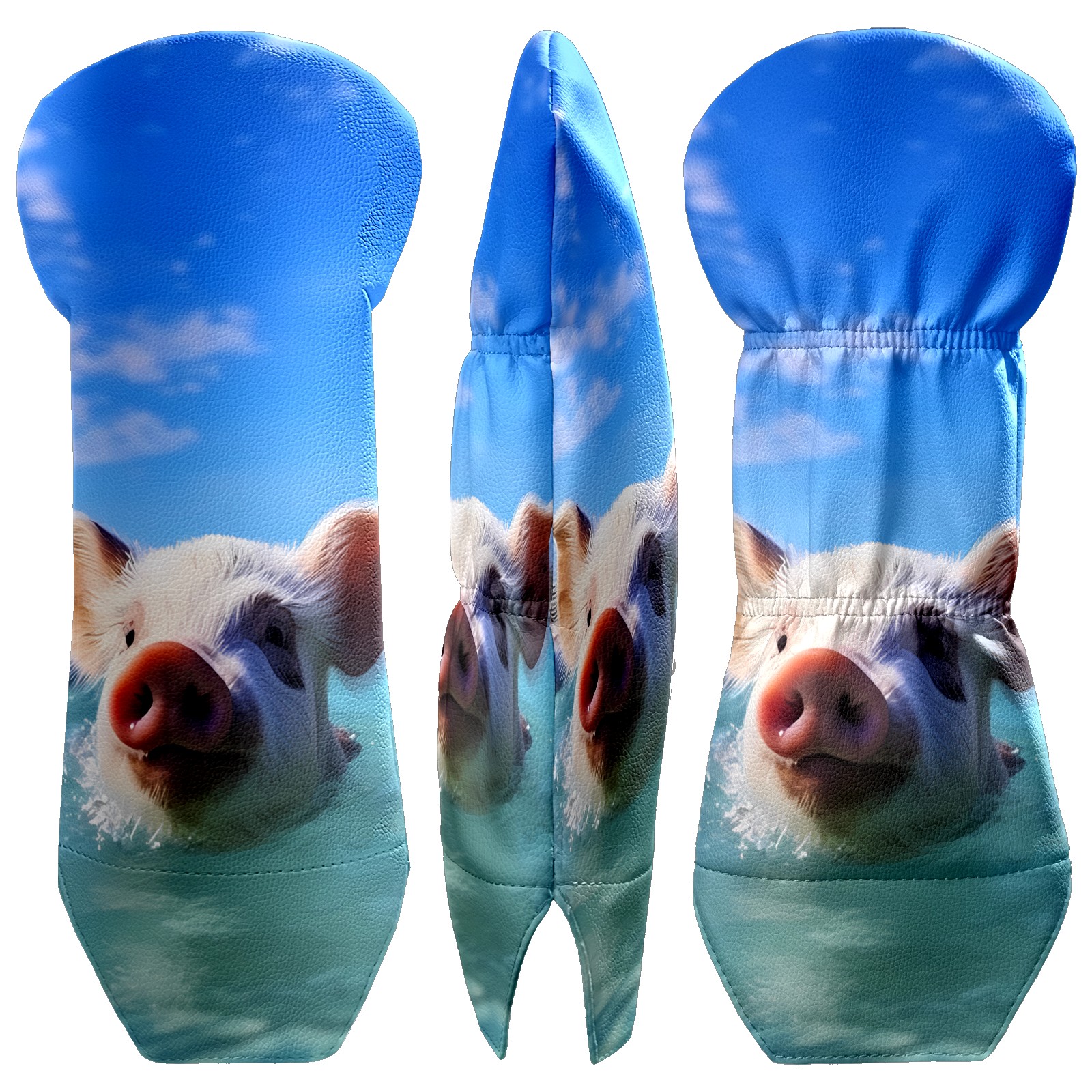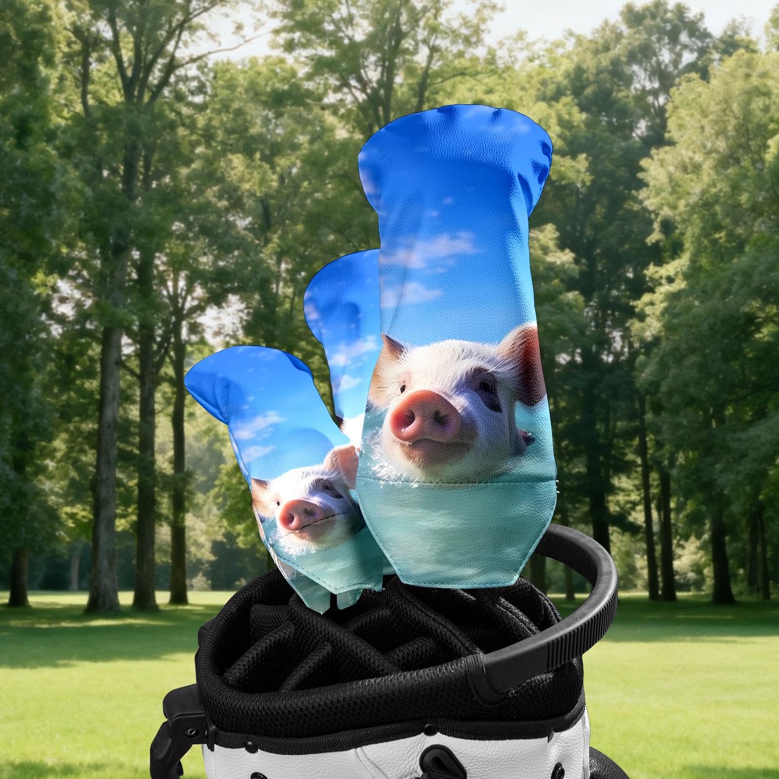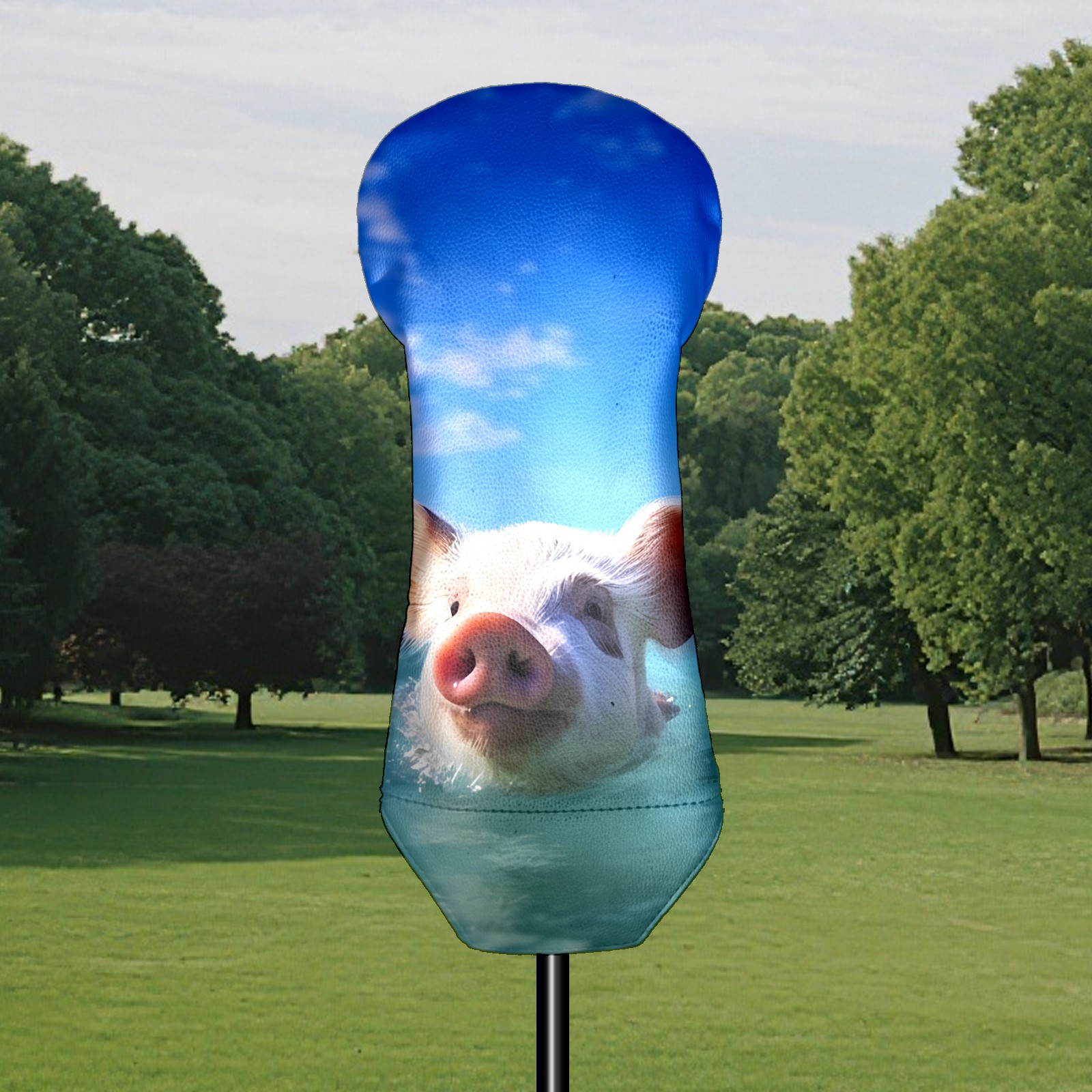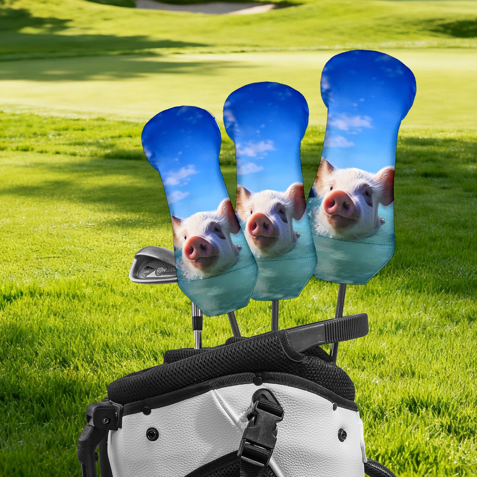 Golf Club Head Covers Driver Cover Fairway Hybrid Headcover Premium Leather Golf Head Covers for Woods and Driver Hybrid, Golf Headcovers for Women Men (Pigs Swimming (2))