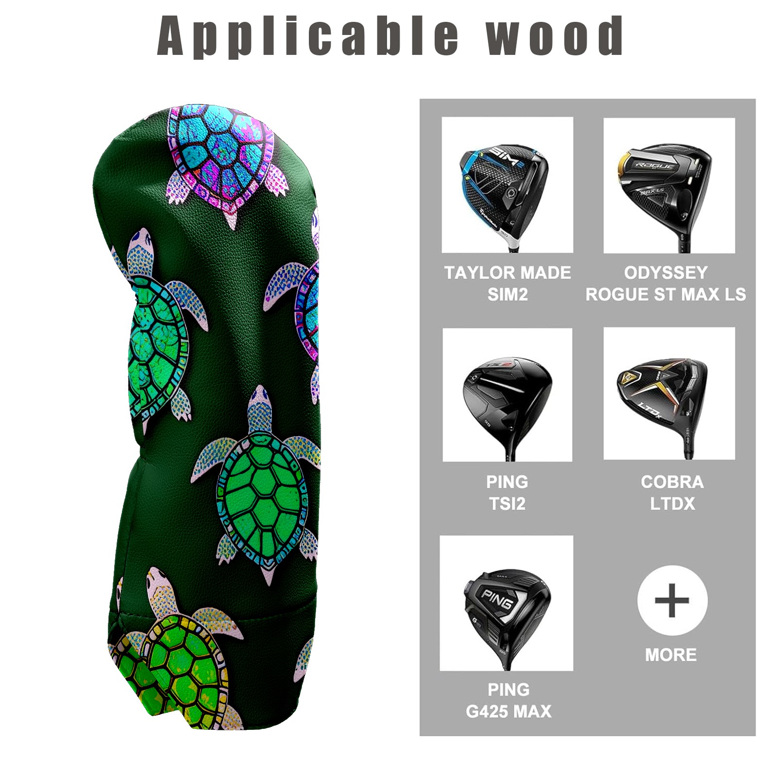 Golf Club Head Covers Driver Cover Fairway Hybrid Headcover Premium Leather Golf Head Covers for Woods and Driver Hybrid, Golf Headcovers for Women Men (Turtle Green)