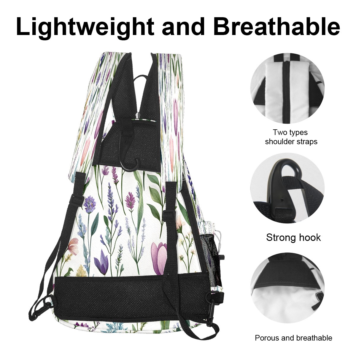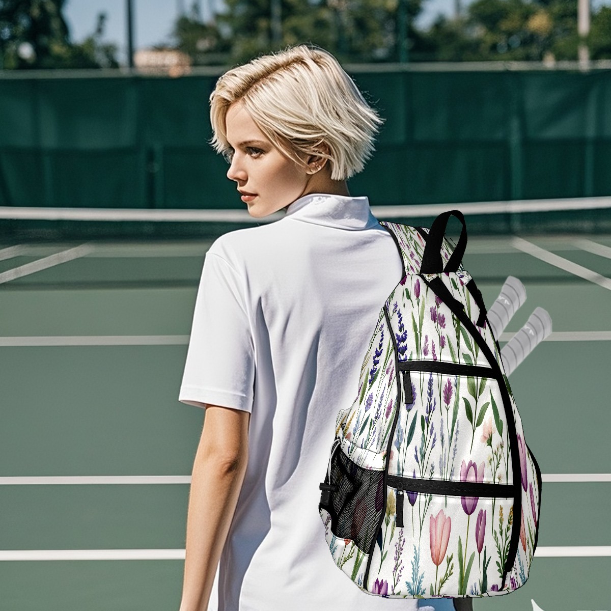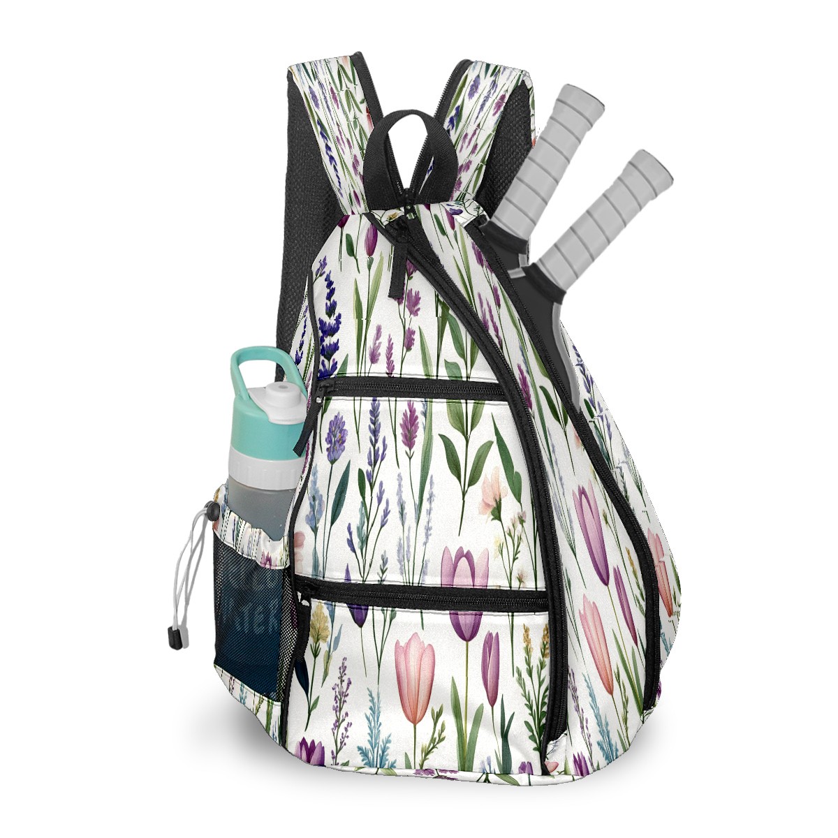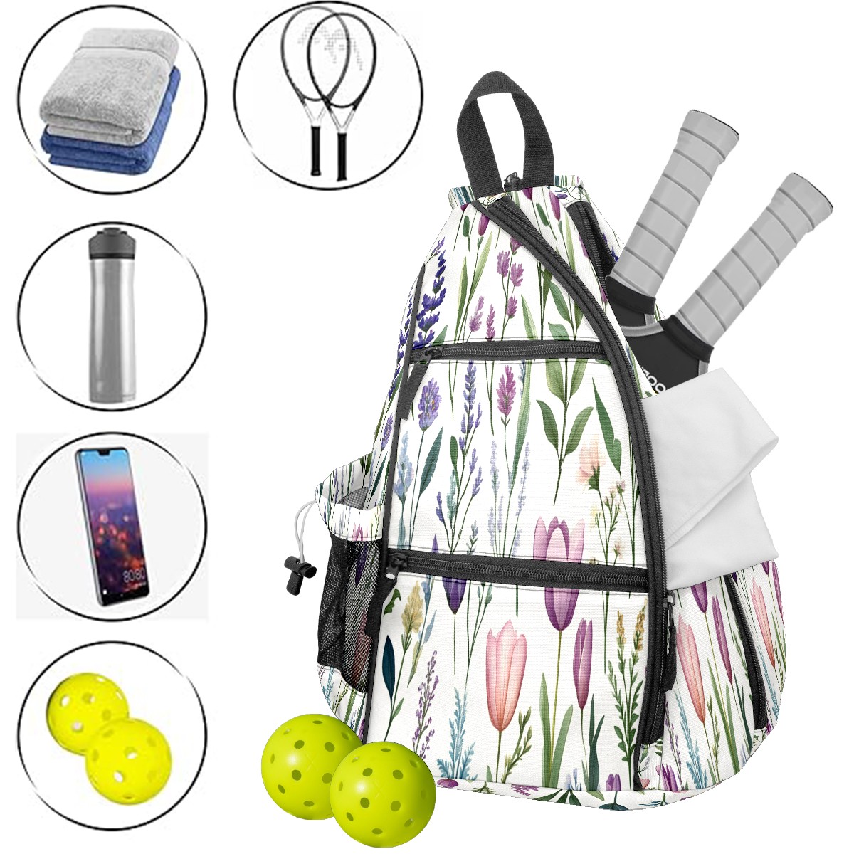 Unisex Pickleball Bag, Waterproof and Large Capacity, with Water Bottle Holder and Adjustable Shoulder Strap,Pickleball Bag Equipment and Gift Colorful Tulips
