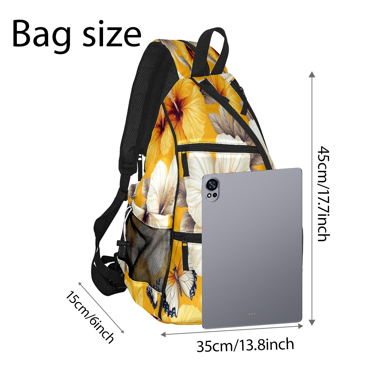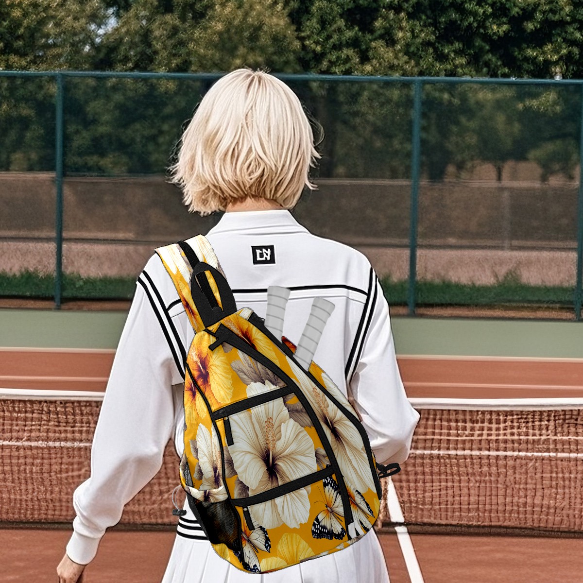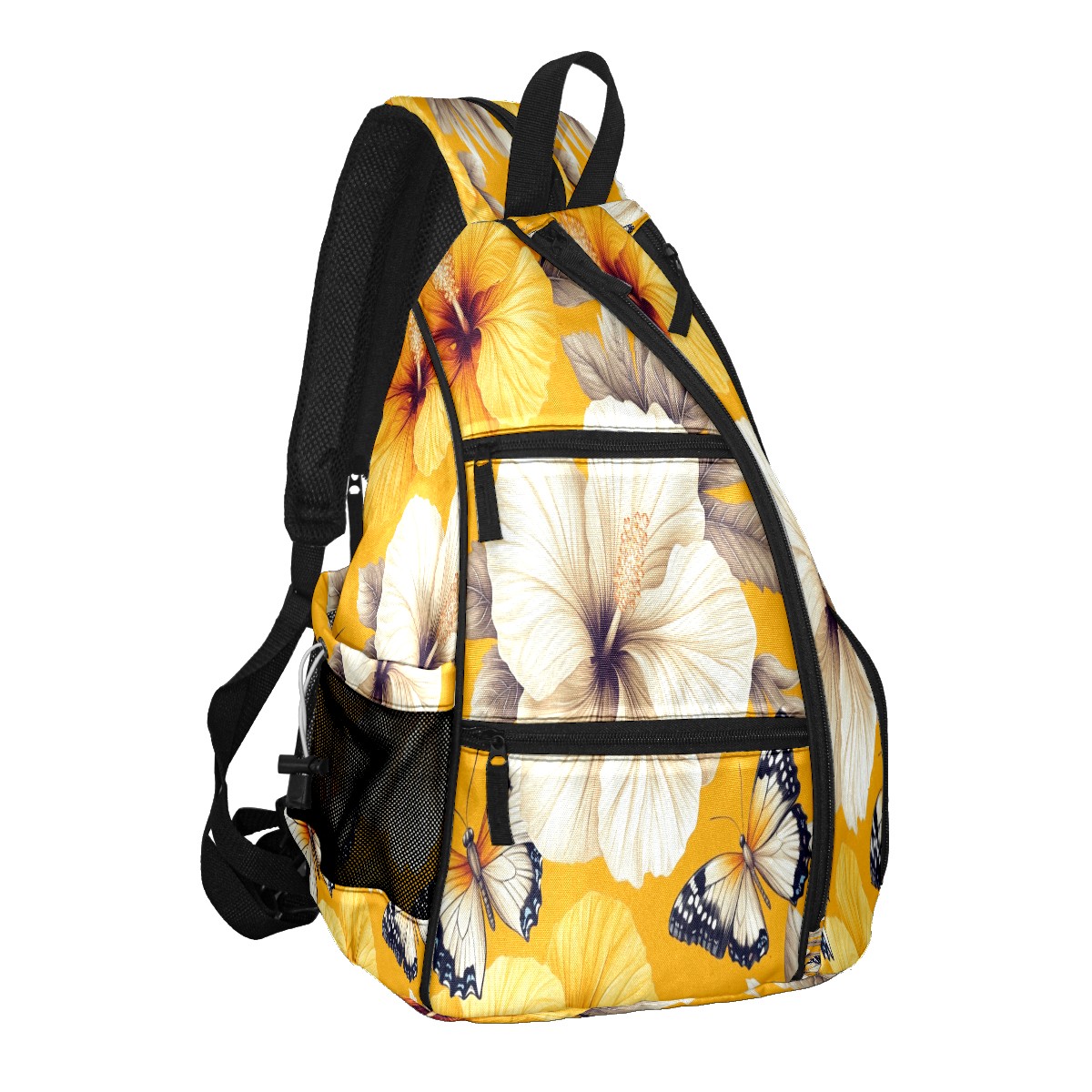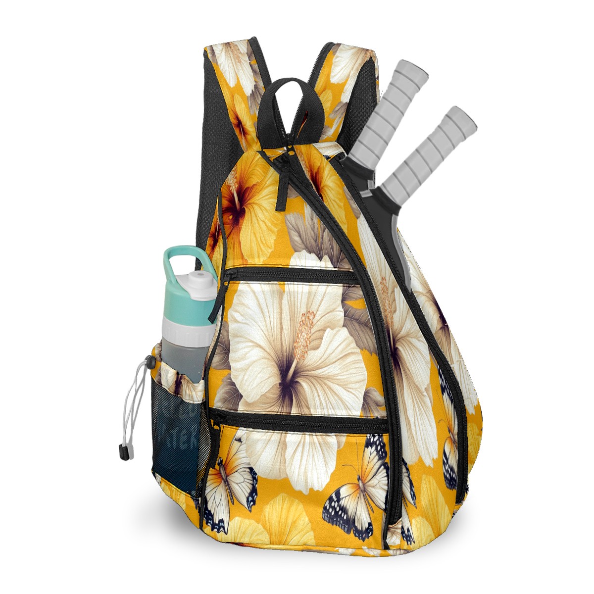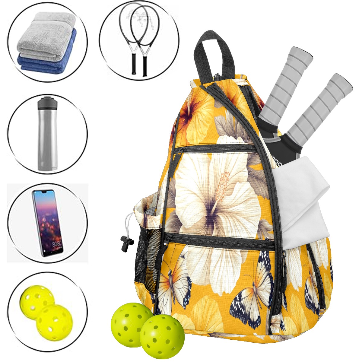 Unisex Pickleball Bag, Waterproof and Large Capacity, with Water Bottle Holder and Adjustable Shoulder Strap,Pickleball Bag Equipment and Gift Yellow Hibiscus Butterfly Flowers