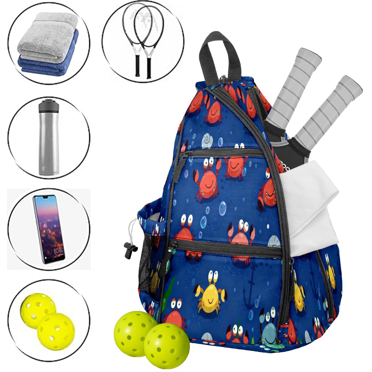 Unisex Pickleball Bag, Waterproof and Large Capacity, with Water Bottle Holder and Adjustable Shoulder Strap,Pickleball Bag Equipment and Gift Marine Life Crab 1