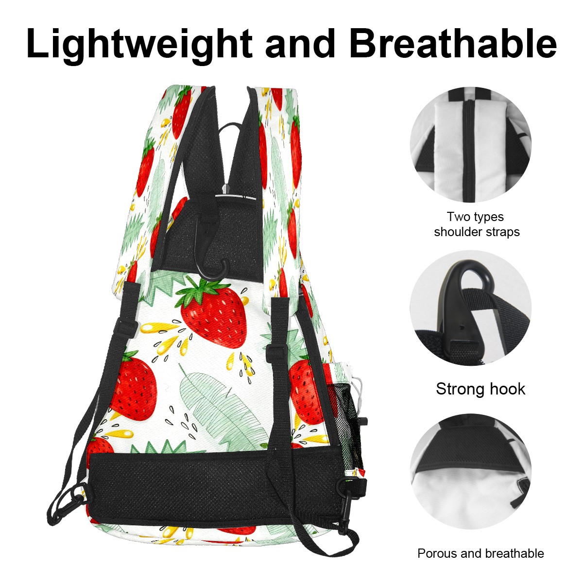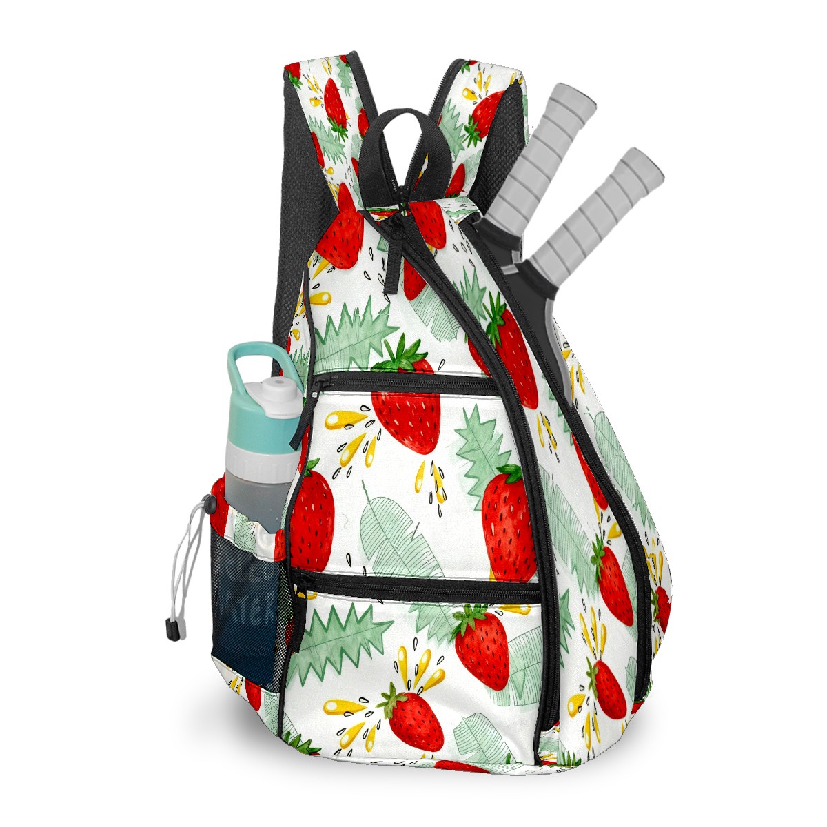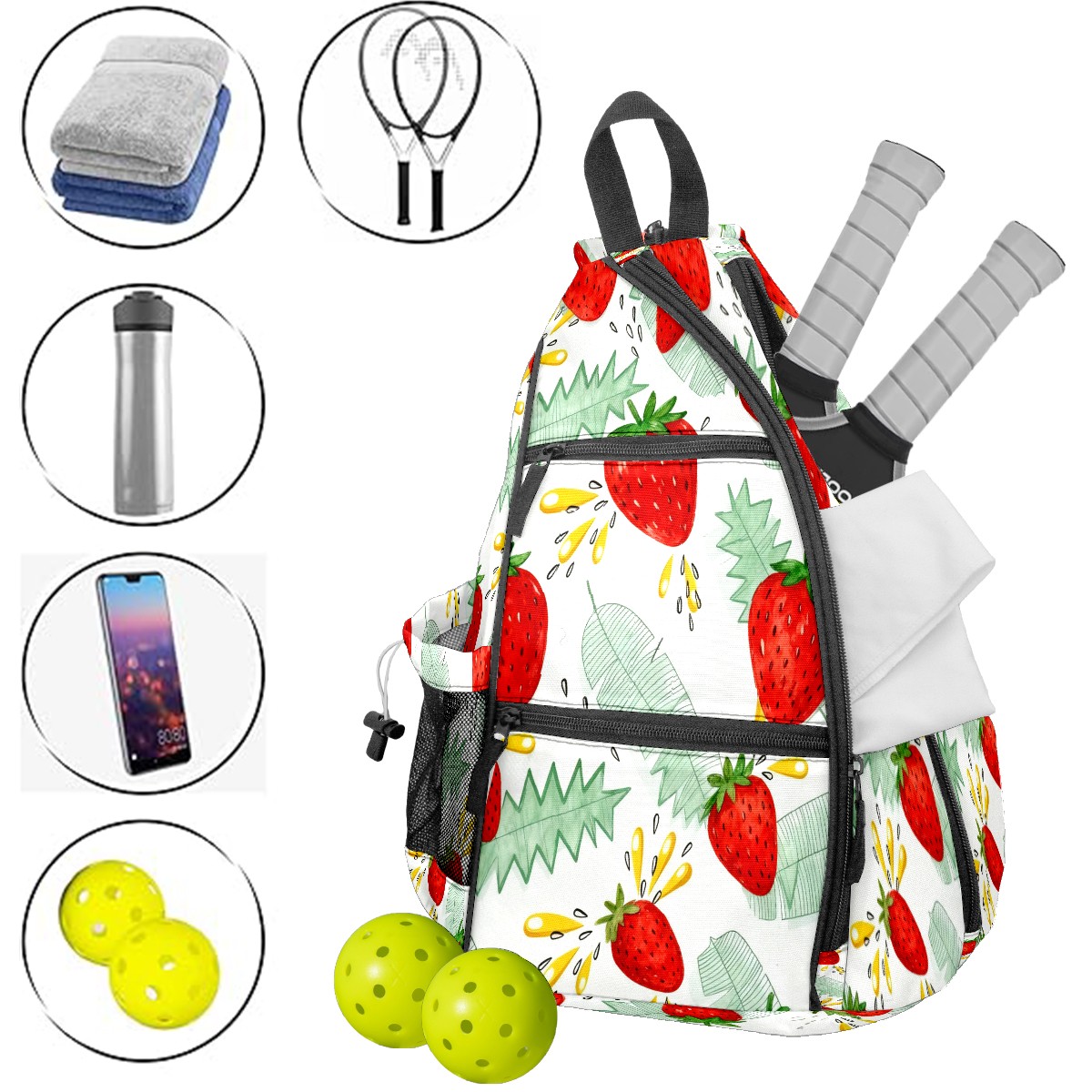 Unisex Pickleball Bag, Waterproof and Large Capacity, with Water Bottle Holder and Adjustable Shoulder Strap,Pickleball Bag Equipment and Gift Strawberry Pattern