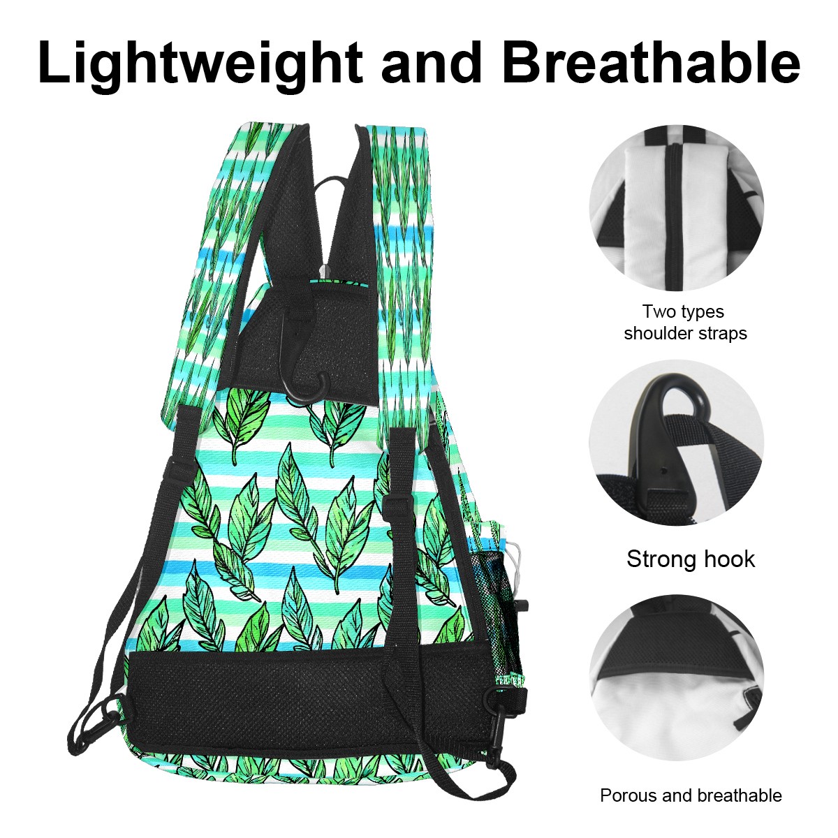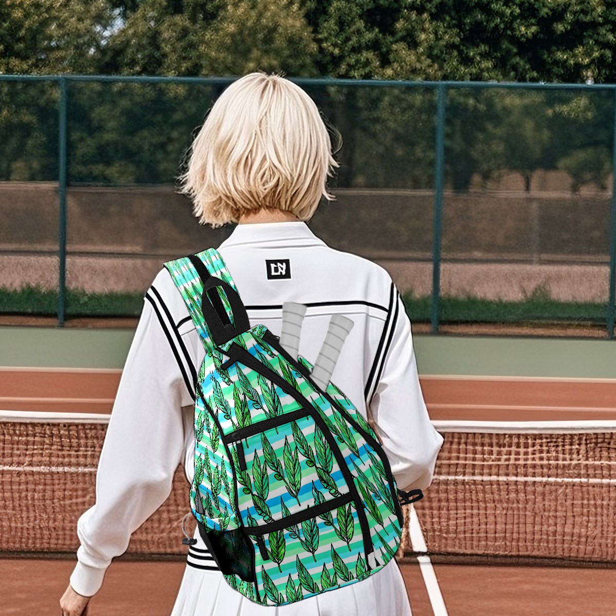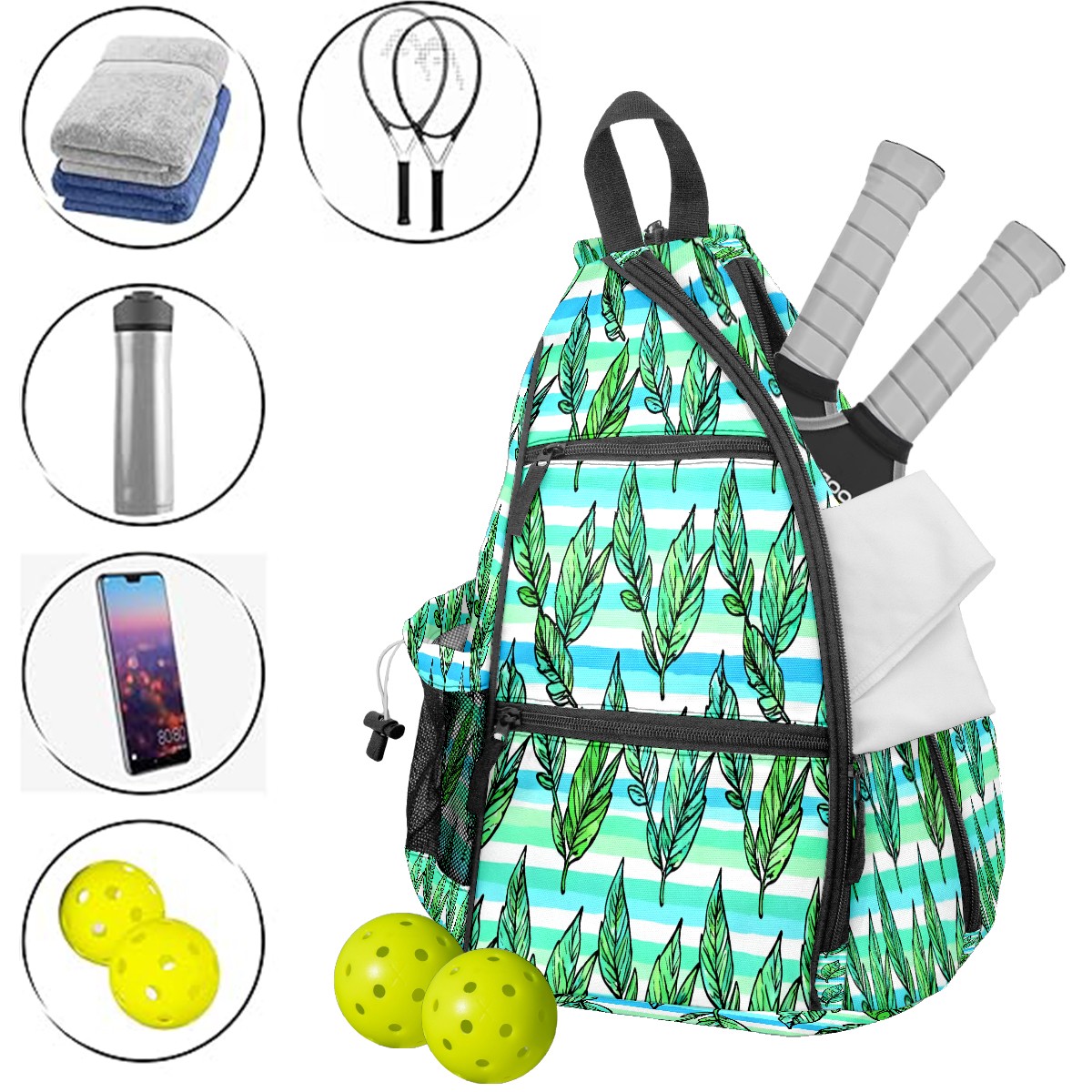 Pickleball Bag with Padded Back, Green Leaves Multi-Compartment Paddle Backpack, Lightweight Nylon Sports Bag for Men & Women