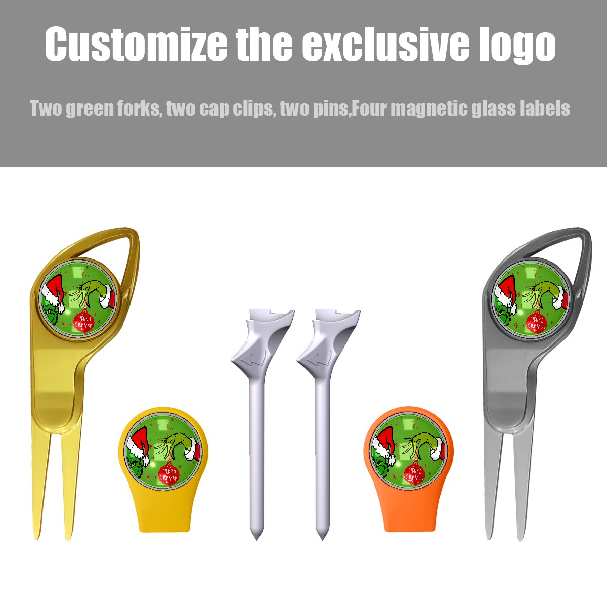 Men's Golf Gift Set 6-Piece: Custom Magnetic Ball Markers, Divot Tools, Hat Clips & Tees – Perfect for Birthdays, Anniversaries, Retirement, Christmas, Father’s Day Merry Holiday Grinchmas