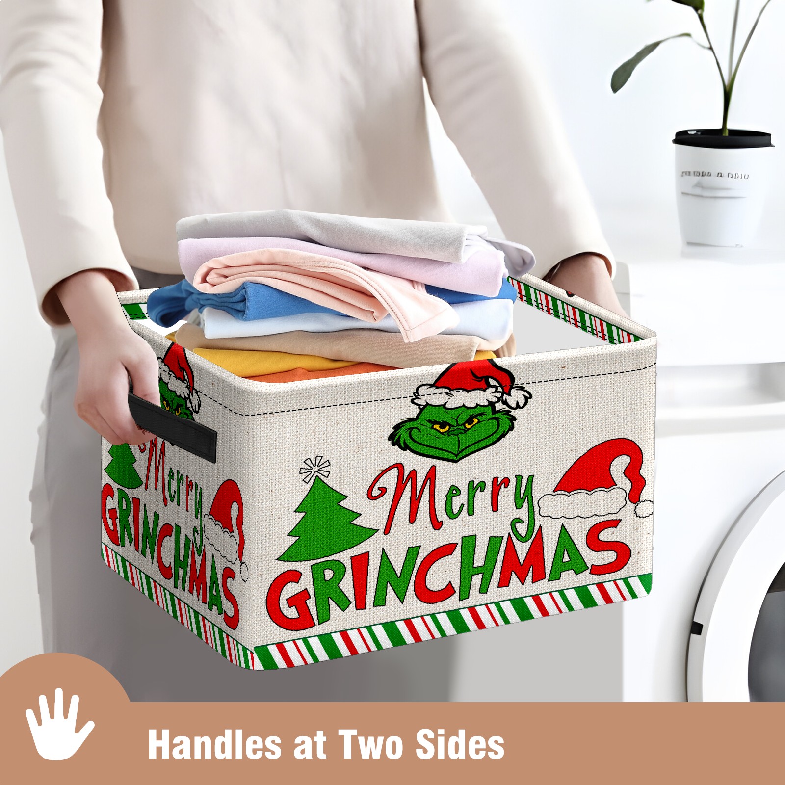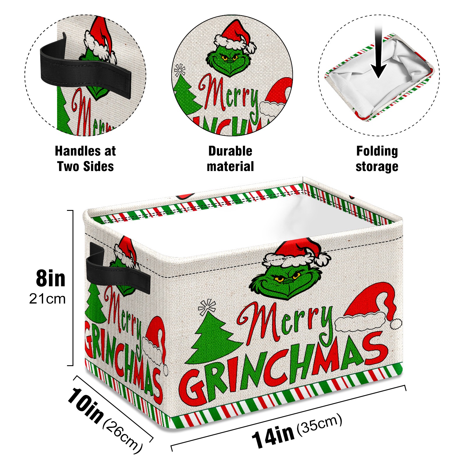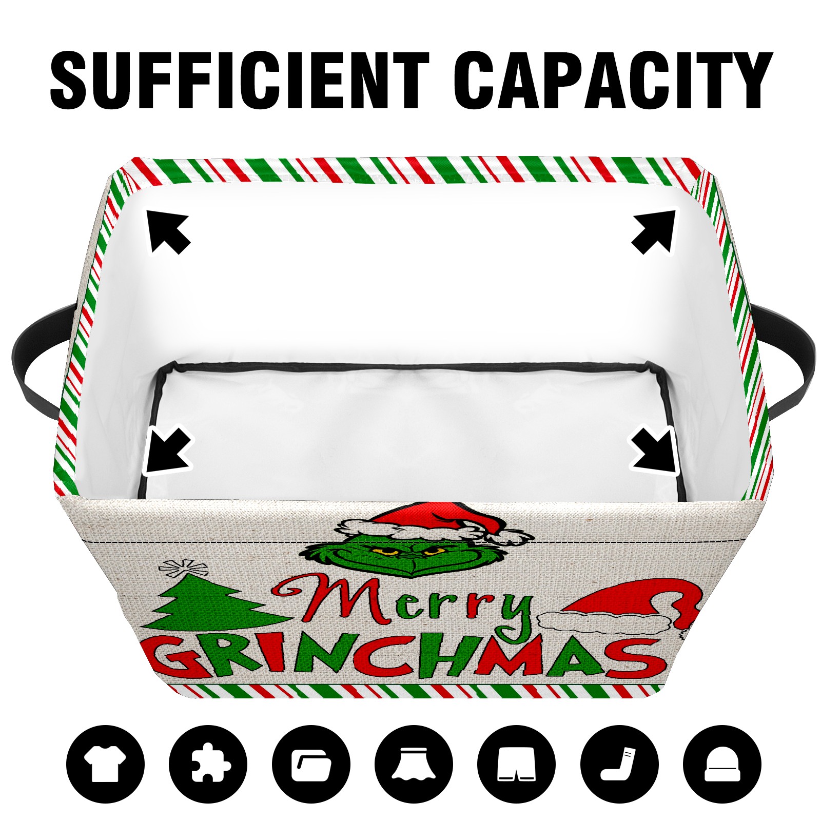Fabric Storage Basket with Handles, 600D Oxford Cloth Organizer Bin with Metal Frame, Rectangular Storage Basket for Home, Office, School Christmas Christmas Grinchmas (1)