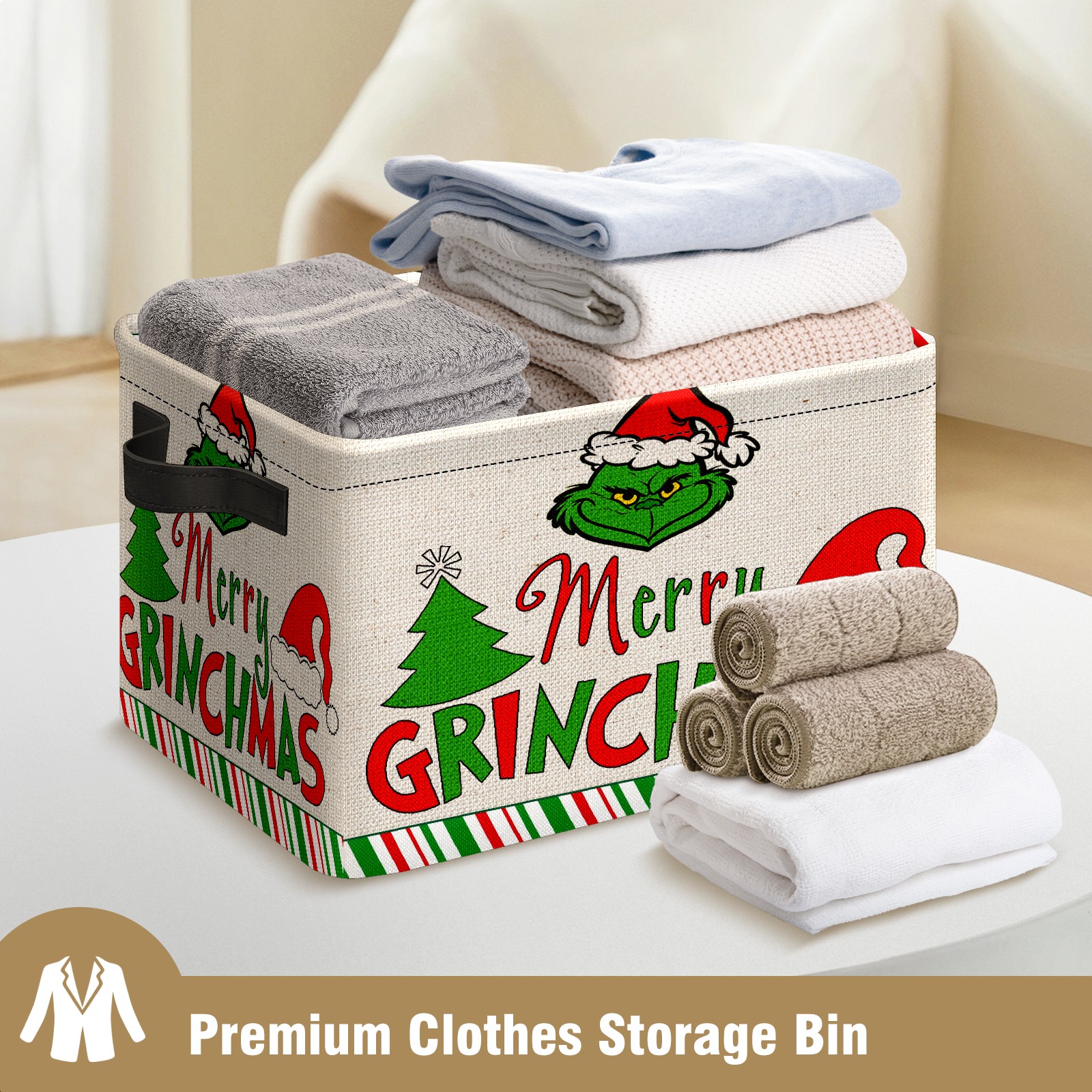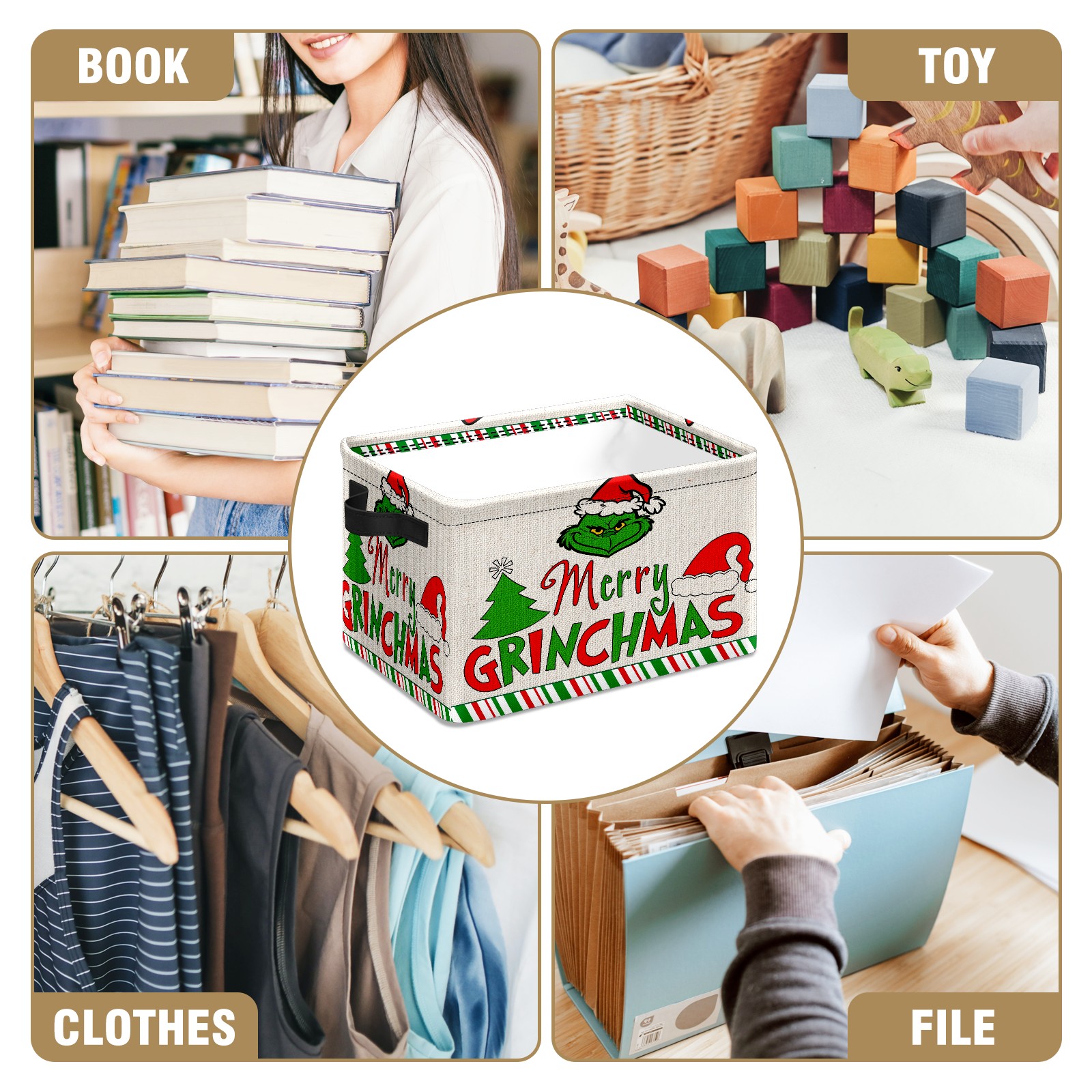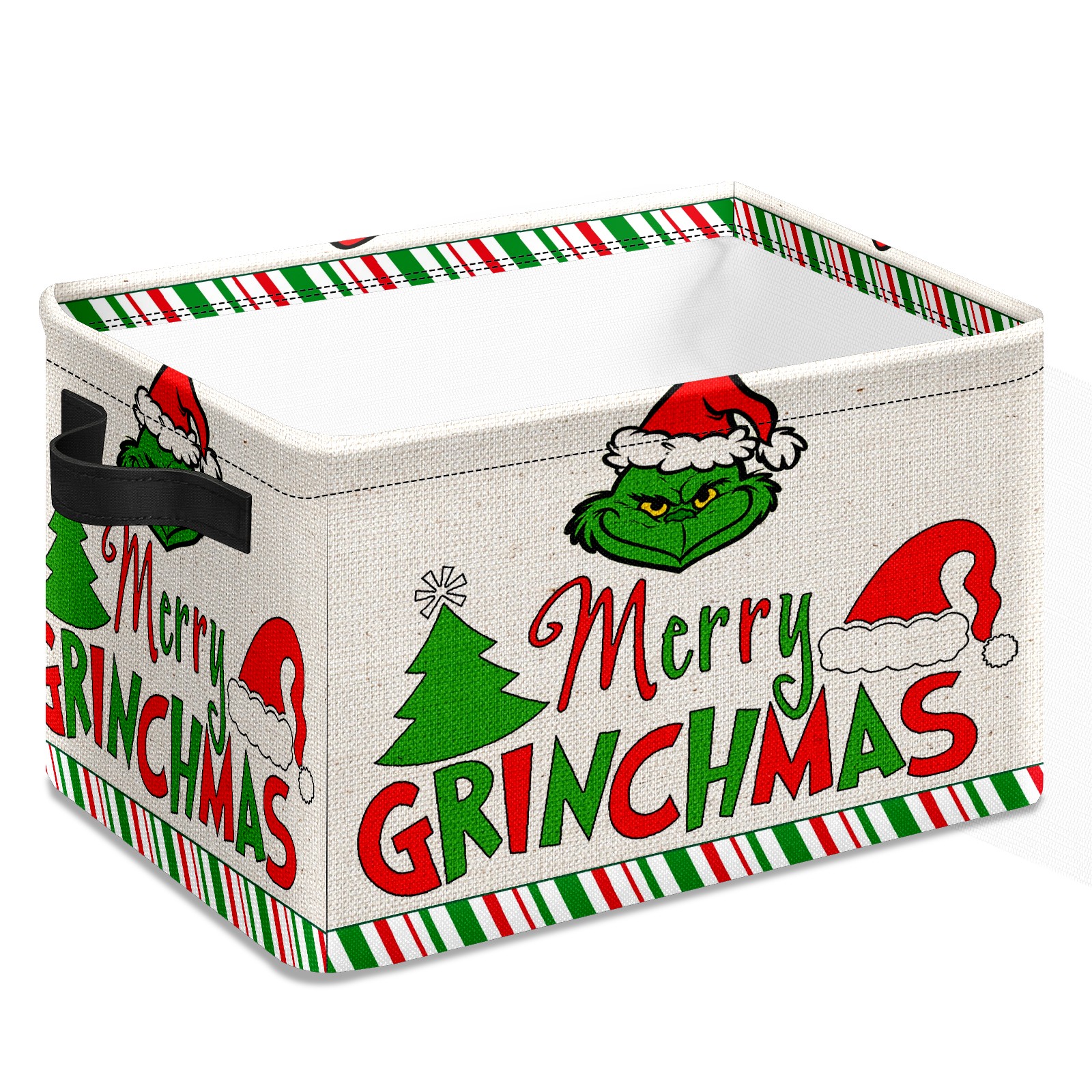 Fabric Storage Basket with Handles, 600D Oxford Cloth Organizer Bin with Metal Frame, Rectangular Storage Basket for Home, Office, School Christmas Christmas Grinchmas (1)