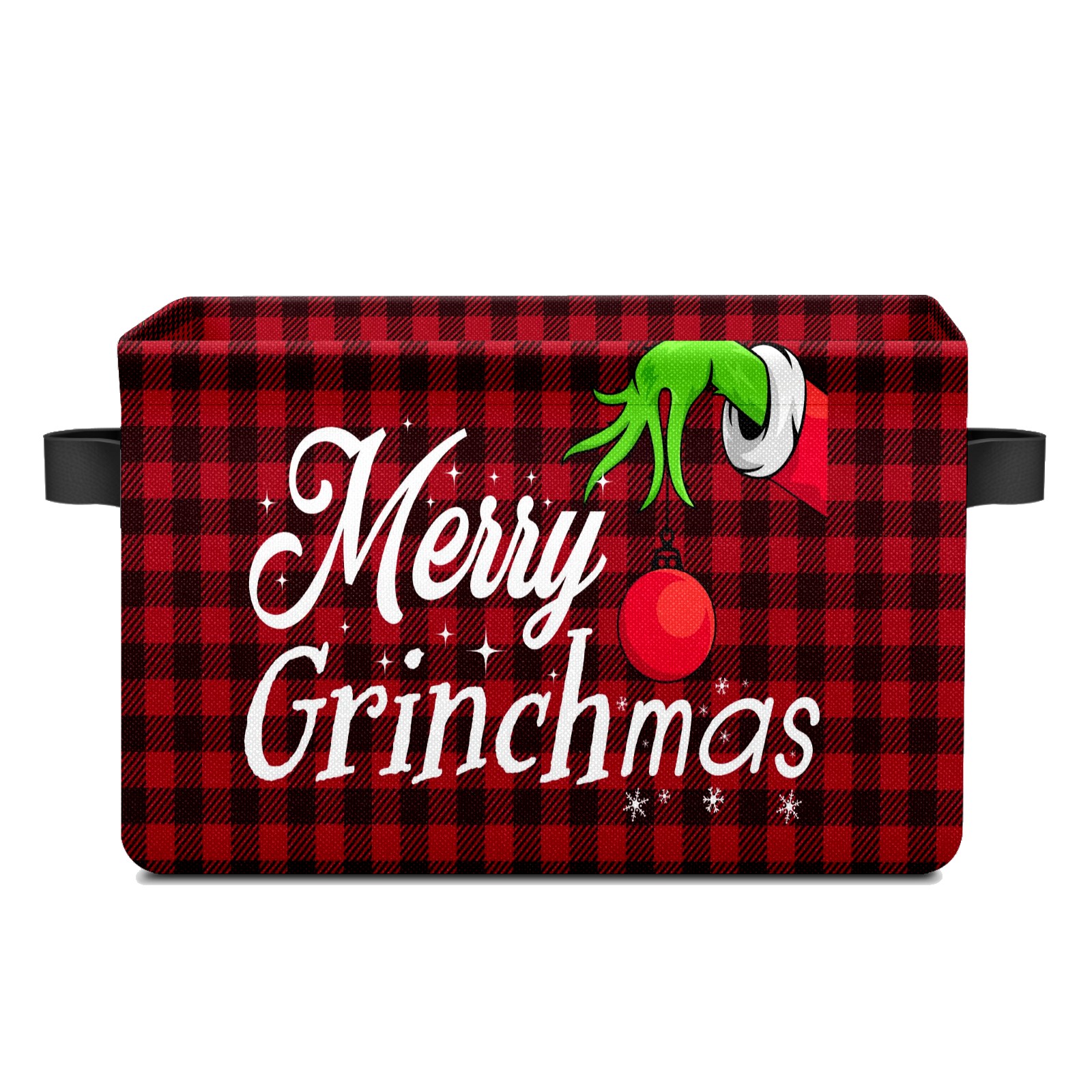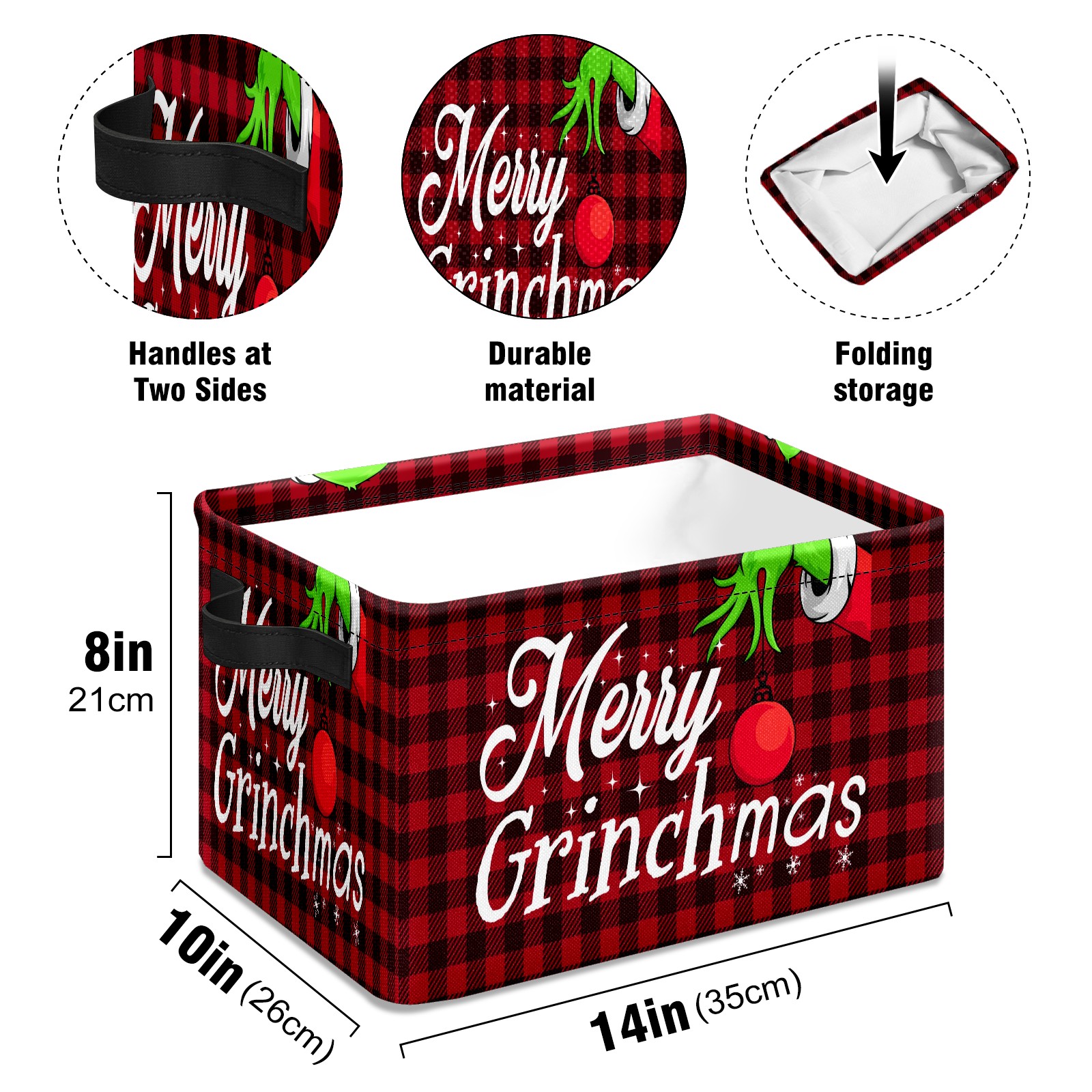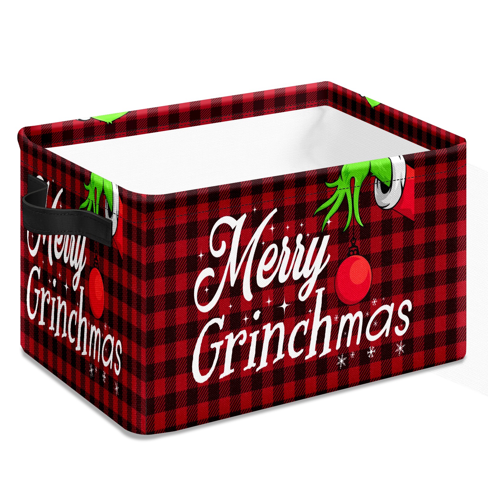 Fabric Storage Basket with Handles, 600D Oxford Cloth Organizer Bin with Metal Frame, Rectangular Storage Basket for Home, Office, School Merry Christmas Grinchmas Buffalo Plaid (1)