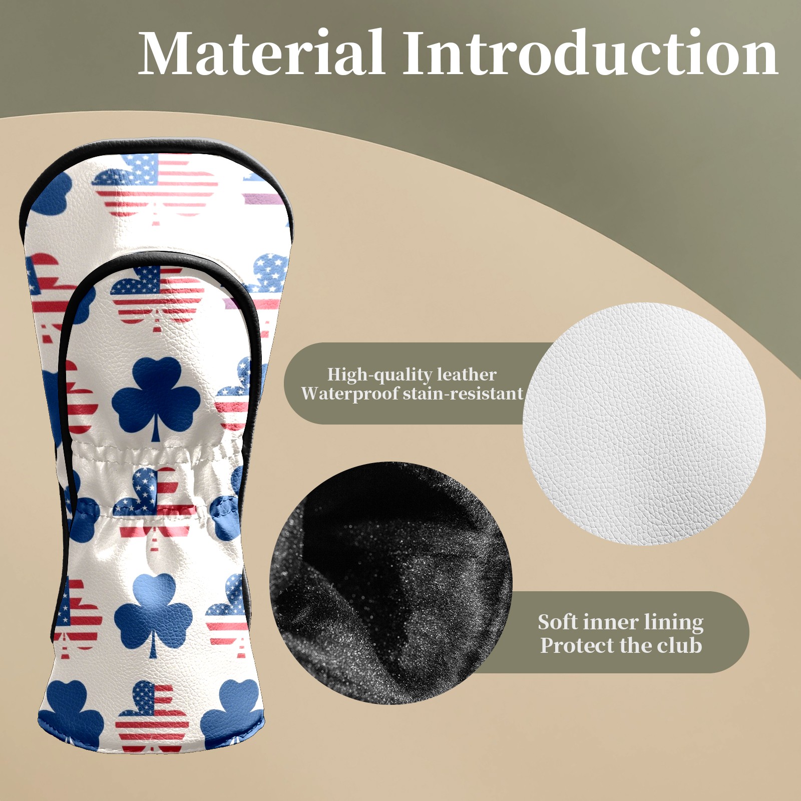<p>This cover is made of top grade PU leather, which is wear-resistant, waterproof and stain-resistant, and can easily withstand the wind, rain and daily wear and tear; the velvet lining gently wraps around the cover, cushioning the impact and eliminating scratches and abrasions. The velvet lining cushions impacts and prevents scratches and abrasions. Surface stains wipe clean and the tear-resistant design lasts as long as new. Dual size fits all types of clubs, simple and advanced texture design, is a good choice for birthday and holiday gift.</p>