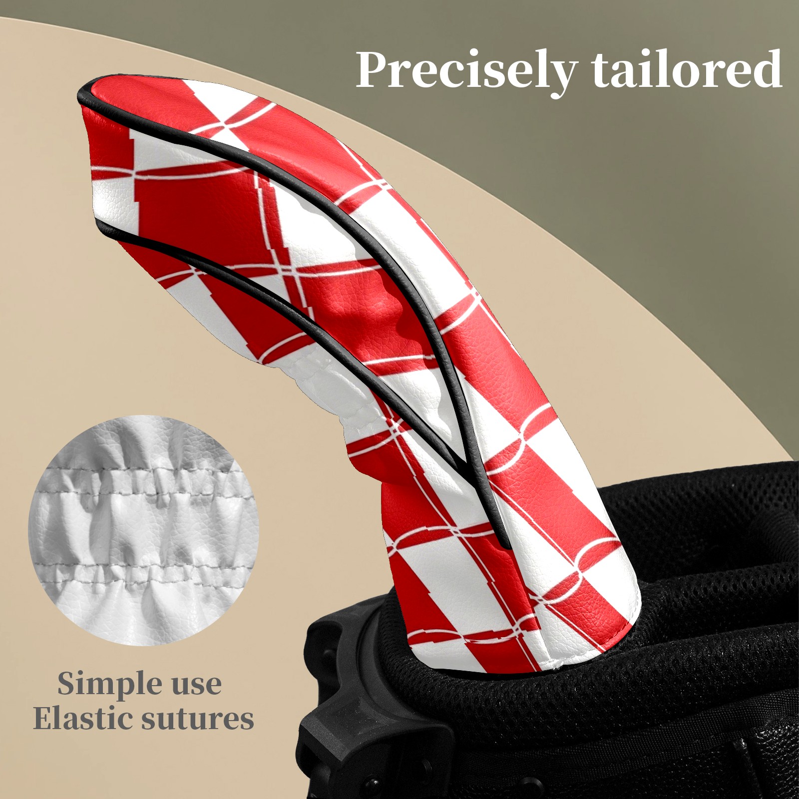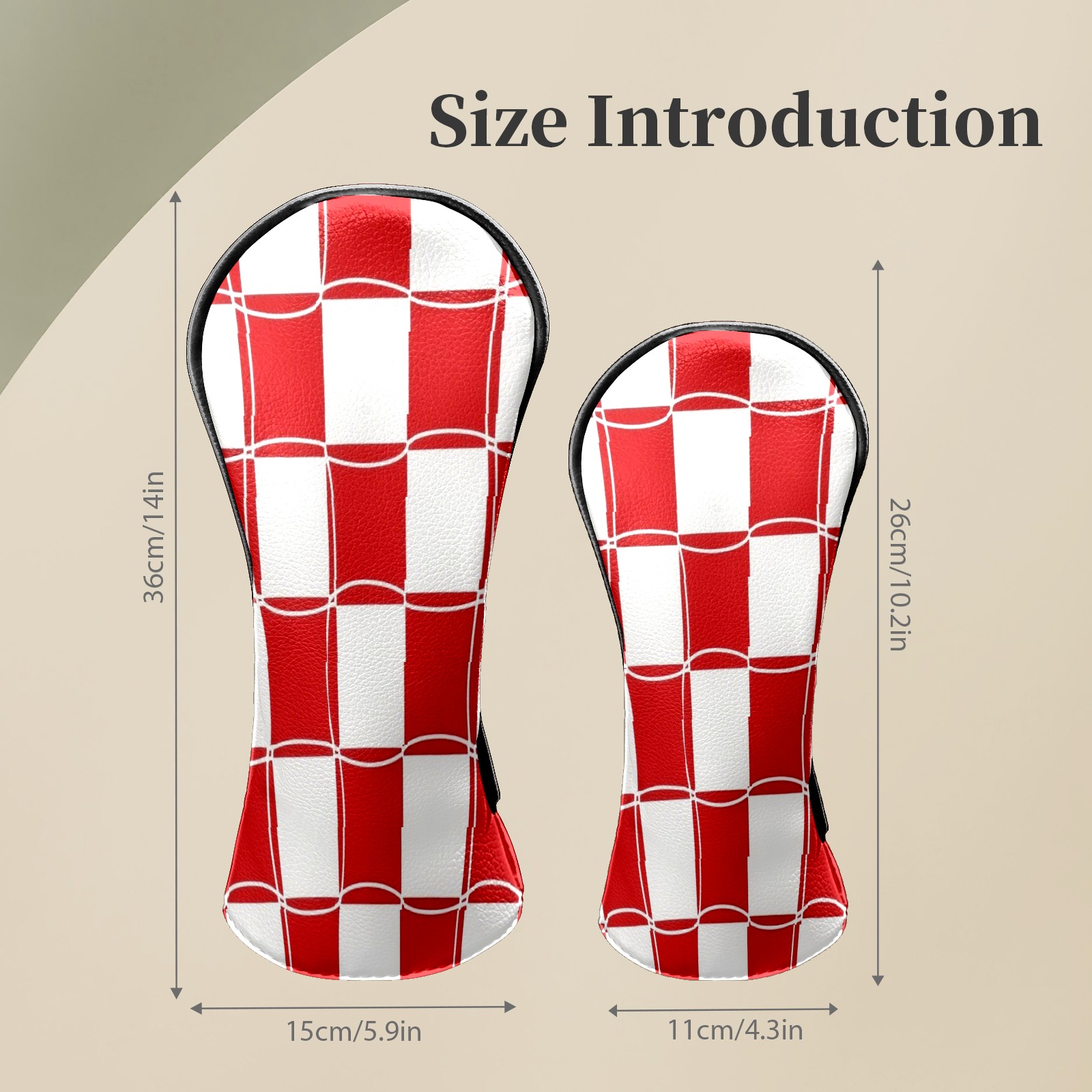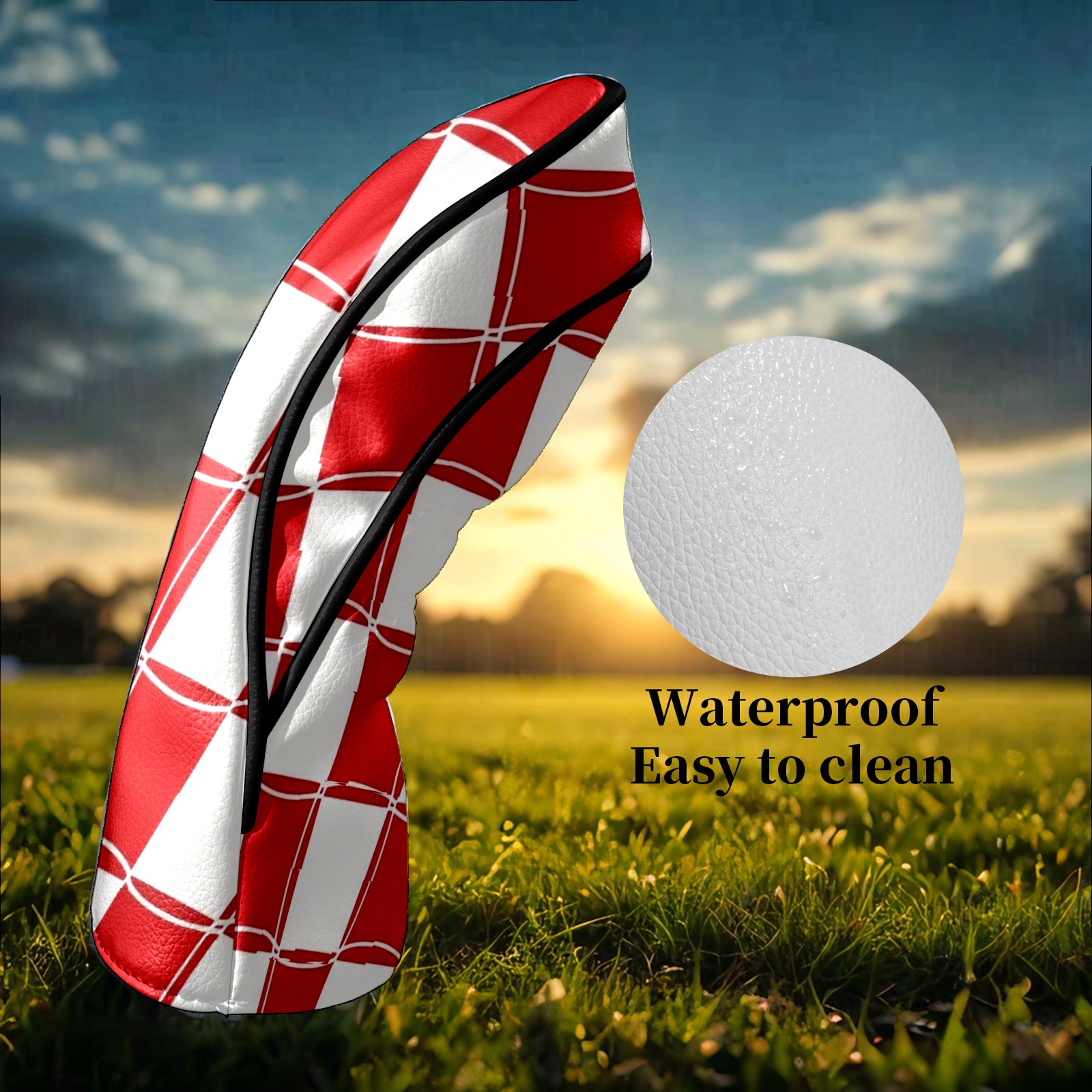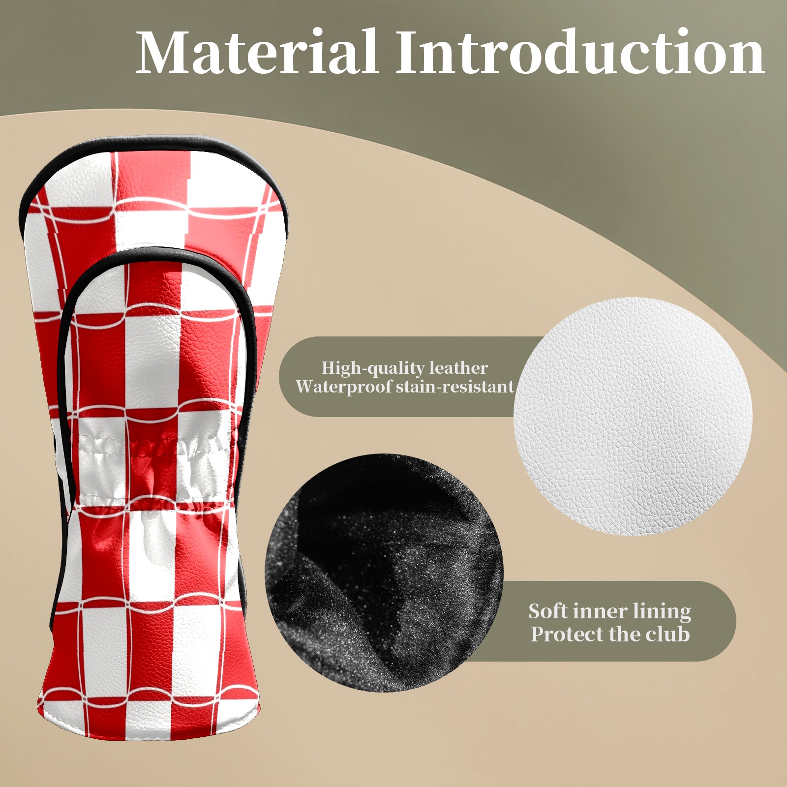 Golf Club Head Covers Red Grid Waterproof Leather Golf Head Covers for Men Women Driver Head Cover Fairway Headcover for Golf Lovers