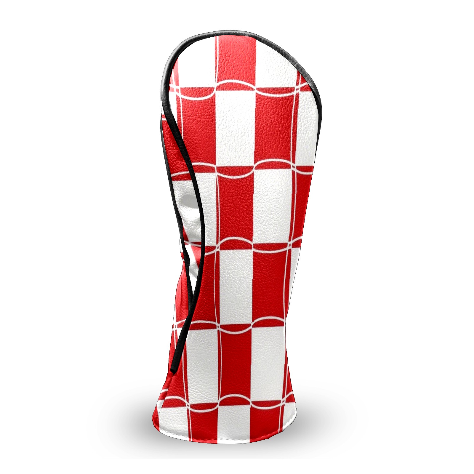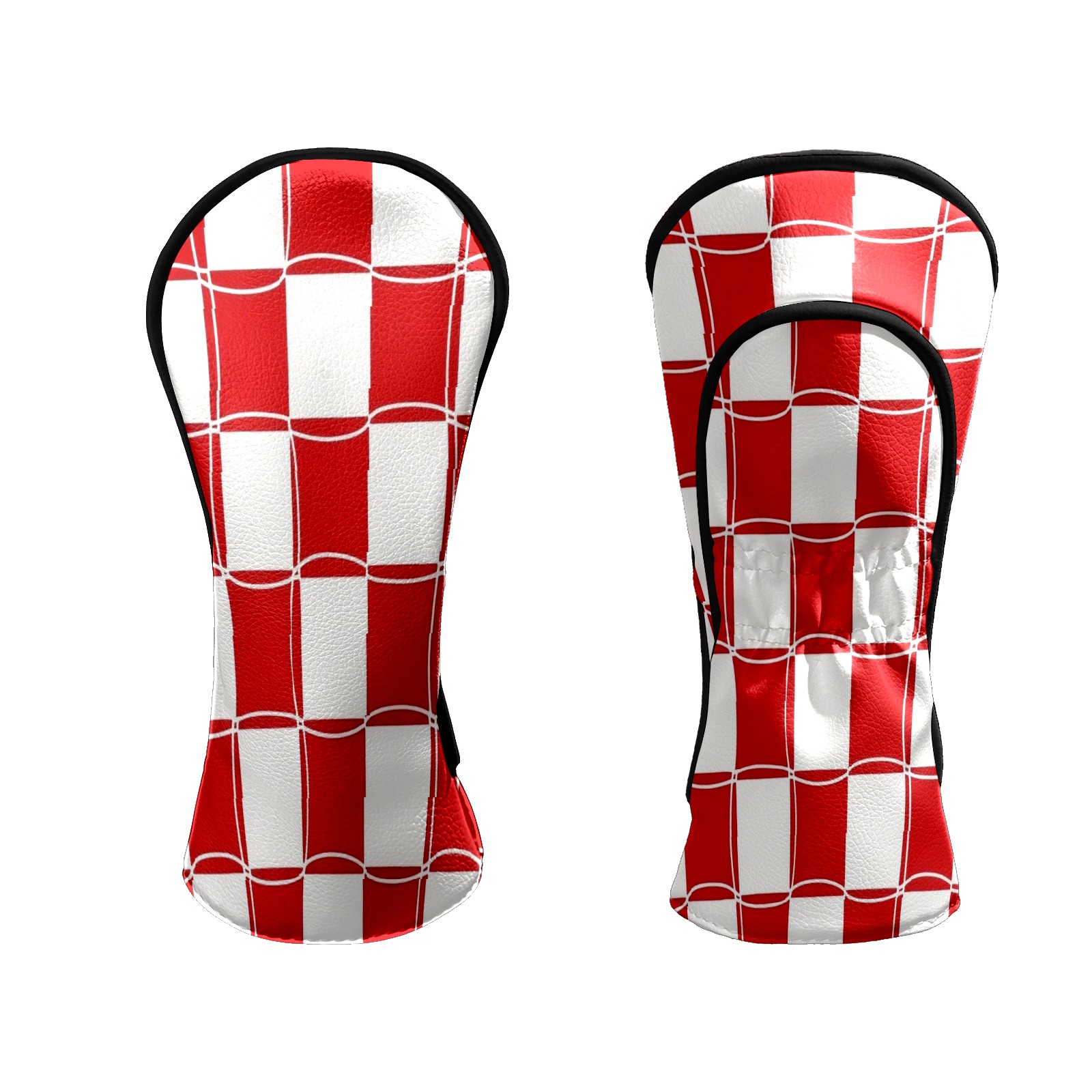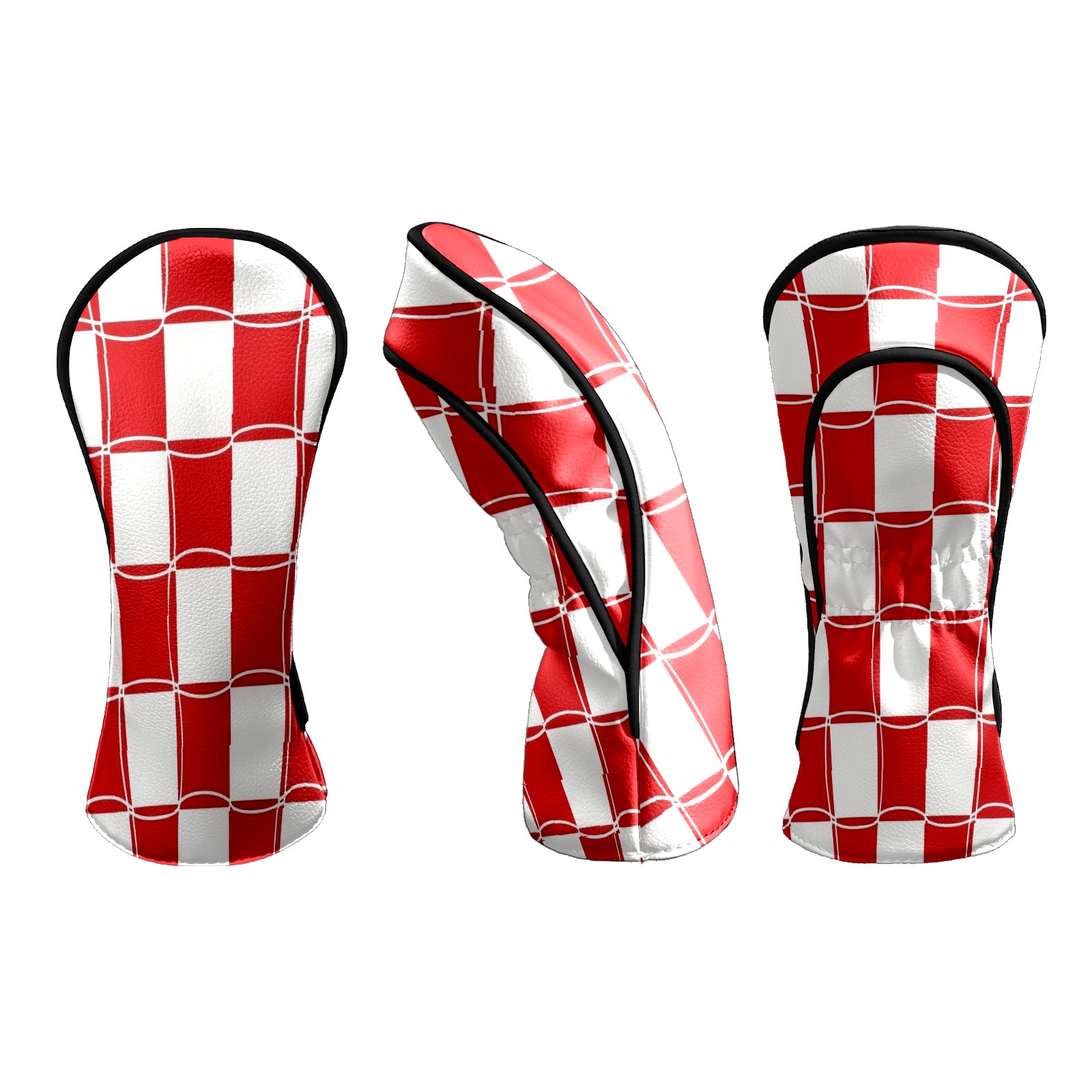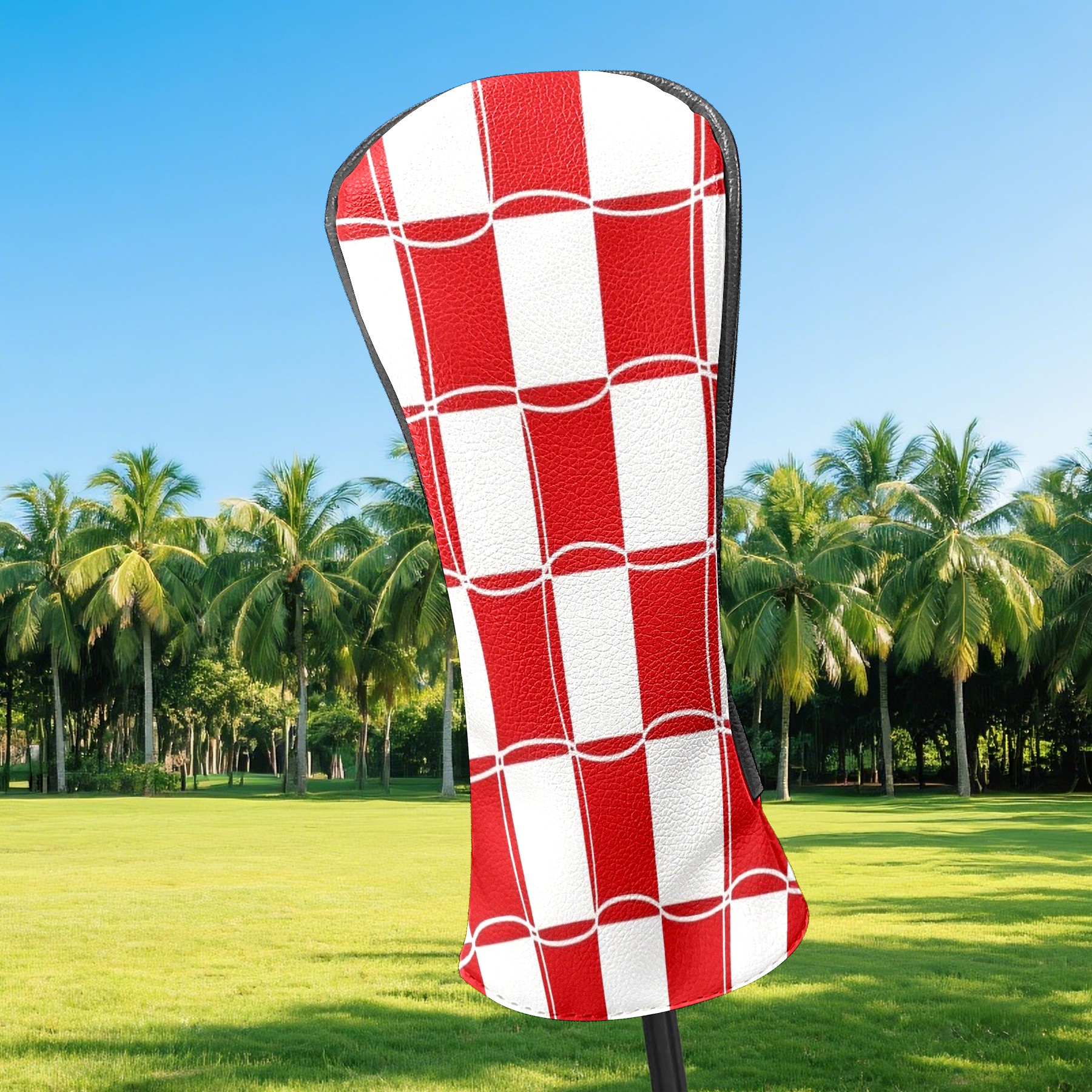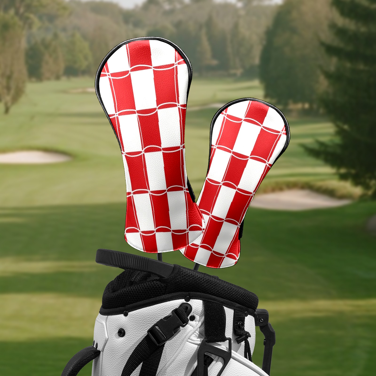 Golf Club Head Covers Red Grid Waterproof Leather Golf Head Covers for Men Women Driver Head Cover Fairway Headcover for Golf Lovers