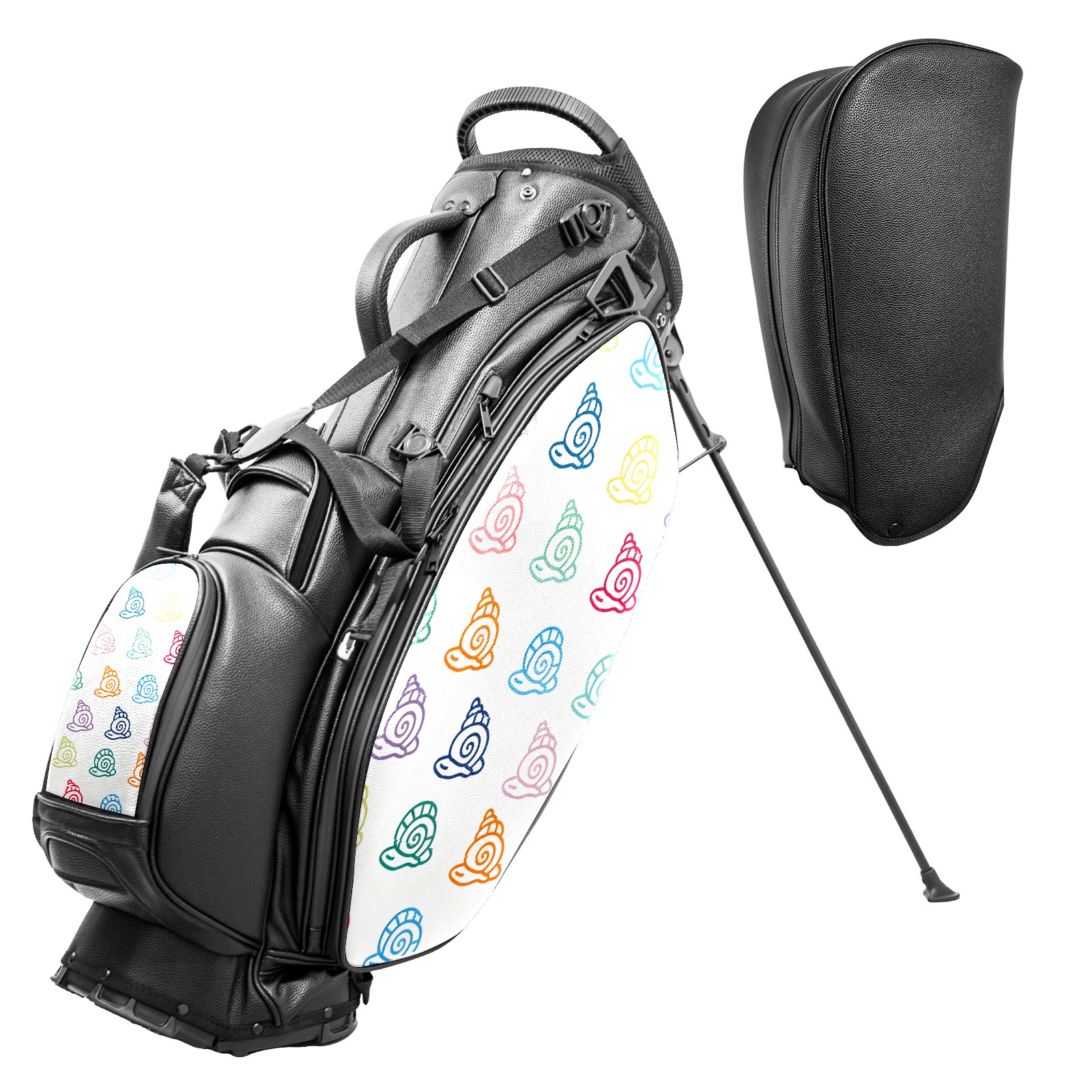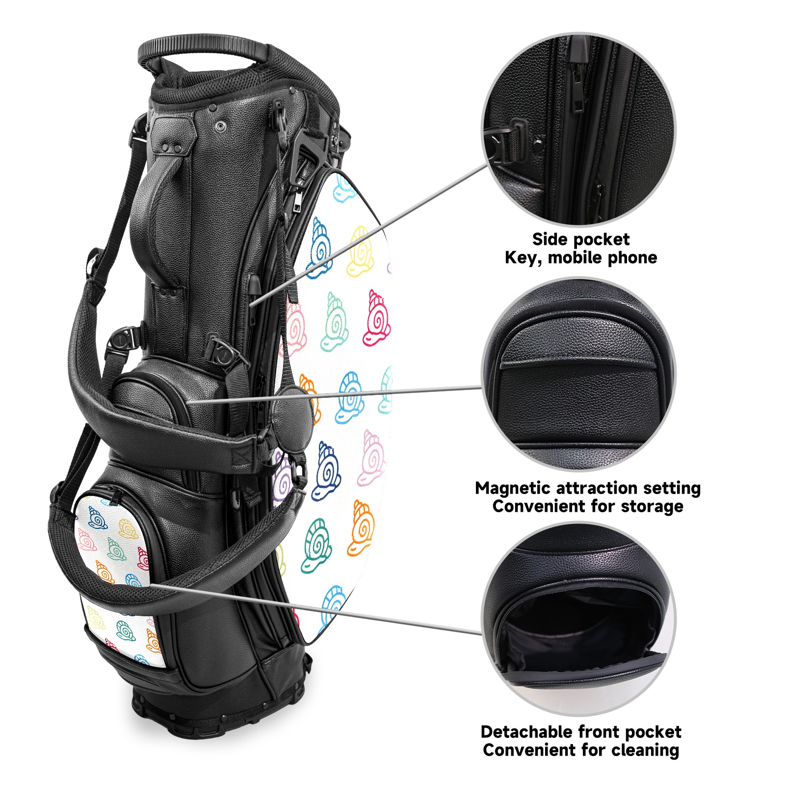 <p>This golf bag combines versatility, durability, and quality, providing comprehensive protection and easy access for your golf clubs. Its precise dimensions of 130 x 37 x 31 cm (with rain cover) and 90 x 31 x 37 cm (without rain cover) strike the perfect balance between portability and storage capacity.The five-way head frame (with five-way top compartments) allows for strategic compartmentalization, allowing you to neatly organize your various clubs and separate them to protect them from bumps, scratches, and scuffs. Its versatile compartmental design features a spacious five-compartment structure, including a separate, full-size club compartment, to fully accommodate your clubs while protecting their integrity.This bag features a versatile storage system with multiple waterproof zippered pockets for securely storing golf accessories, as well as a dedicated insulated cooler pocket with excellent insulation to keep your drinks cold. The built-in rain cover effectively repels moisture, ensuring your clubs remain dry and protected even in wet weather. For enhanced carrying comfort, this bag features ergonomically designed, padded, breathable, adjustable shoulder straps and an adjustable chest strap to distribute shoulder pressure for easier and more comfortable carrying. A portable rear handle makes lifting and carrying easier.Quality is evident in every detail: double-stitched reinforced edges enhance structural stability, smooth and durable zippers ensure long-lasting reliability, and wear-resistant bottom rivets ensure secure placement on all terrains, effectively preventing wear and tear. Crafted from classic pebbled matte PU fabric, it perfectly complements both business and casual occasions. Available in black and white, it exudes understated elegance and sophistication.This golf bag, with its sturdy plastic base, combines premium quality and durability, making it the ideal companion for every golfer, whether heading to the course for a casual round or attending a business golf event.</p>