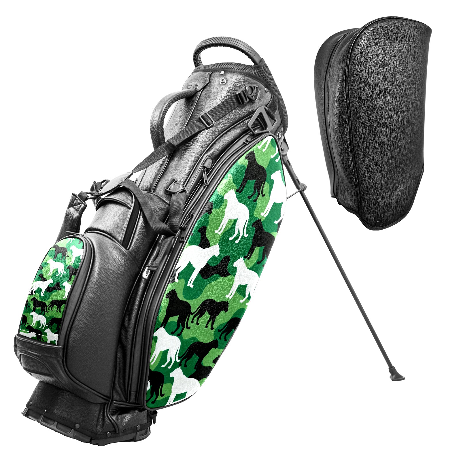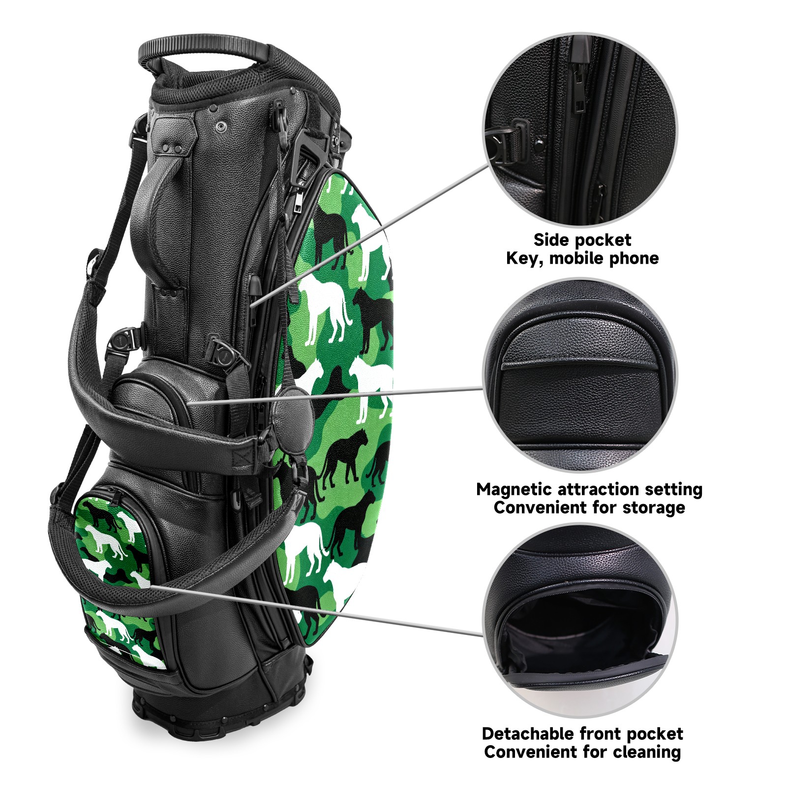 Lightweight Golf Stand Bag - 5-Way Top Divider, Golf Club Carry Bag with Adjustable Double Shoulder Straps, Zipper Storage Pockets + Rain Cover, Ideal for Men & Women Golfers Camouflage Silhouette Pattern Green