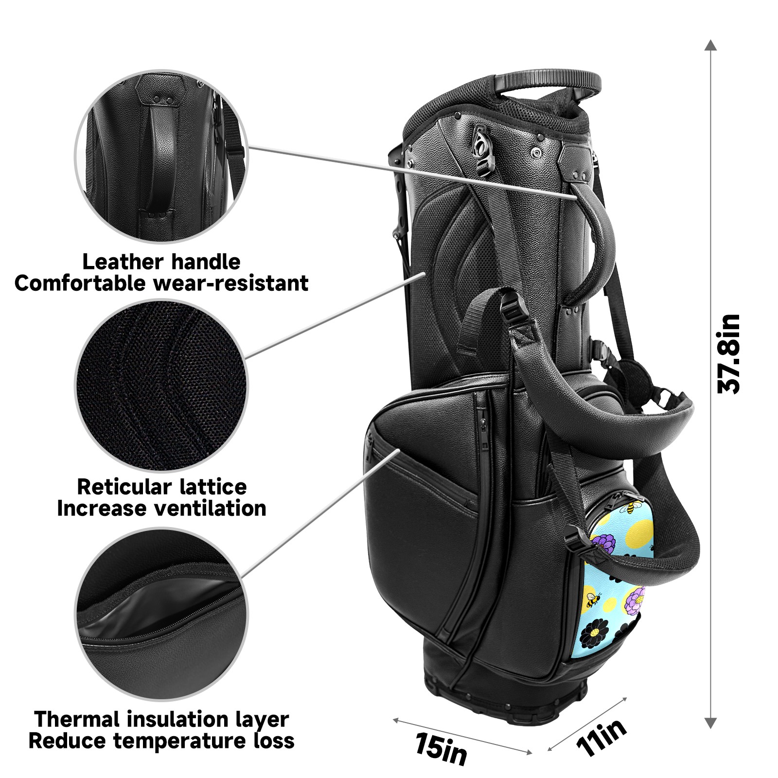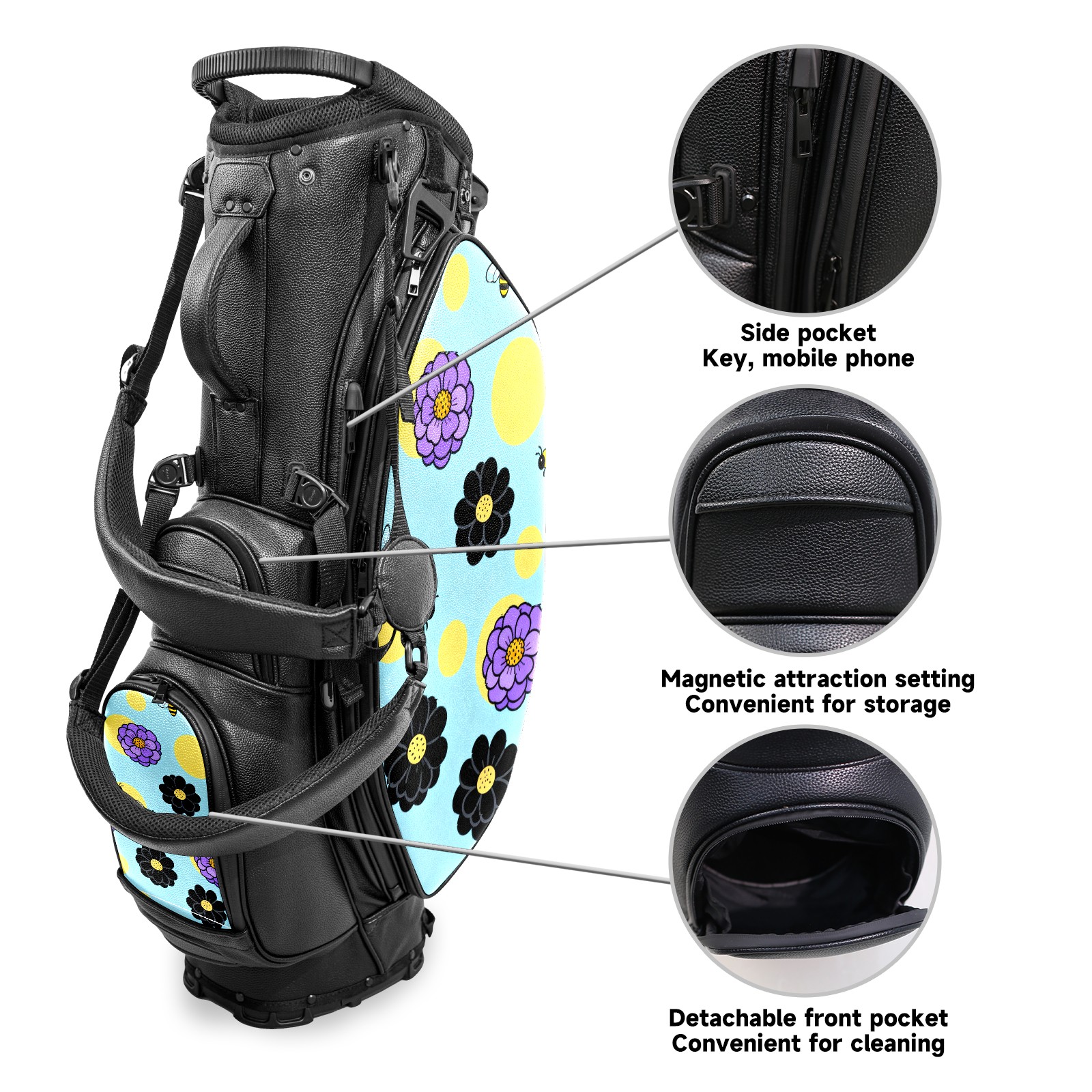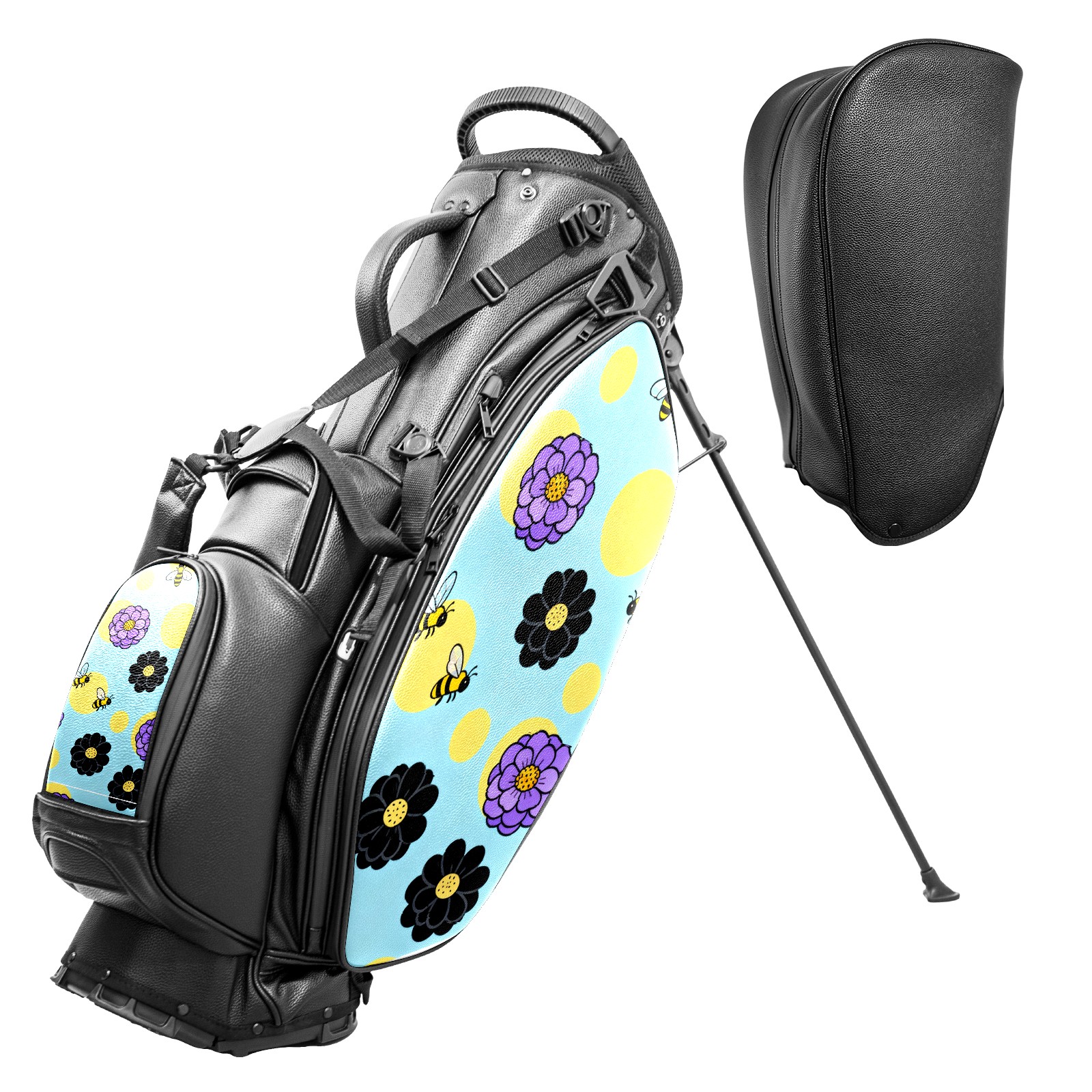 Lightweight Golf Stand Bag - 5-Way Top Divider, Golf Club Carry Bag with Adjustable Double Shoulder Straps, Zipper Storage Pockets + Rain Cover, Ideal for Men & Women Golfers Bee And Flower Pattern