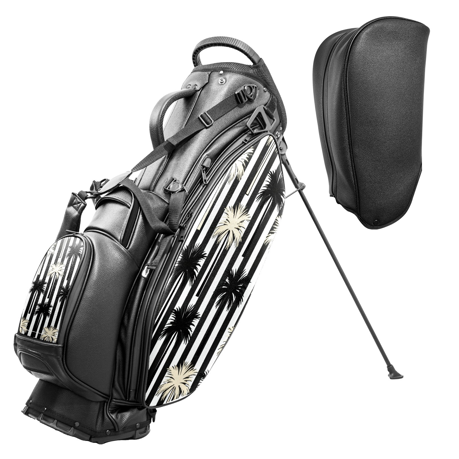 Lightweight Golf Stand Bag - 5-Way Top Divider, Golf Club Carry Bag with Adjustable Double Shoulder Straps, Zipper Storage Pockets + Rain Cover, Ideal for Men & Women Golfers Palm Tree Stripe Pattern