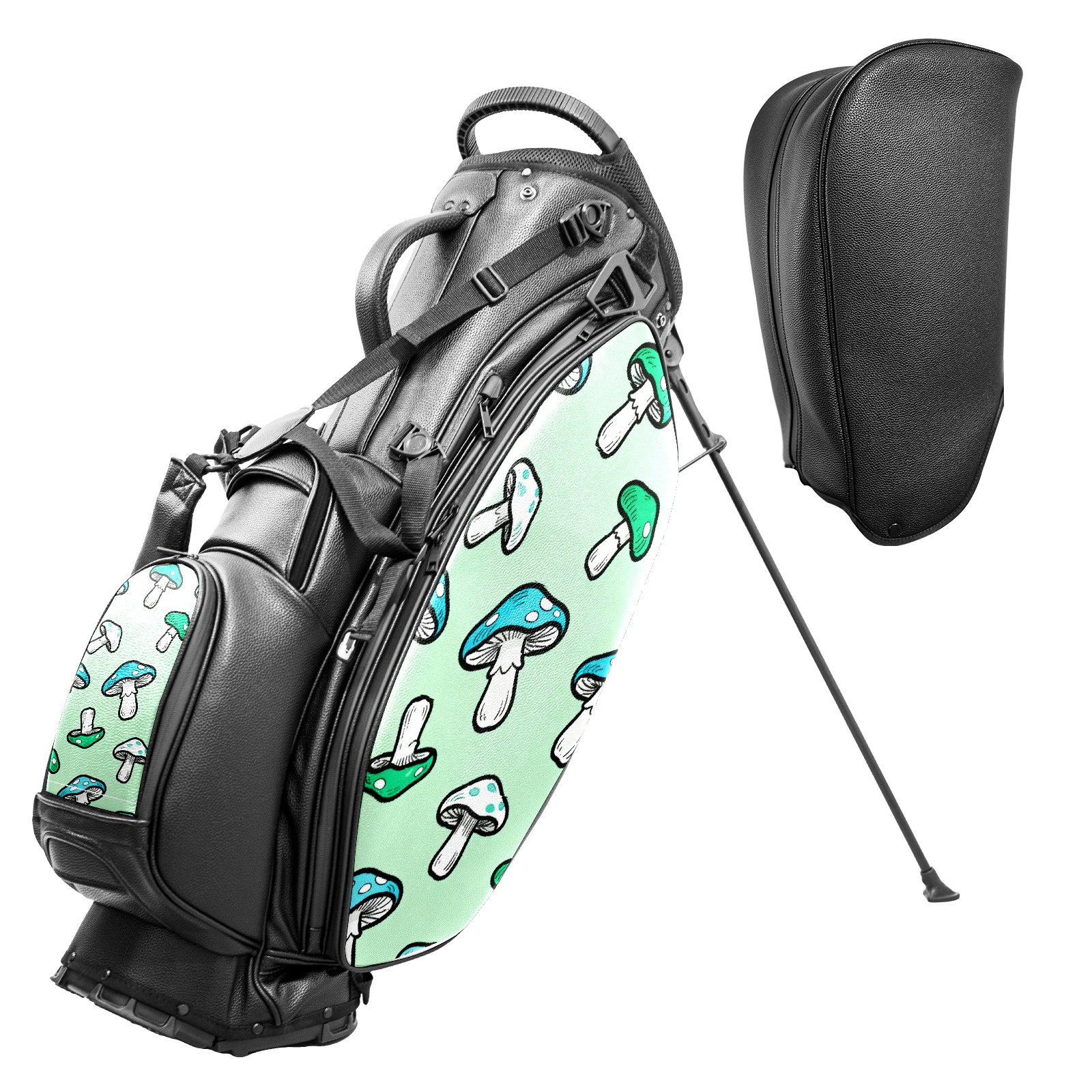 Lightweight Golf Stand Bag - 5-Way Top Divider, Golf Club Carry Bag with Adjustable Double Shoulder Straps, Zipper Storage Pockets + Rain Cover, Ideal for Men & Women Golfers Blue-green Mushrooms