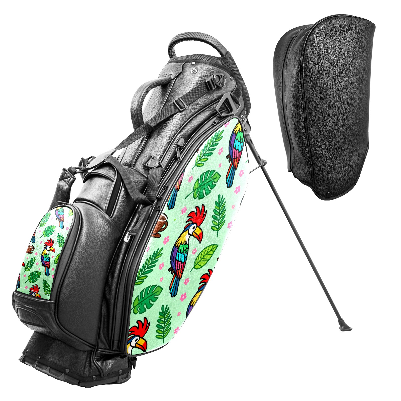 Lightweight Golf Stand Bag - 5-Way Top Divider, Golf Club Carry Bag with Adjustable Double Shoulder Straps, Zipper Storage Pockets + Rain Cover, Ideal for Men & Women Golfers Bird Green Leaf Chocolate Cup
