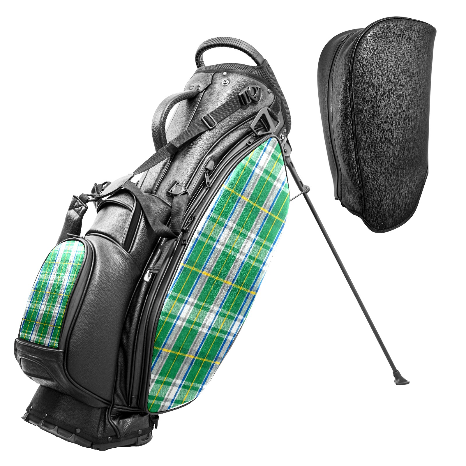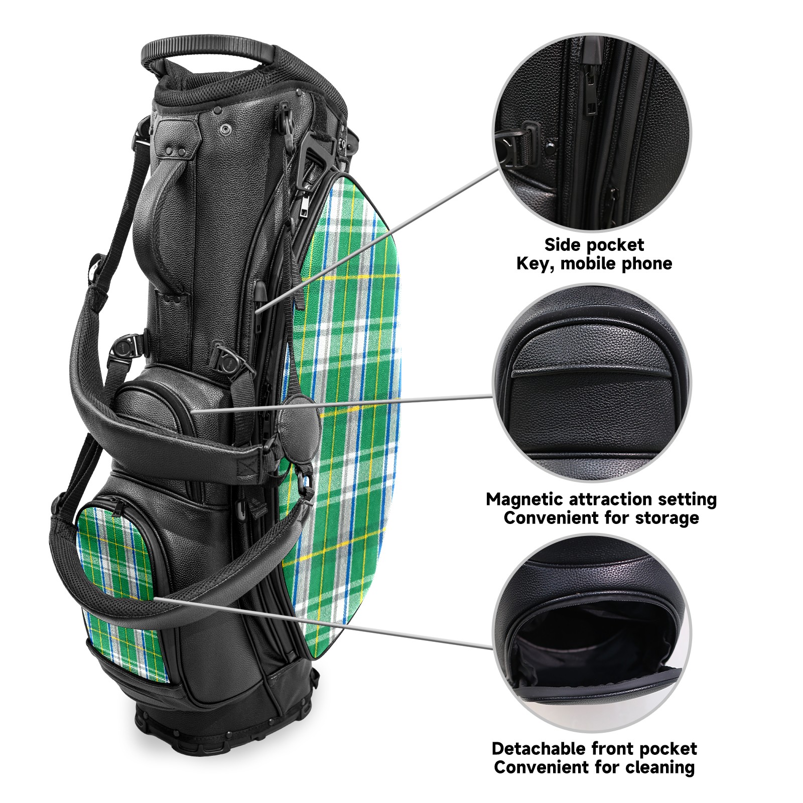 Lightweight Golf Stand Bag - 5-Way Top Divider, Golf Club Carry Bag with Adjustable Double Shoulder Straps, Zipper Storage Pockets + Rain Cover, Ideal for Men & Women Golfers Green Checkered Fabric
