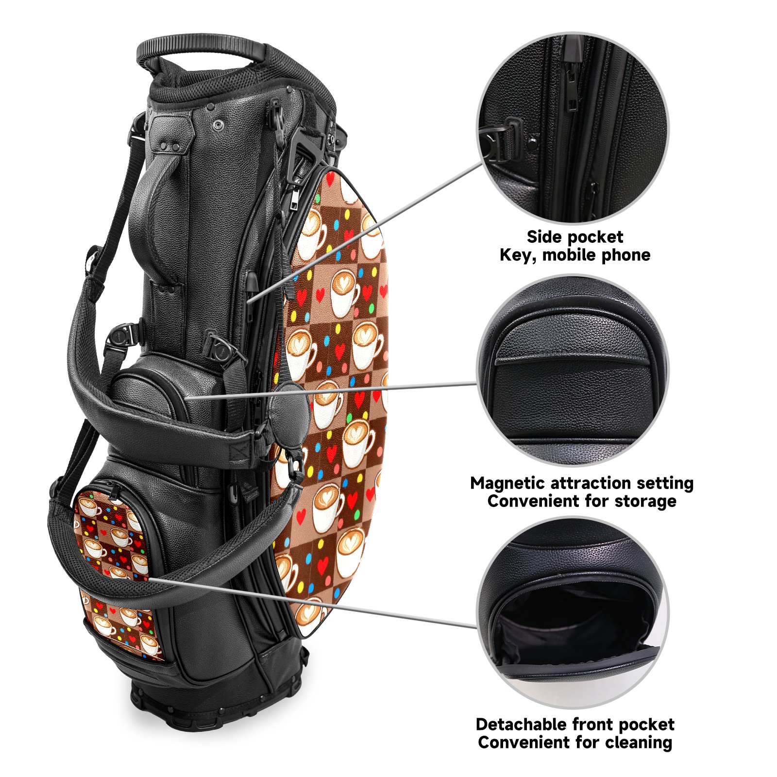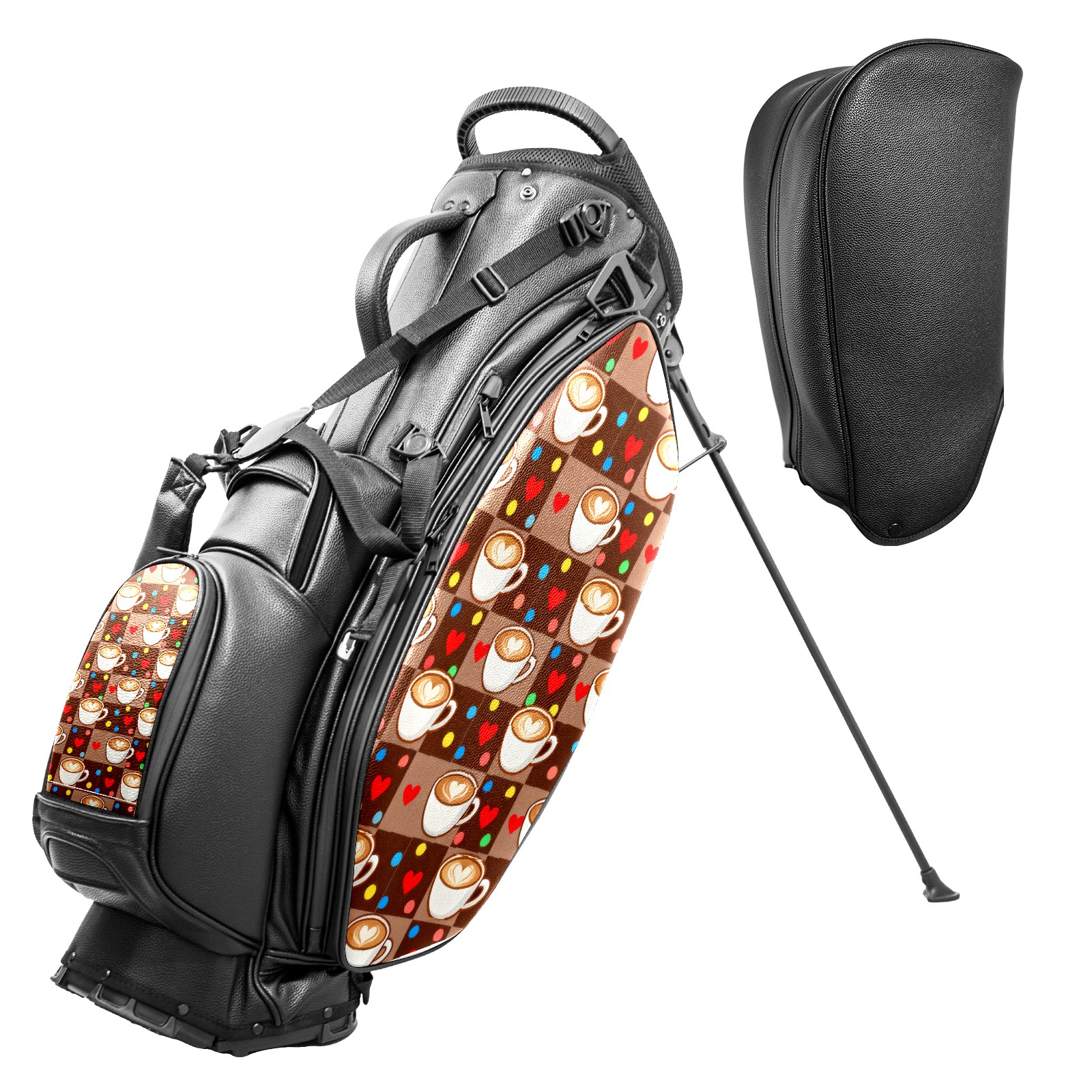 Lightweight Golf Stand Bag - 5-Way Top Divider, Golf Club Carry Bag with Adjustable Double Shoulder Straps, Zipper Storage Pockets + Rain Cover, Ideal for Men & Women Golfers Heart-shaped Coffee Cup