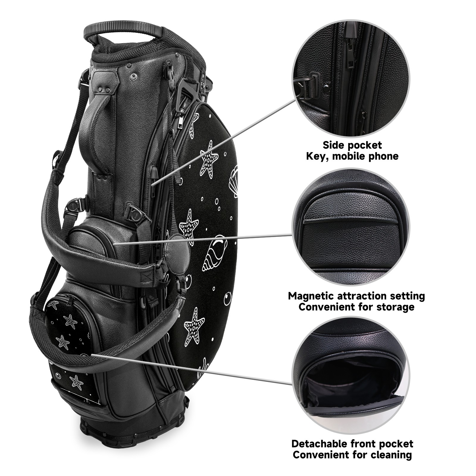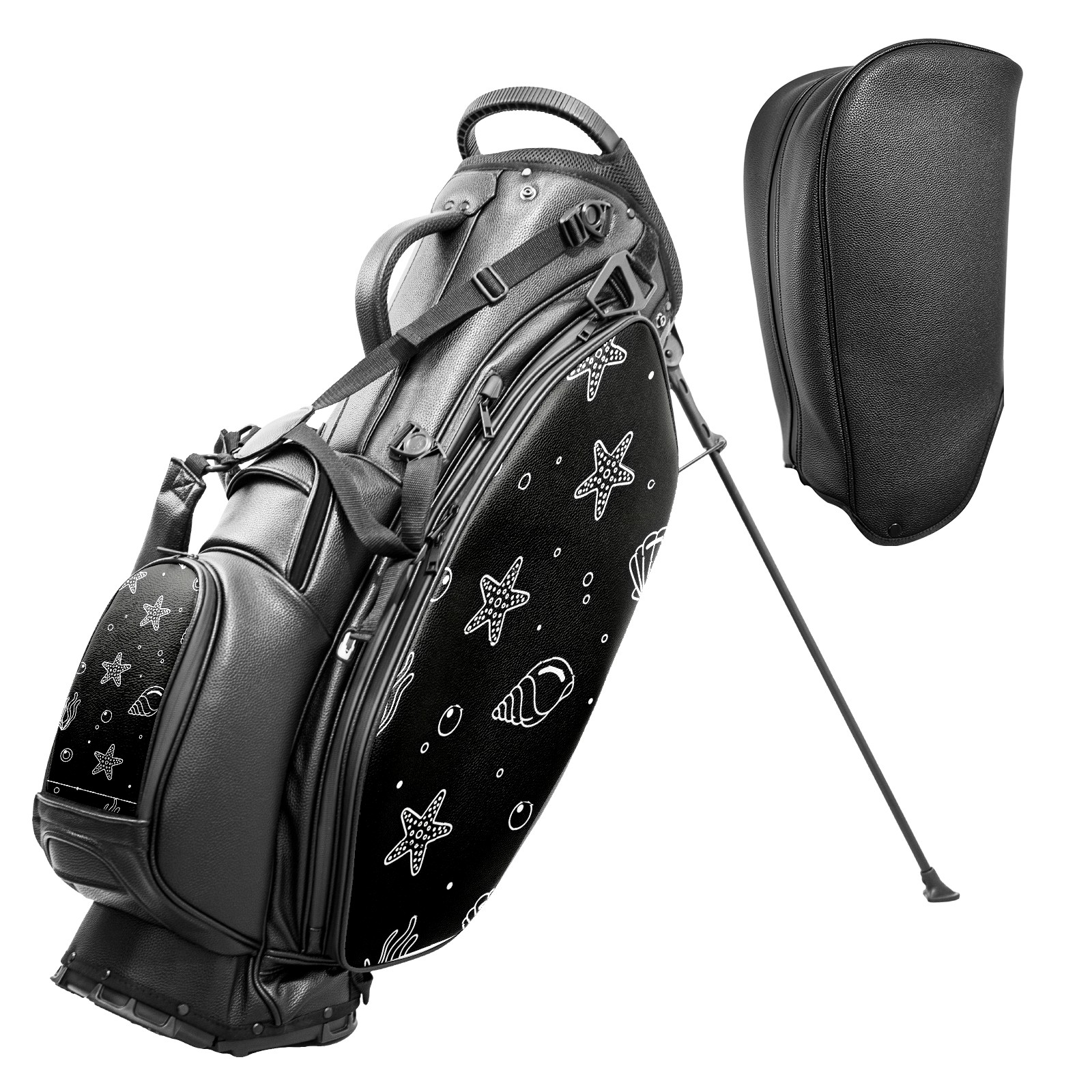 Lightweight Golf Stand Bag - 5-Way Top Divider, Golf Club Carry Bag with Adjustable Double Shoulder Straps, Zipper Storage Pockets + Rain Cover, Ideal for Men & Women Golfers Minimalist Black And White Starfish