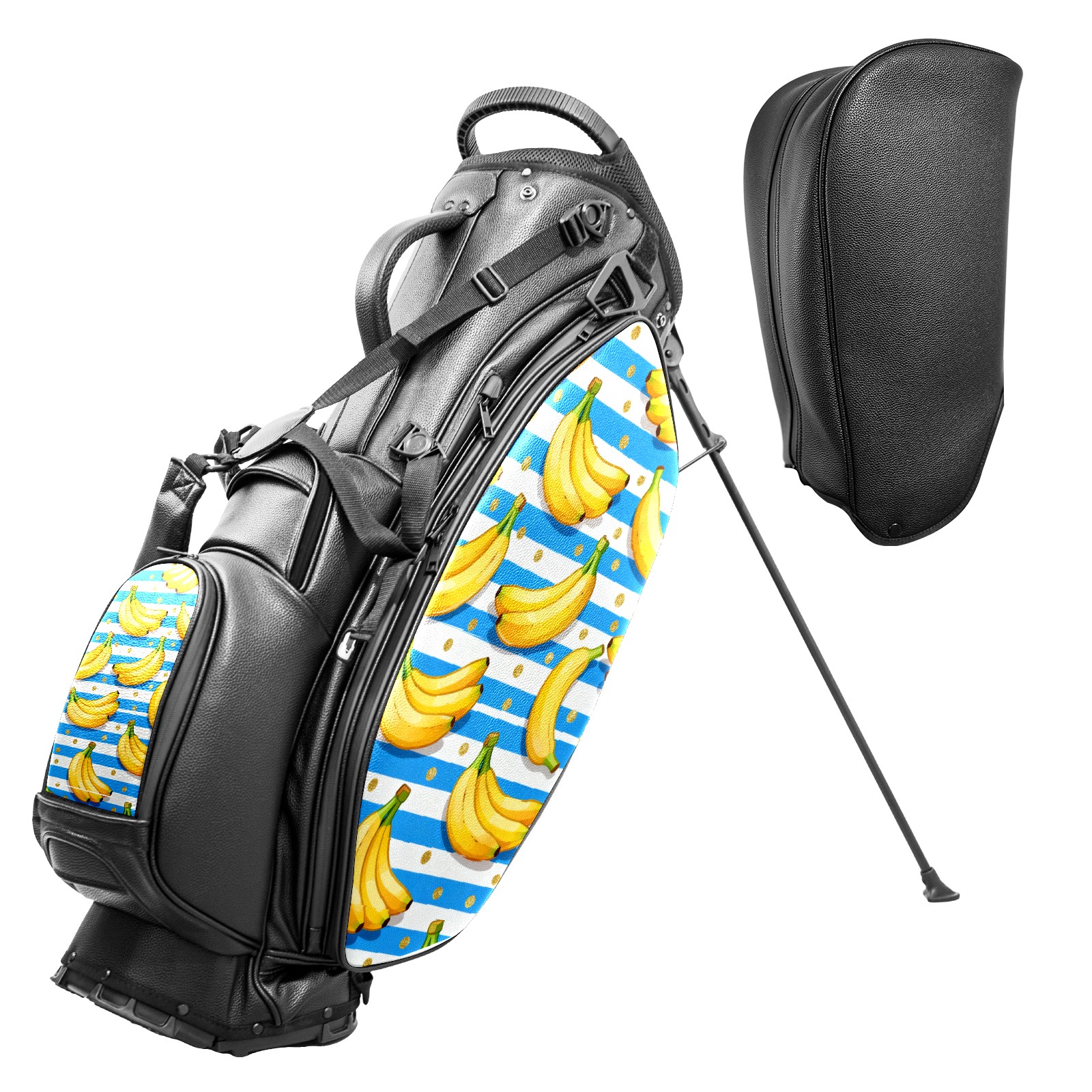 Lightweight Golf Stand Bag - 5-Way Top Divider, Golf Club Carry Bag with Adjustable Double Shoulder Straps, Zipper Storage Pockets + Rain Cover, Ideal for Men & Women Golfers Banana Blue Gold Dots