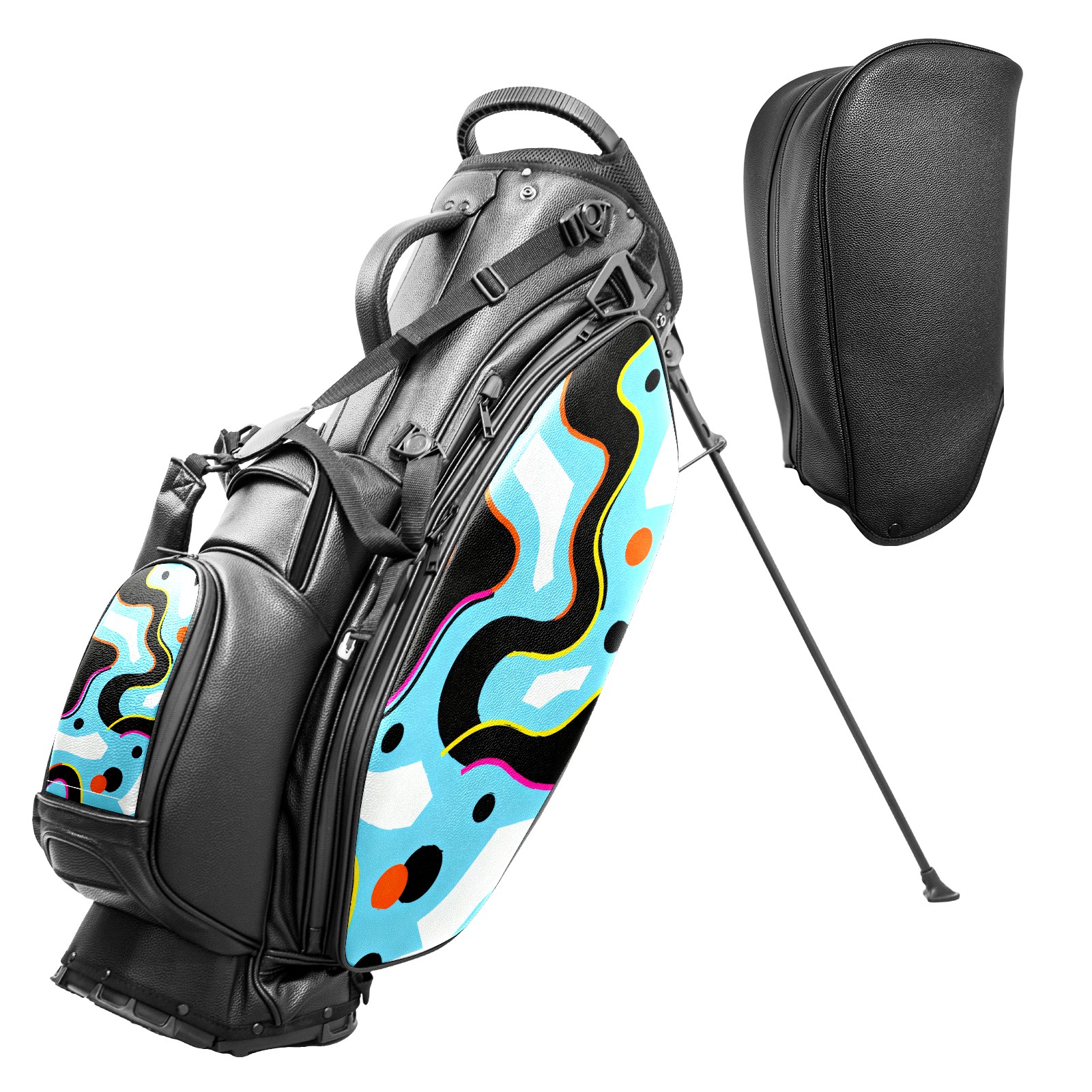 Lightweight Golf Stand Bag - 5-Way Top Divider, Golf Club Carry Bag with Adjustable Double Shoulder Straps, Zipper Storage Pockets + Rain Cover, Ideal for Men & Women Golfers Light Blue Colorful Curves