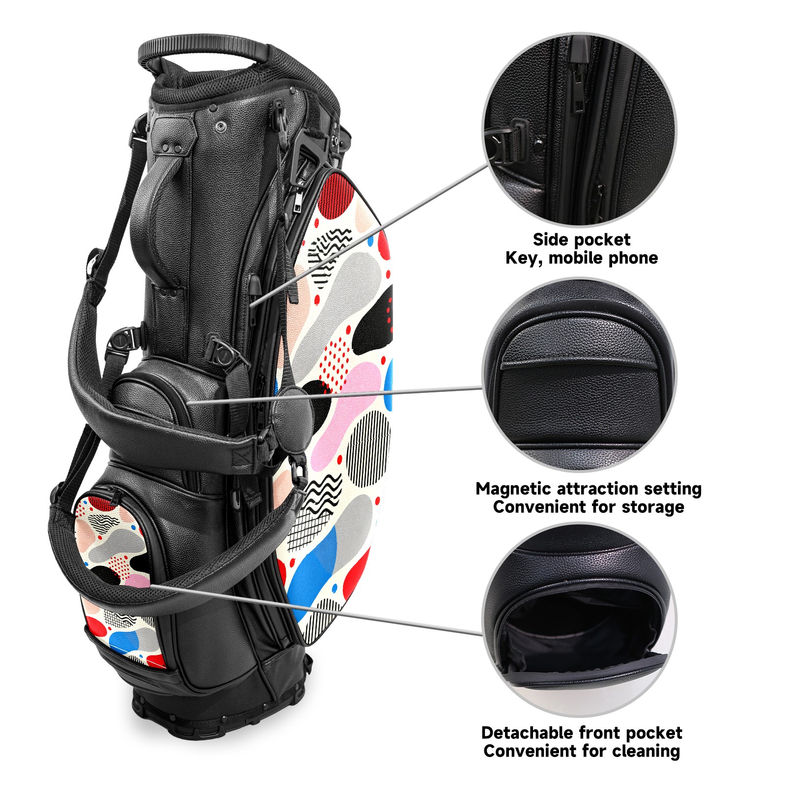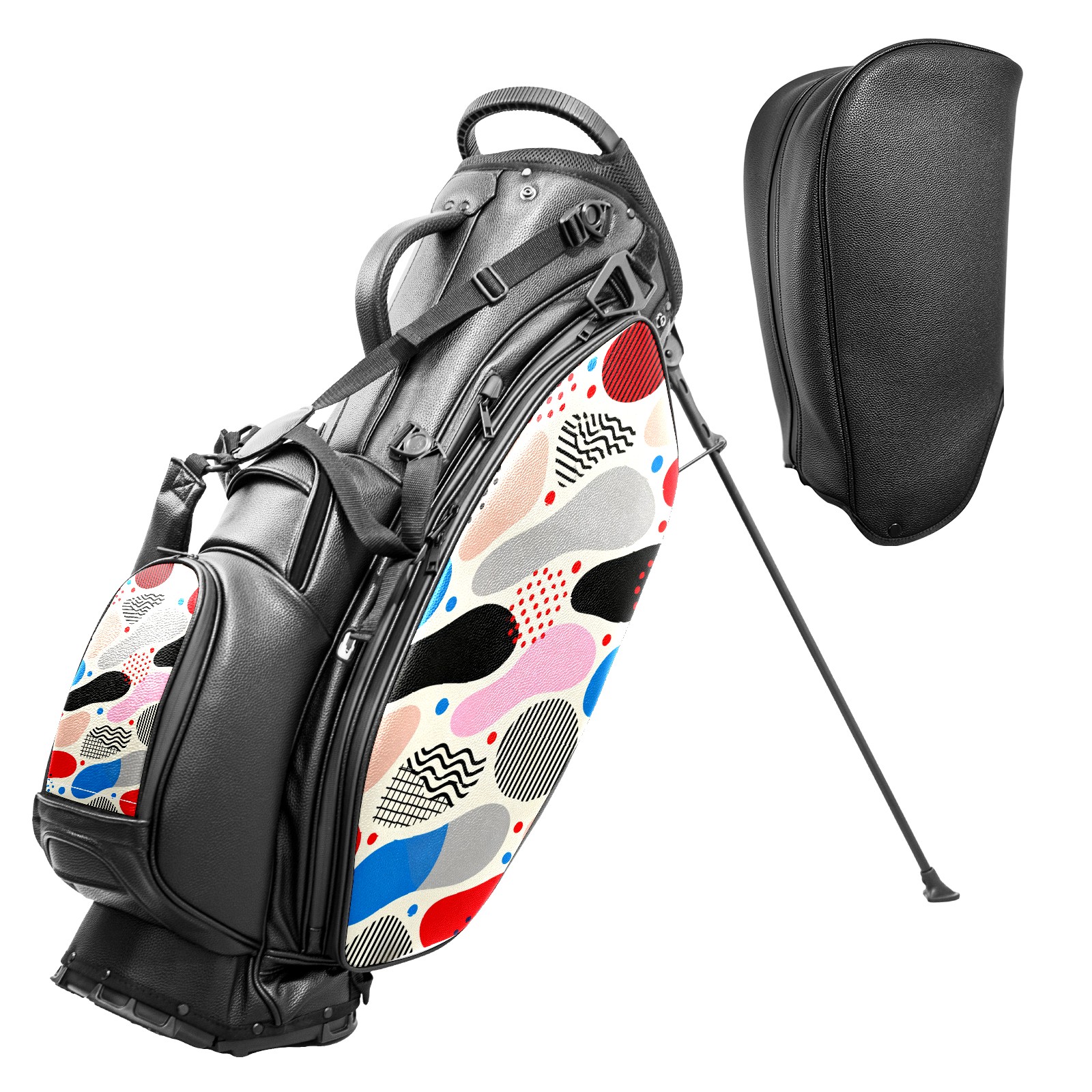 Lightweight Golf Stand Bag - 5-Way Top Divider, Golf Club Carry Bag with Adjustable Double Shoulder Straps, Zipper Storage Pockets + Rain Cover, Ideal for Men & Women Golfers Memphis-style Abstract Patterns