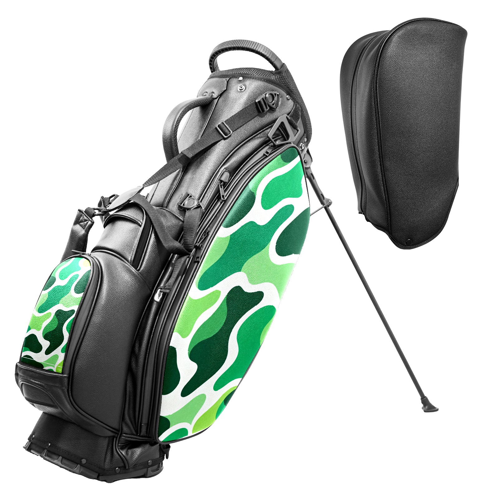 • <p>This golf bag combines versatility, durability, and quality, providing comprehensive protection and easy access for your golf clubs. Its precise dimensions of 130 x 37 x 31 cm (with rain cover) and 90 x 31 x 37 cm (without rain cover) strike the perfect balance between portability and storage capacity.The five-way head frame (with five-way top compartments) allows for strategic compartmentalization, allowing you to neatly organize your various clubs and separate them to protect them from bumps, scratches, and scuffs. Its versatile compartmental design features a spacious five-compartment structure, including a separate, full-size club compartment, to fully accommodate your clubs while protecting their integrity.This bag features a versatile storage system with multiple waterproof zippered pockets for securely storing golf accessories, as well as a dedicated insulated cooler pocket with excellent insulation to keep your drinks cold. The built-in rain cover effectively repels moisture, ensuring your clubs remain dry and protected even in wet weather. For enhanced carrying comfort, this bag features ergonomically designed, padded, breathable, adjustable shoulder straps and an adjustable chest strap to distribute shoulder pressure for easier and more comfortable carrying. A portable rear handle makes lifting and carrying easier.Quality is evident in every detail: double-stitched reinforced edges enhance structural stability, smooth and durable zippers ensure long-lasting reliability, and wear-resistant bottom rivets ensure secure placement on all terrains, effectively preventing wear and tear. Crafted from classic pebbled matte PU fabric, it perfectly complements both business and casual occasions. Available in black and white, it exudes understated elegance and sophistication.This golf bag, with its sturdy plastic base, combines premium quality and durability, making it the ideal companion for every golfer, whether heading to the course for a casual round or attending a business golf event.</p>