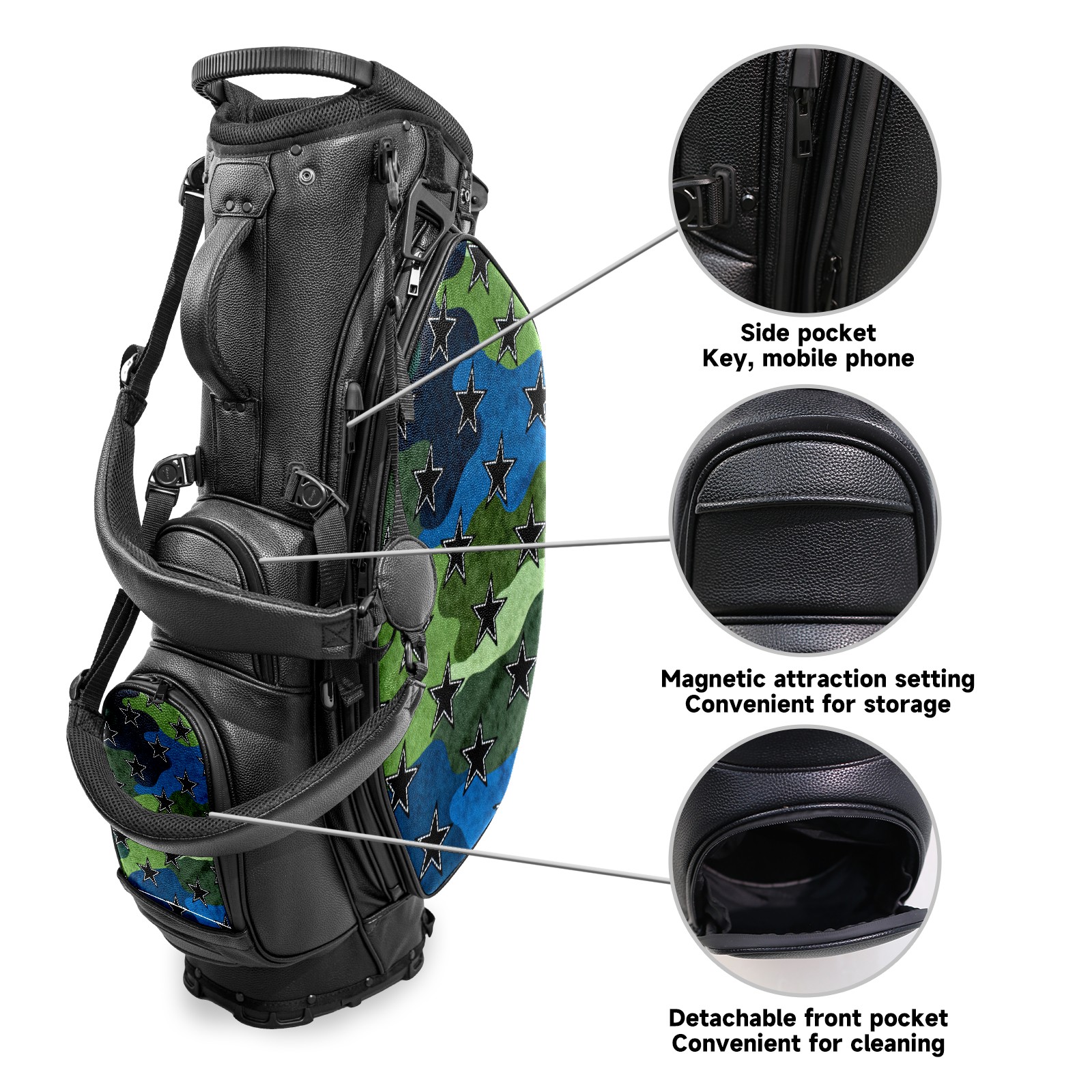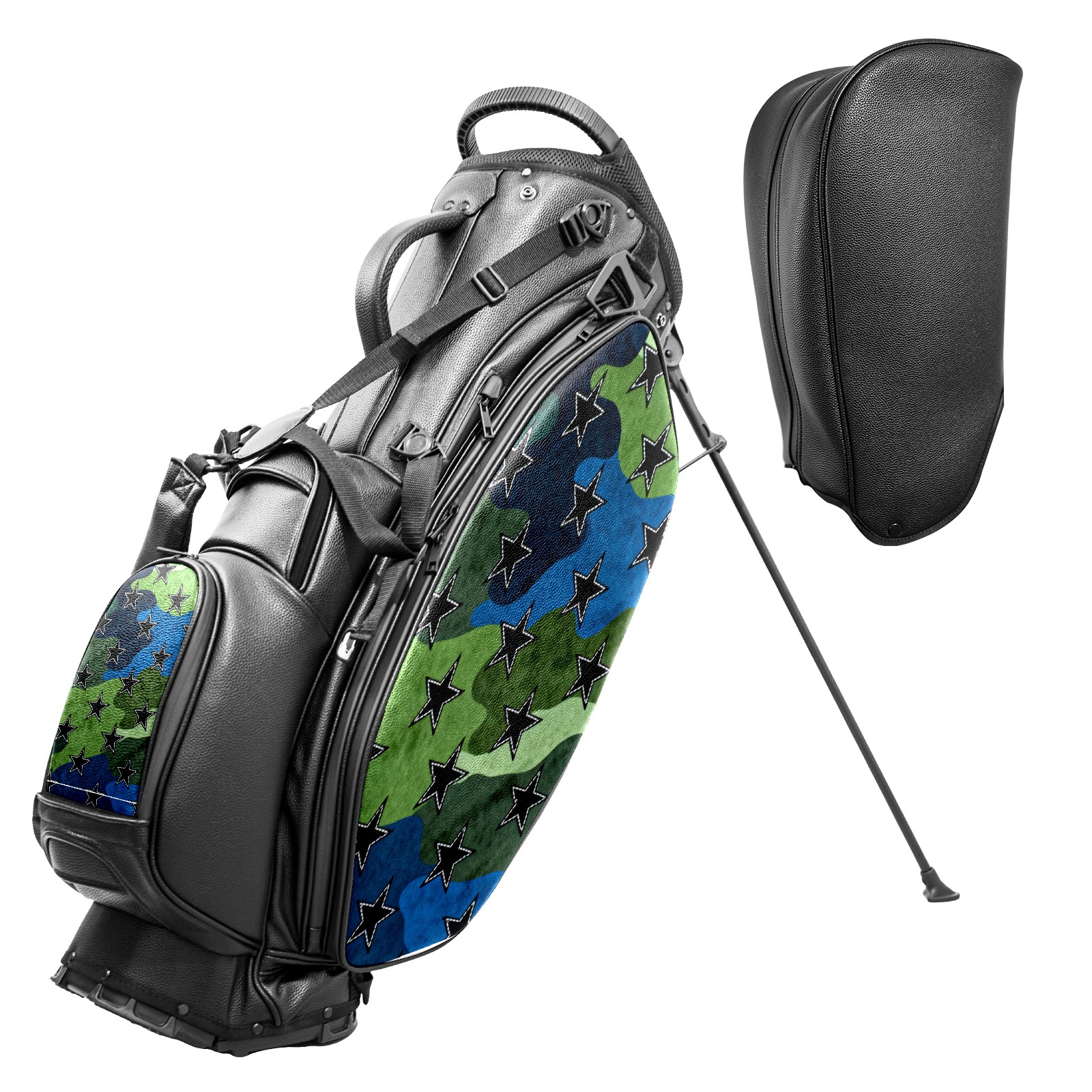 Lightweight Golf Stand Bag - 5-Way Top Divider, Golf Club Carry Bag with Adjustable Double Shoulder Straps, Zipper Storage Pockets + Rain Cover, Ideal for Men & Women Golfers Camouflage Black Star