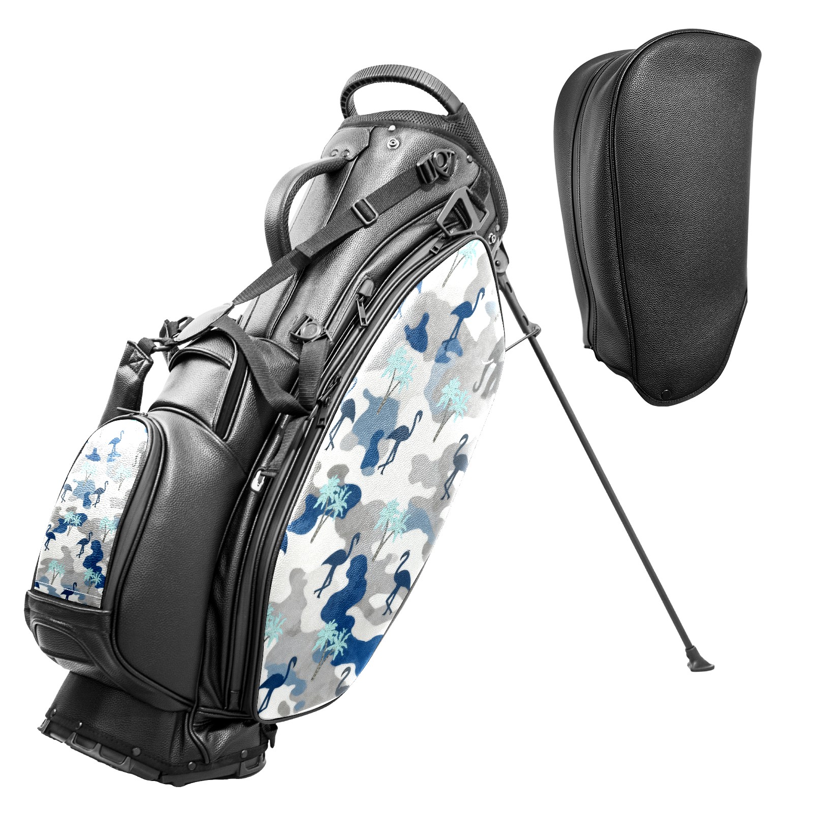 Lightweight Golf Stand Bag - 5-Way Top Divider, Golf Club Carry Bag with Adjustable Double Shoulder Straps, Zipper Storage Pockets + Rain Cover, Ideal for Men & Women Golfers Blue Camouflage Flamingos