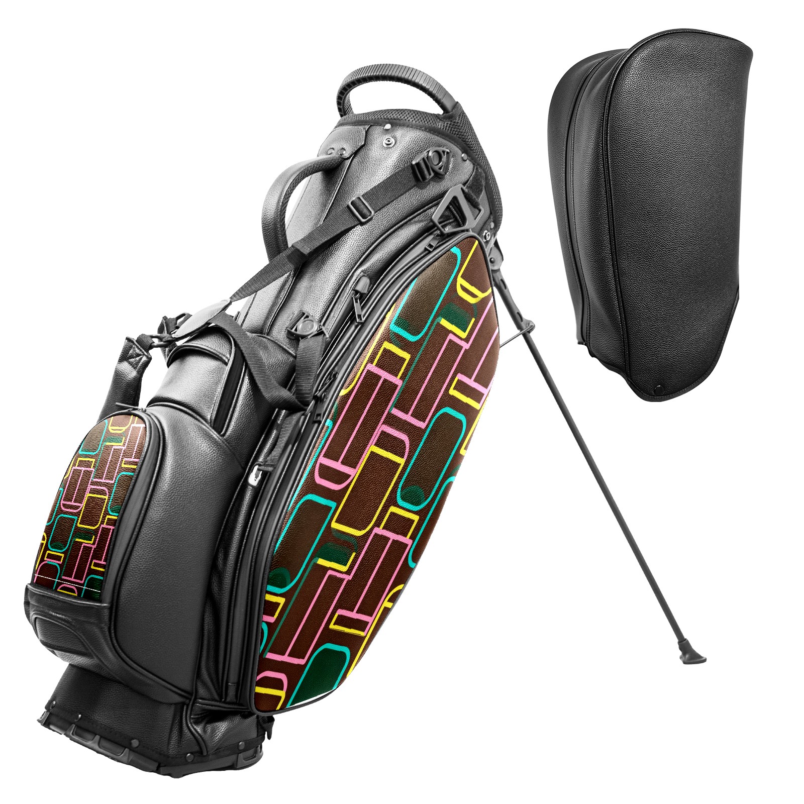 • <p>This golf bag combines versatility, durability, and quality, providing comprehensive protection and easy access for your golf clubs. Its precise dimensions of 130 x 37 x 31 cm (with rain cover) and 90 x 31 x 37 cm (without rain cover) strike the perfect balance between portability and storage capacity.The five-way head frame (with five-way top compartments) allows for strategic compartmentalization, allowing you to neatly organize your various clubs and separate them to protect them from bumps, scratches, and scuffs. Its versatile compartmental design features a spacious five-compartment structure, including a separate, full-size club compartment, to fully accommodate your clubs while protecting their integrity.This bag features a versatile storage system with multiple waterproof zippered pockets for securely storing golf accessories, as well as a dedicated insulated cooler pocket with excellent insulation to keep your drinks cold. The built-in rain cover effectively repels moisture, ensuring your clubs remain dry and protected even in wet weather. For enhanced carrying comfort, this bag features ergonomically designed, padded, breathable, adjustable shoulder straps and an adjustable chest strap to distribute shoulder pressure for easier and more comfortable carrying. A portable rear handle makes lifting and carrying easier.Quality is evident in every detail: double-stitched reinforced edges enhance structural stability, smooth and durable zippers ensure long-lasting reliability, and wear-resistant bottom rivets ensure secure placement on all terrains, effectively preventing wear and tear. Crafted from classic pebbled matte PU fabric, it perfectly complements both business and casual occasions. Available in black and white, it exudes understated elegance and sophistication.This golf bag, with its sturdy plastic base, combines premium quality and durability, making it the ideal companion for every golfer, whether heading to the course for a casual round or attending a business golf event.</p>