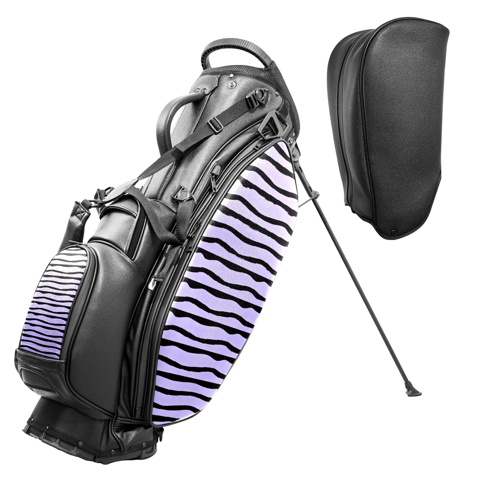 Lightweight Golf Stand Bag - 5-Way Top Divider, Golf Club Carry Bag with Adjustable Double Shoulder Straps, Zipper Storage Pockets + Rain Cover, Ideal for Men & Women Golfers Purple-black Wavy Stripe Pattern