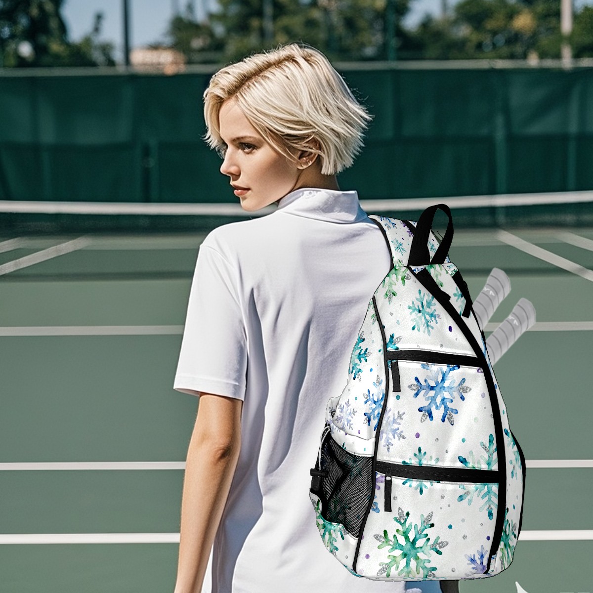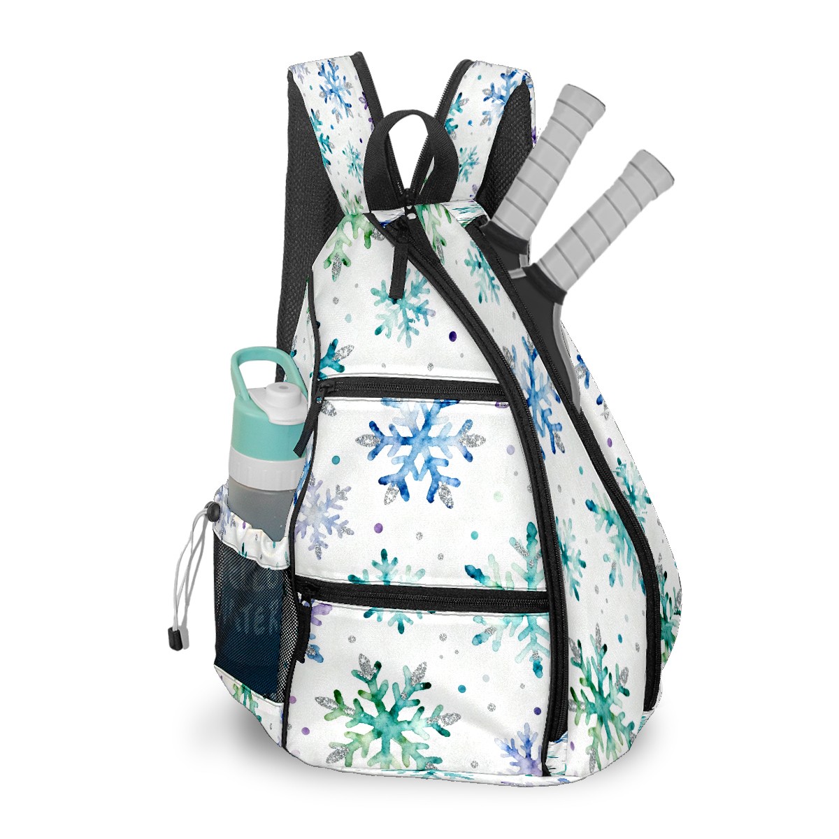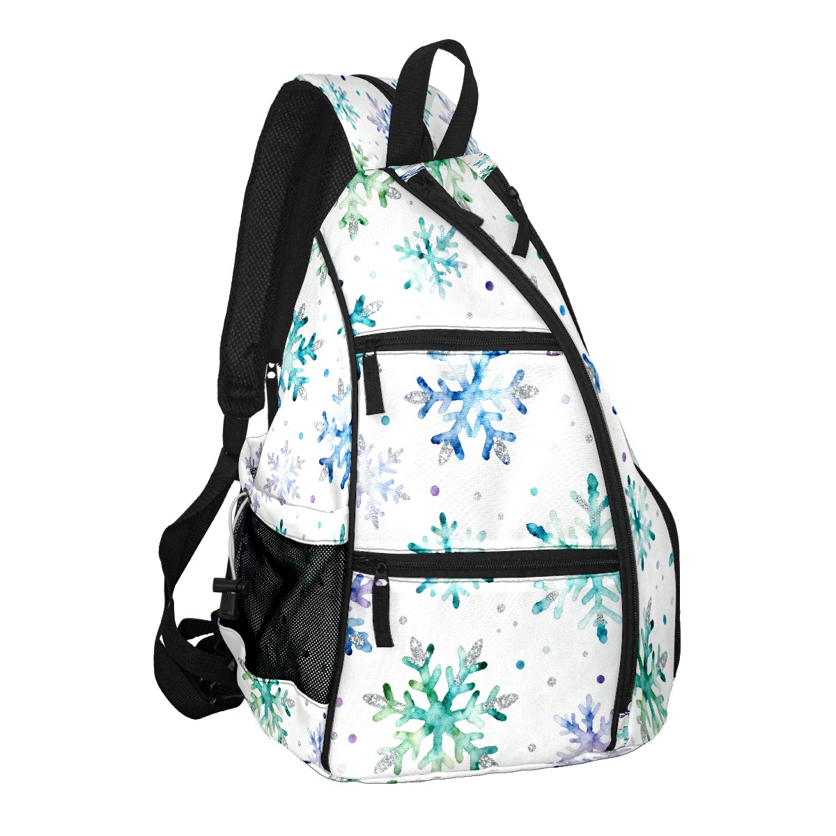 Pickleball Sling Bag for Women and Men - Backpack with Nylon Fabric/Woven Strap/Mesh Pocket/Fence Hook/Large Capacity/Adjustable Sling Bag Watercolor Gradient Snowflakes