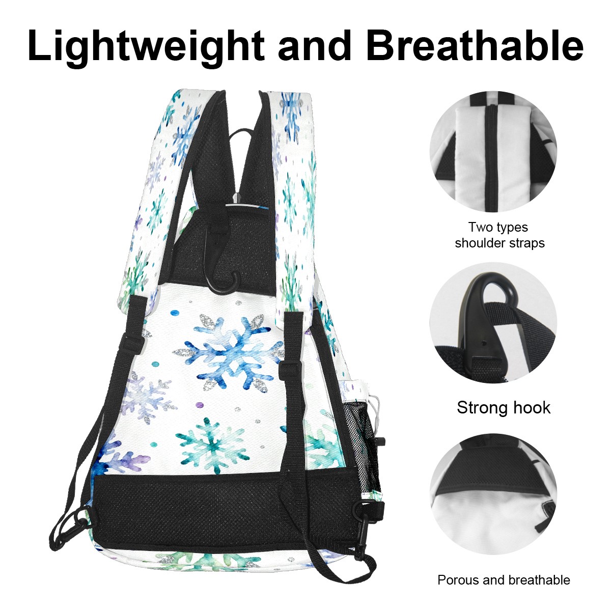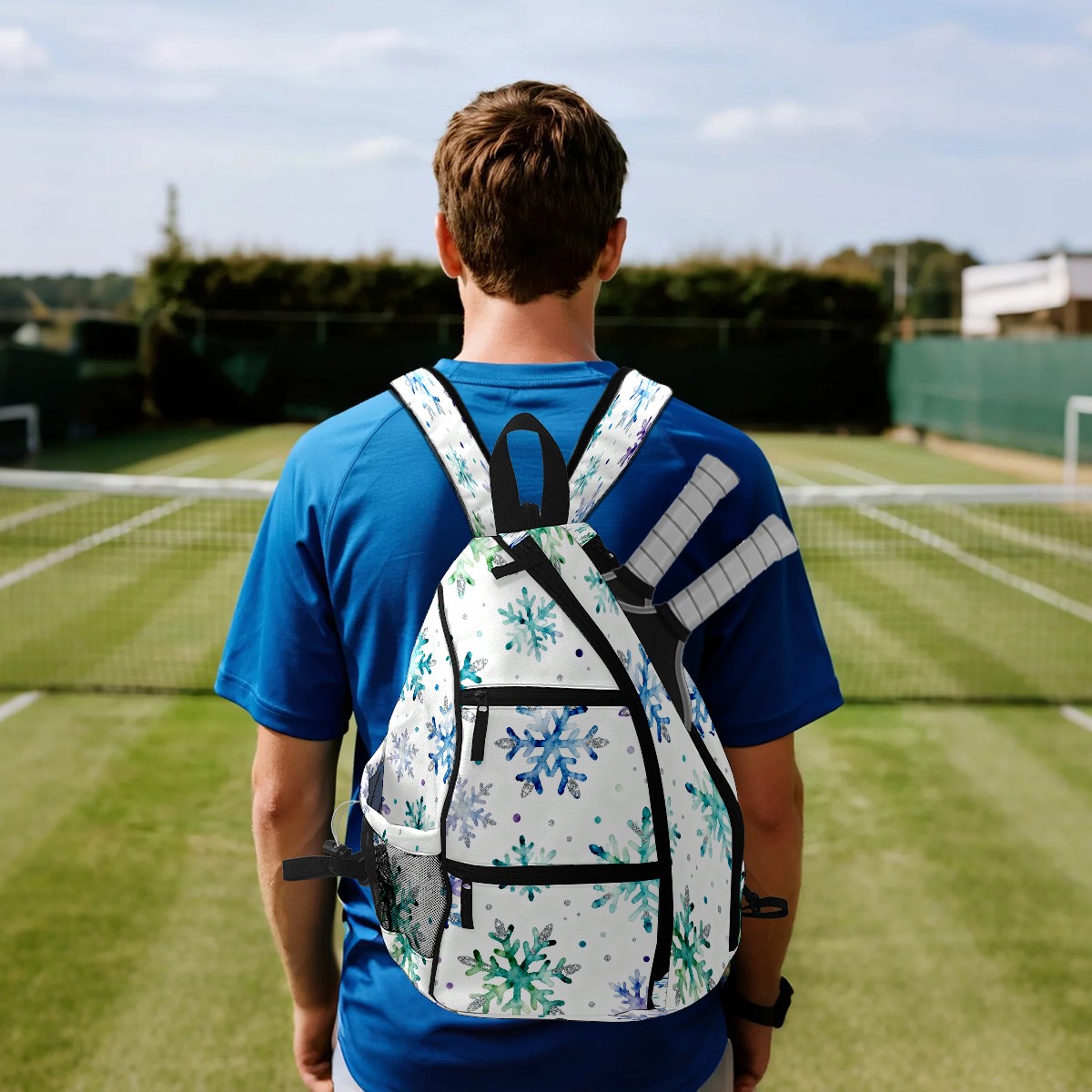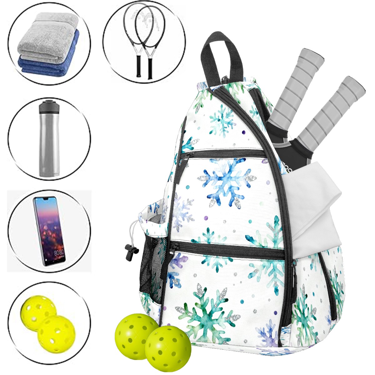 Pickleball Sling Bag for Women and Men - Backpack with Nylon Fabric/Woven Strap/Mesh Pocket/Fence Hook/Large Capacity/Adjustable Sling Bag Watercolor Gradient Snowflakes