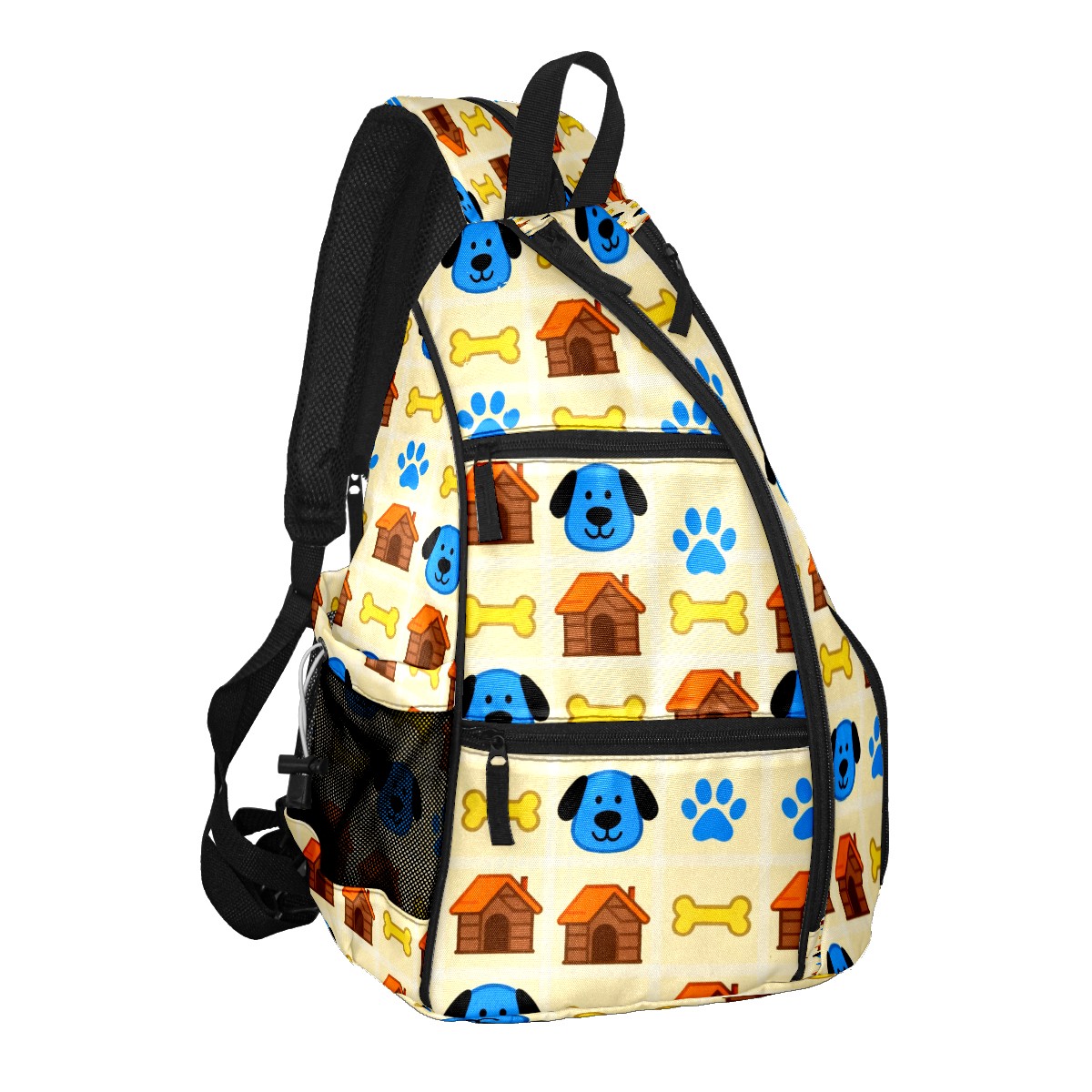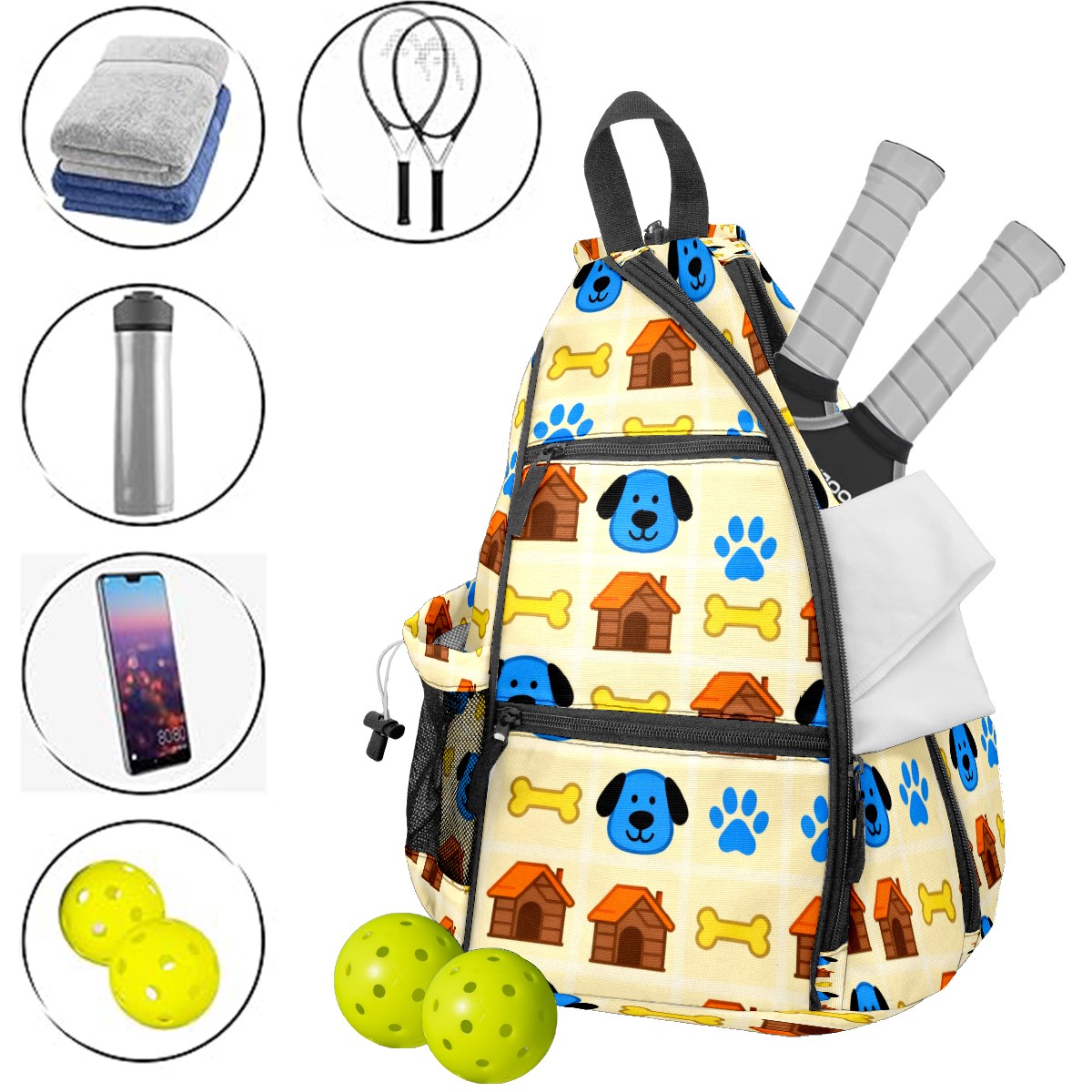 Pickleball Sling Bag for Women and Men - Backpack with Nylon Fabric/Woven Strap/Mesh Pocket/Fence Hook/Large Capacity/Adjustable Sling Bag Blue Dog Head Doghouse