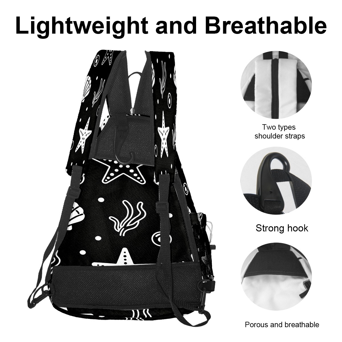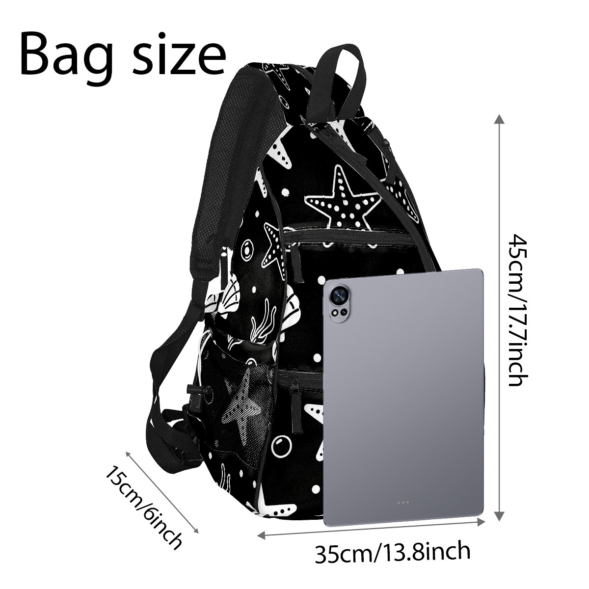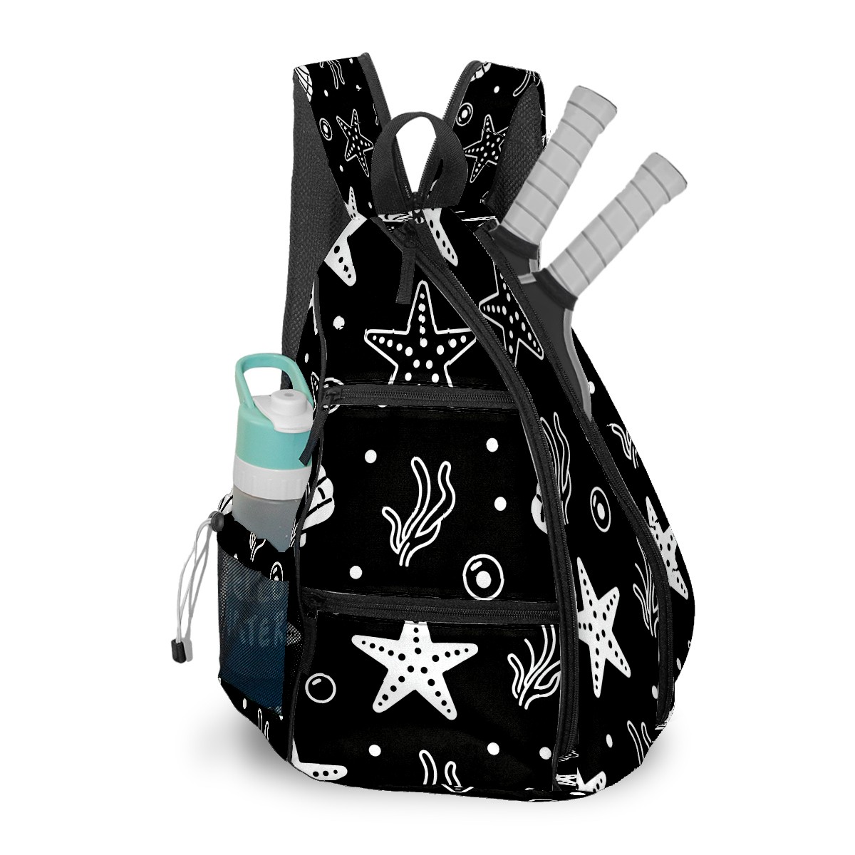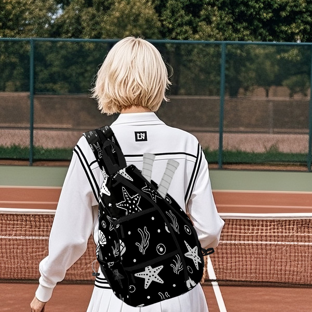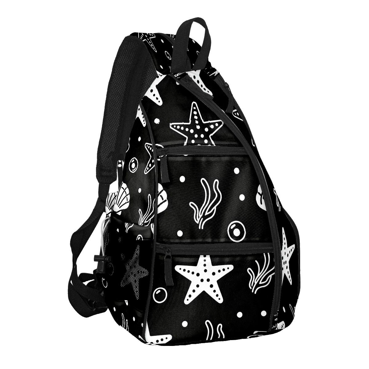 Pickleball Sling Bag for Women and Men - Backpack with Nylon Fabric/Woven Strap/Mesh Pocket/Fence Hook/Large Capacity/Adjustable Sling Bag Minimalist Black And White Starfish