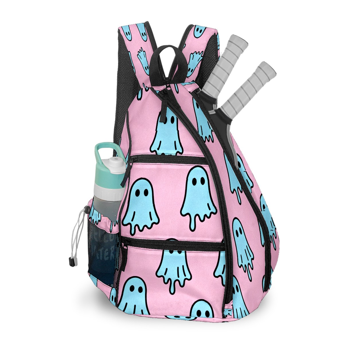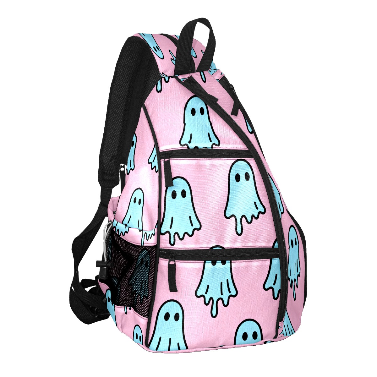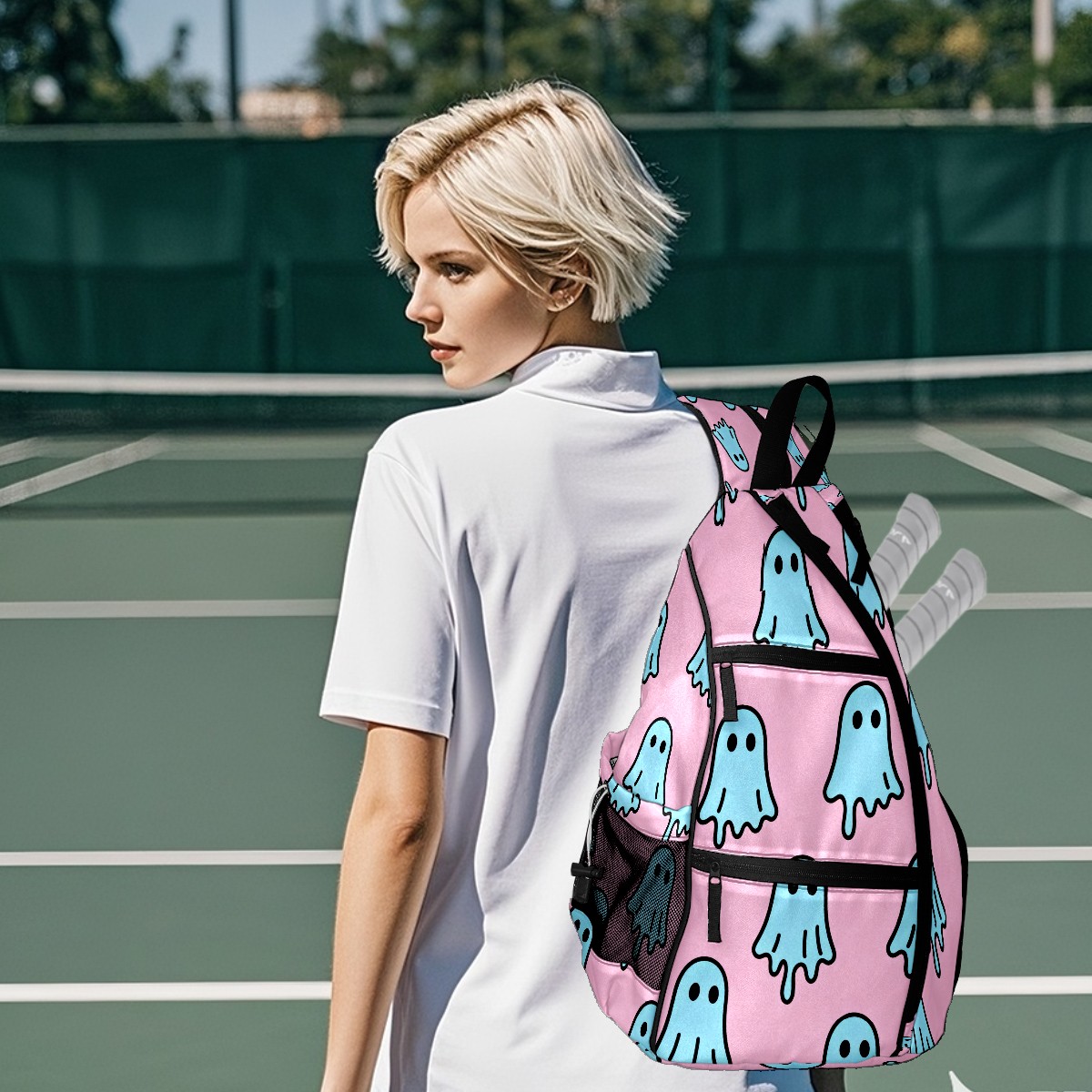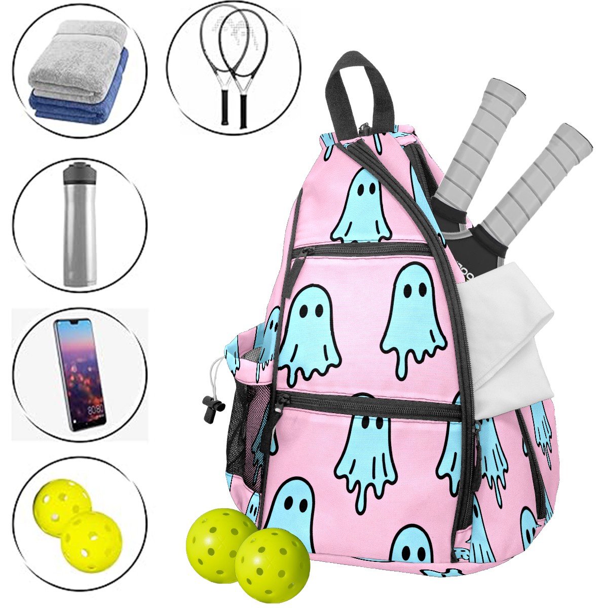 Pickleball Sling Bag for Women and Men - Backpack with Nylon Fabric/Woven Strap/Mesh Pocket/Fence Hook/Large Capacity/Adjustable Sling Bag Light Blue Ghost