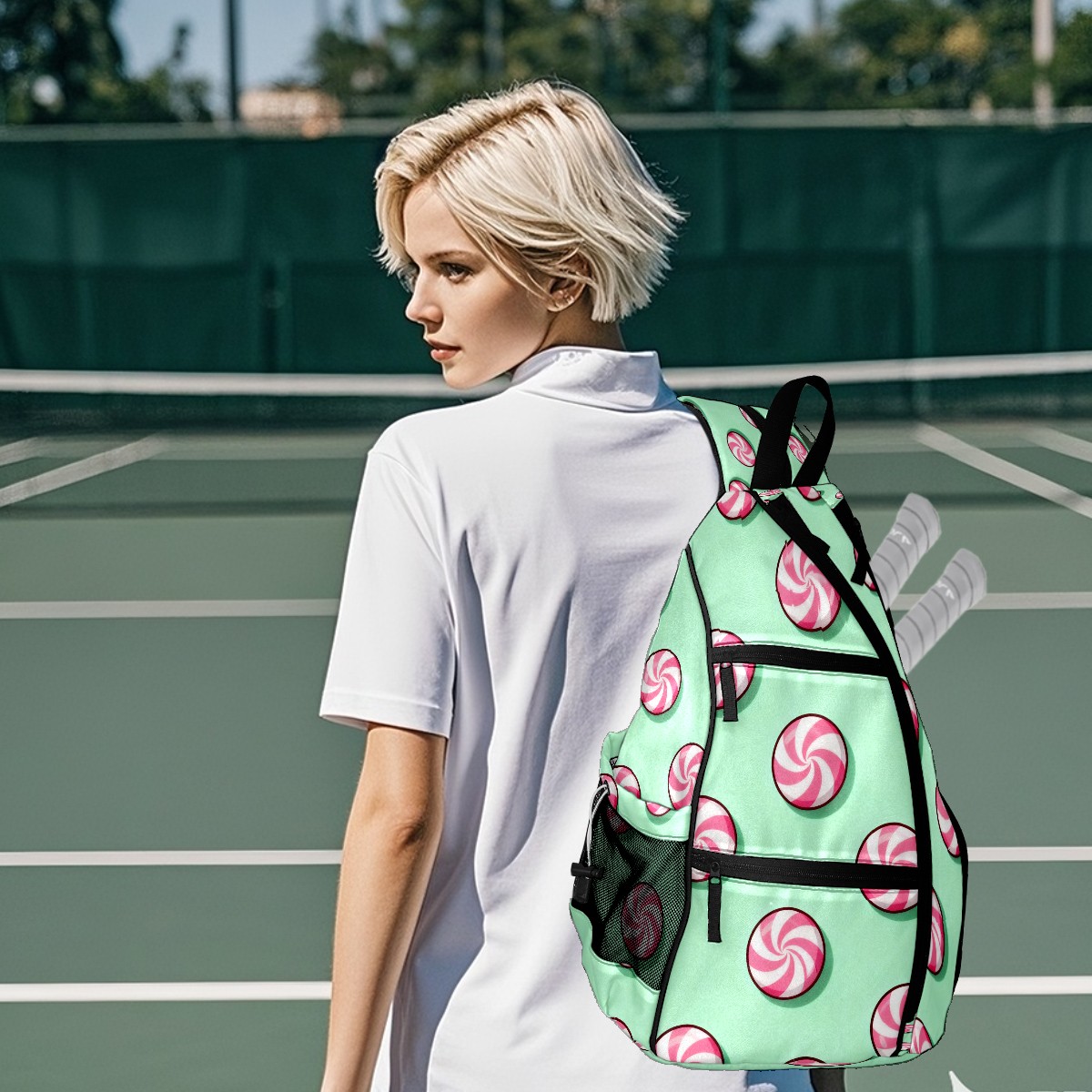 Pickleball Sling Bag for Women and Men - Backpack with Nylon Fabric/Woven Strap/Mesh Pocket/Fence Hook/Large Capacity/Adjustable Sling Bag Pink Candy