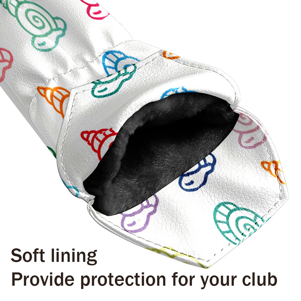 PU Leather Golf Putter Head Covers for Driver, Fairway Wood & Hybrid Clubs, Unisex, Fits All Brands Colorful Line Seashell