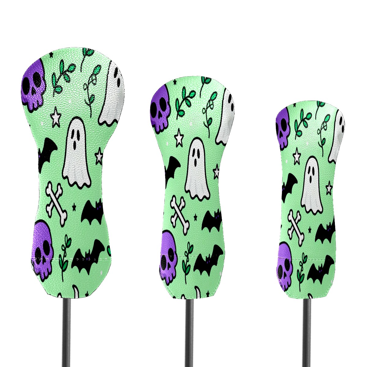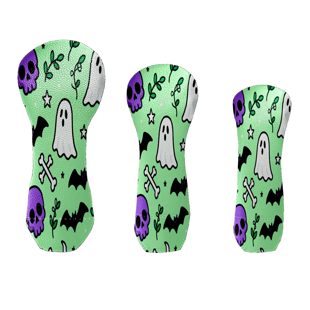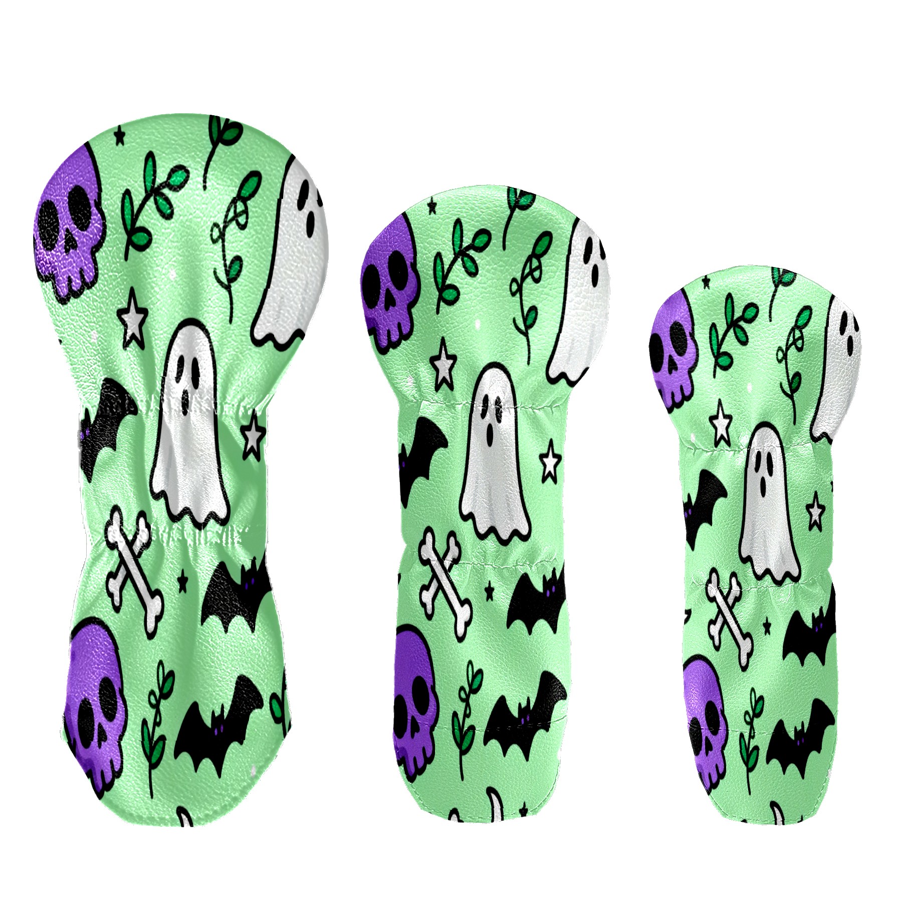 PU Leather Golf Putter Head Covers for Driver, Fairway Wood & Hybrid Clubs, Unisex, Fits All Brands Halloween Element Pattern Green