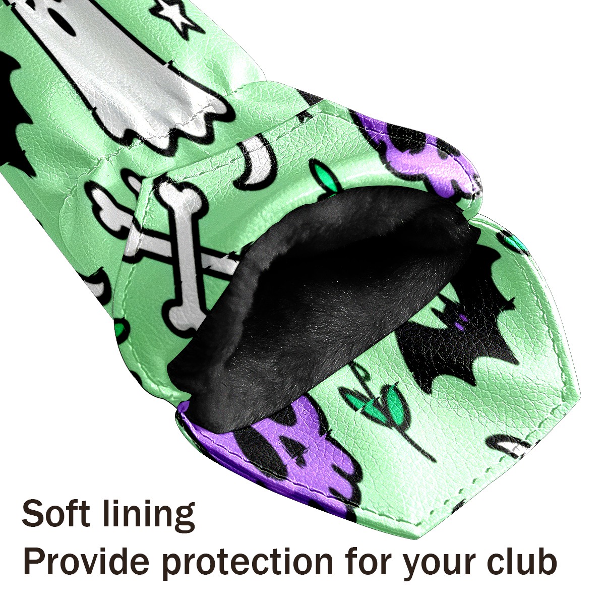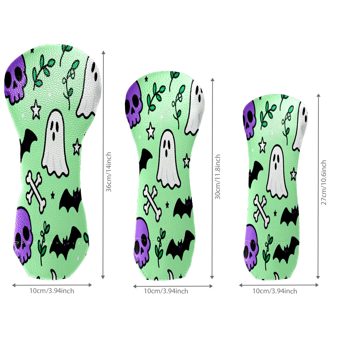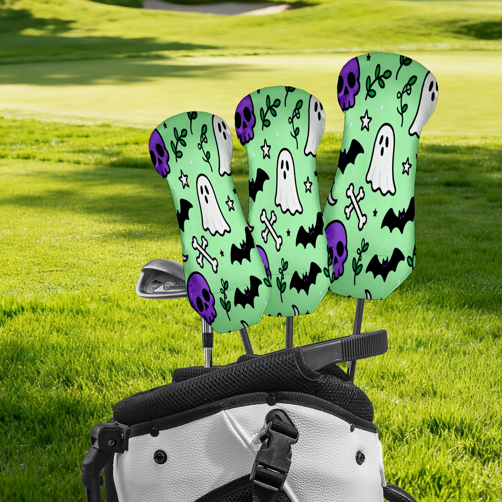 PU Leather Golf Putter Head Covers for Driver, Fairway Wood & Hybrid Clubs, Unisex, Fits All Brands Halloween Element Pattern Green