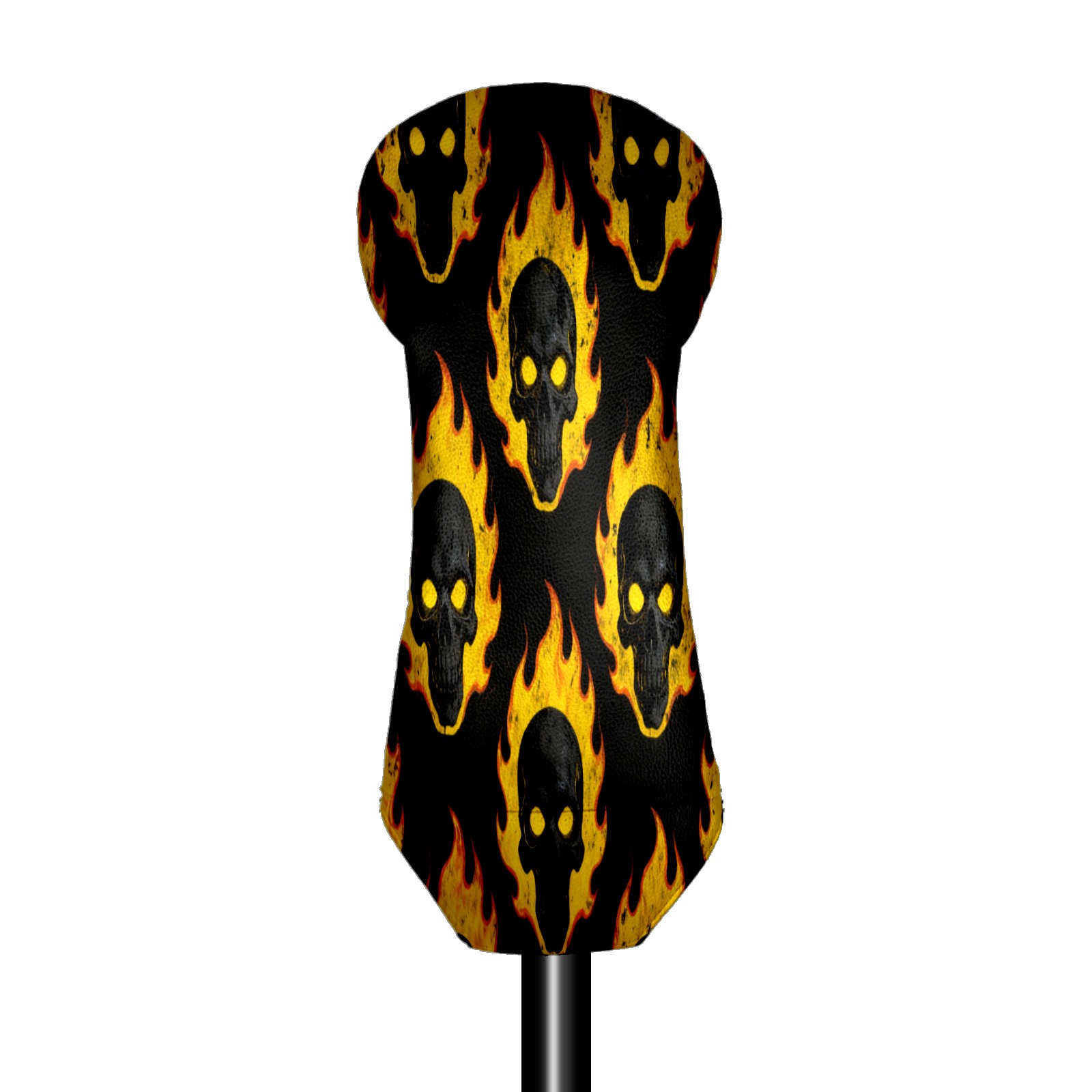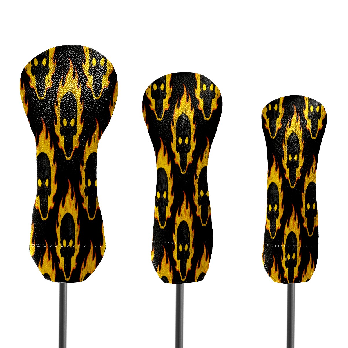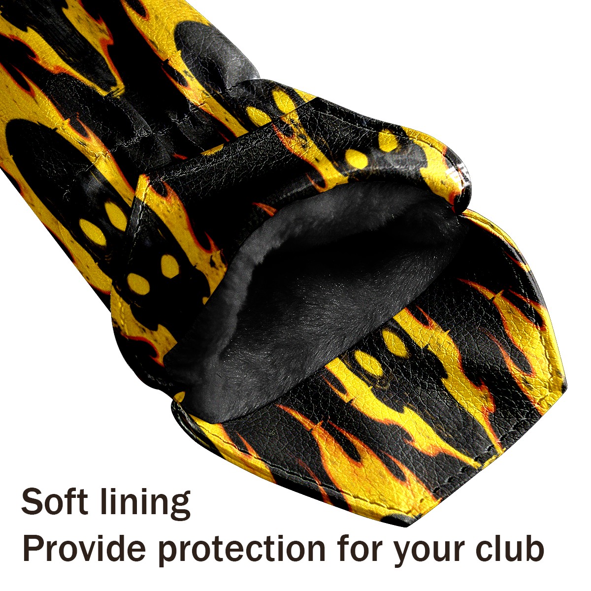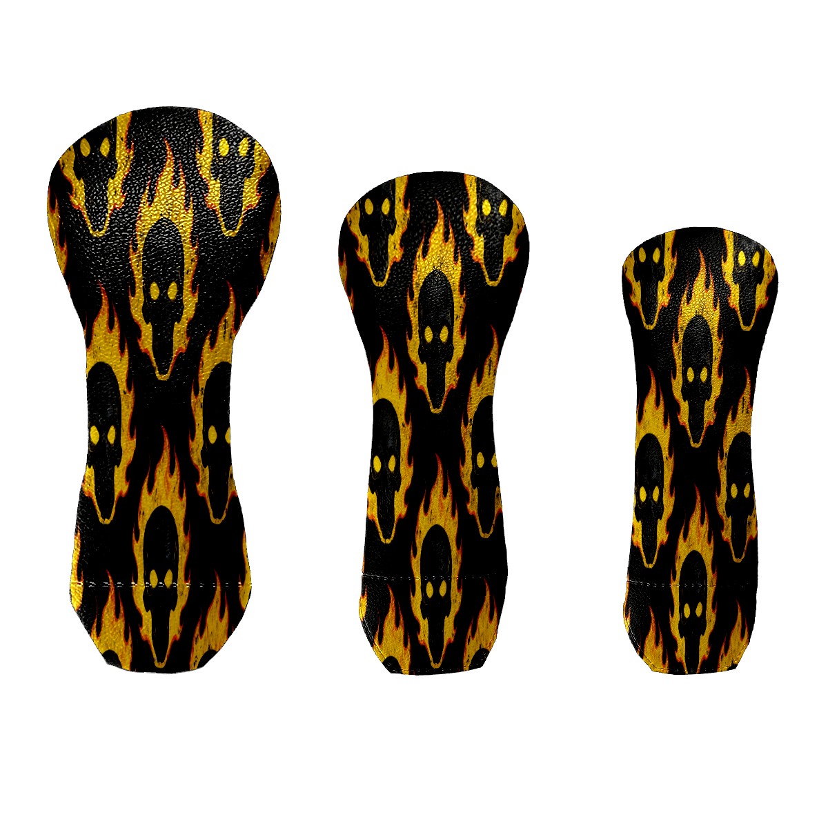 PU Leather Golf Putter Head Covers for Driver, Fairway Wood & Hybrid Clubs, Unisex, Fits All Brands Yellow Flaming Skull