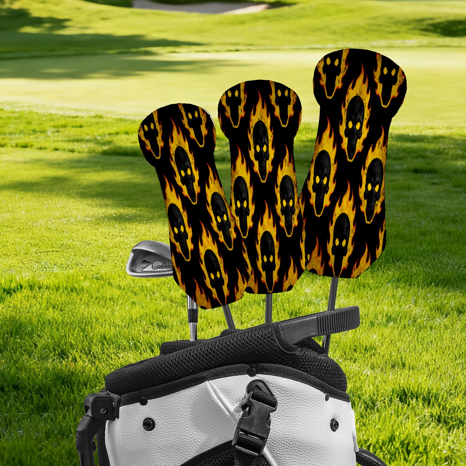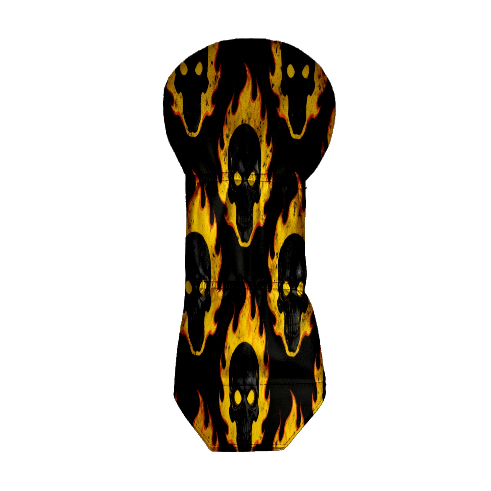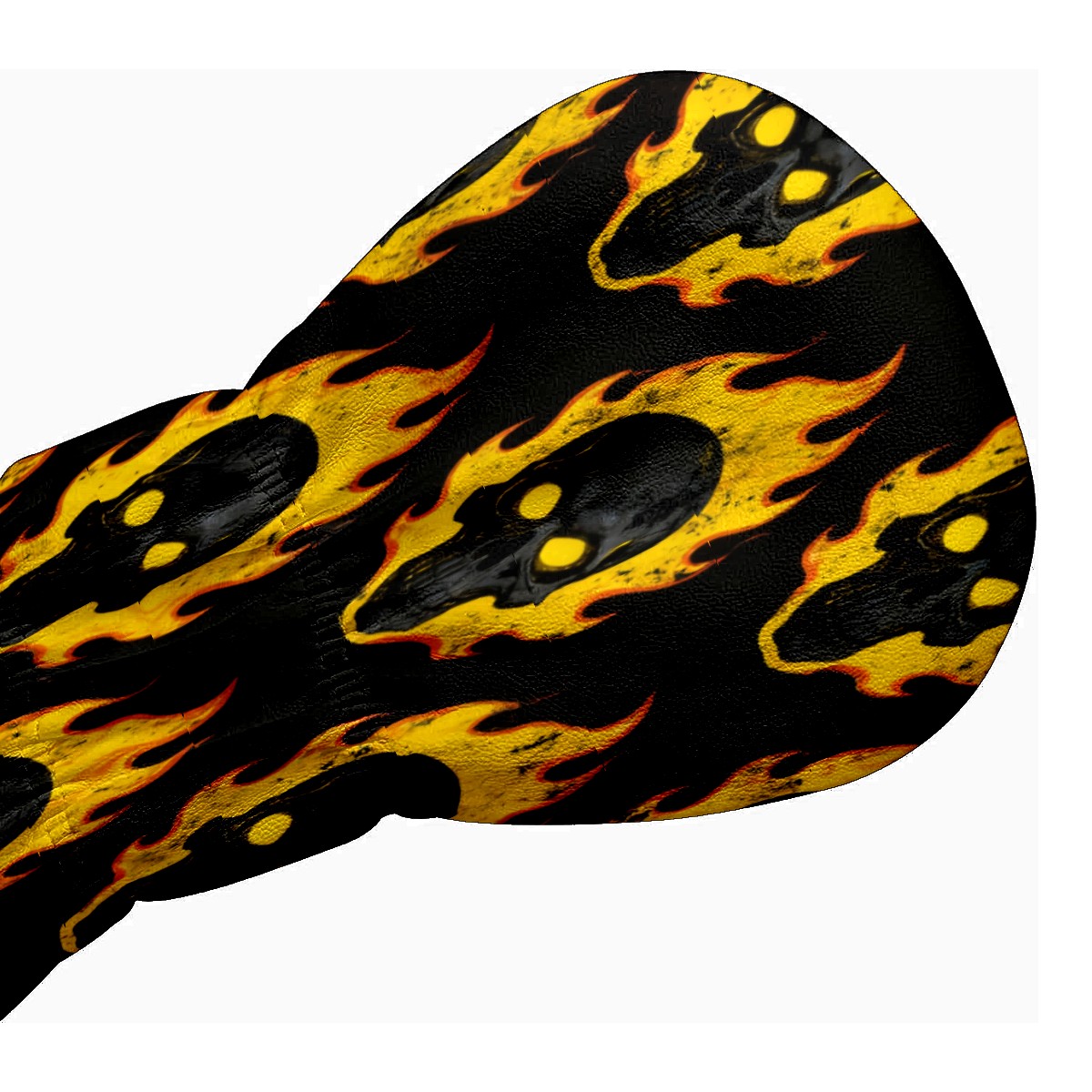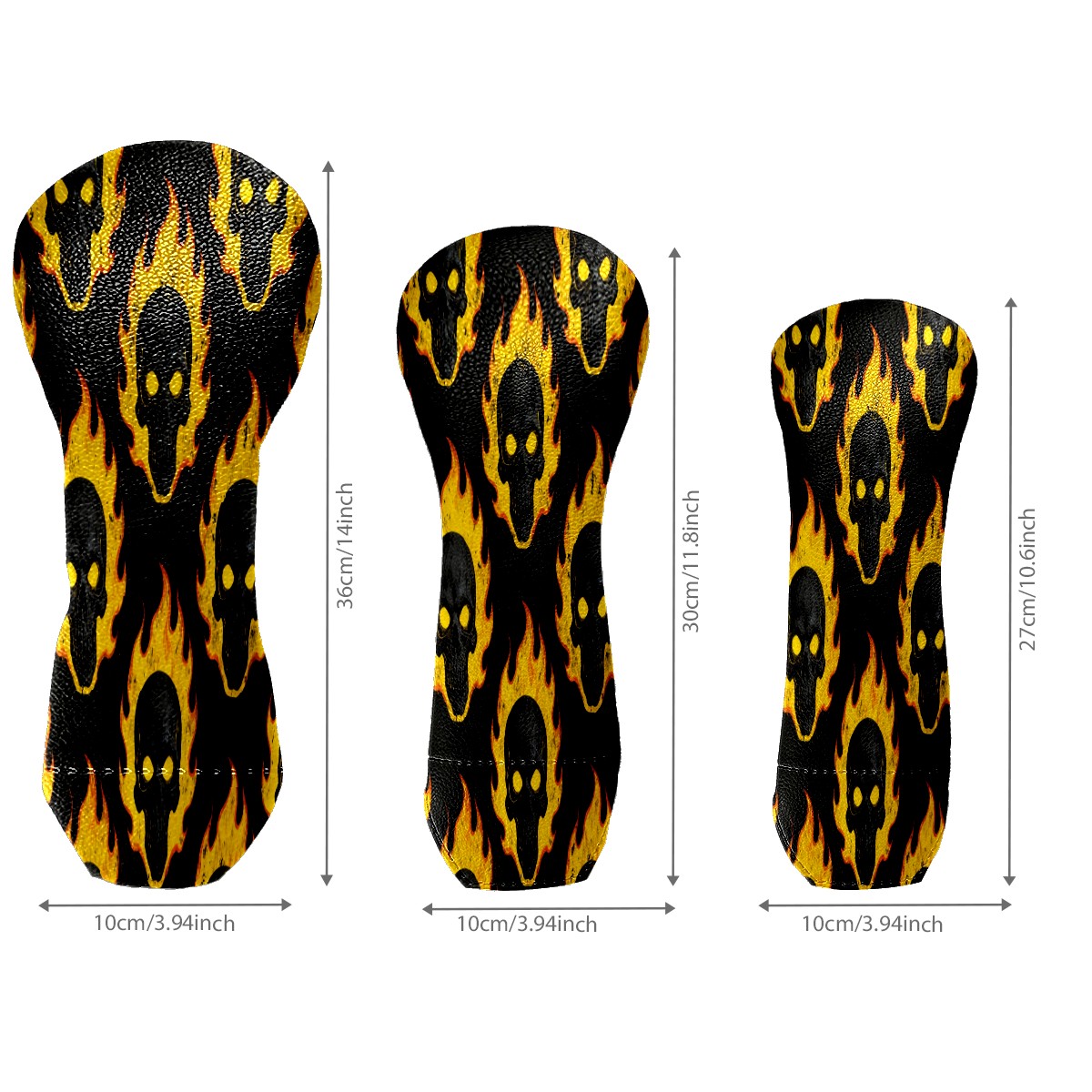PU Leather Golf Putter Head Covers for Driver, Fairway Wood & Hybrid Clubs, Unisex, Fits All Brands Yellow Flaming Skull