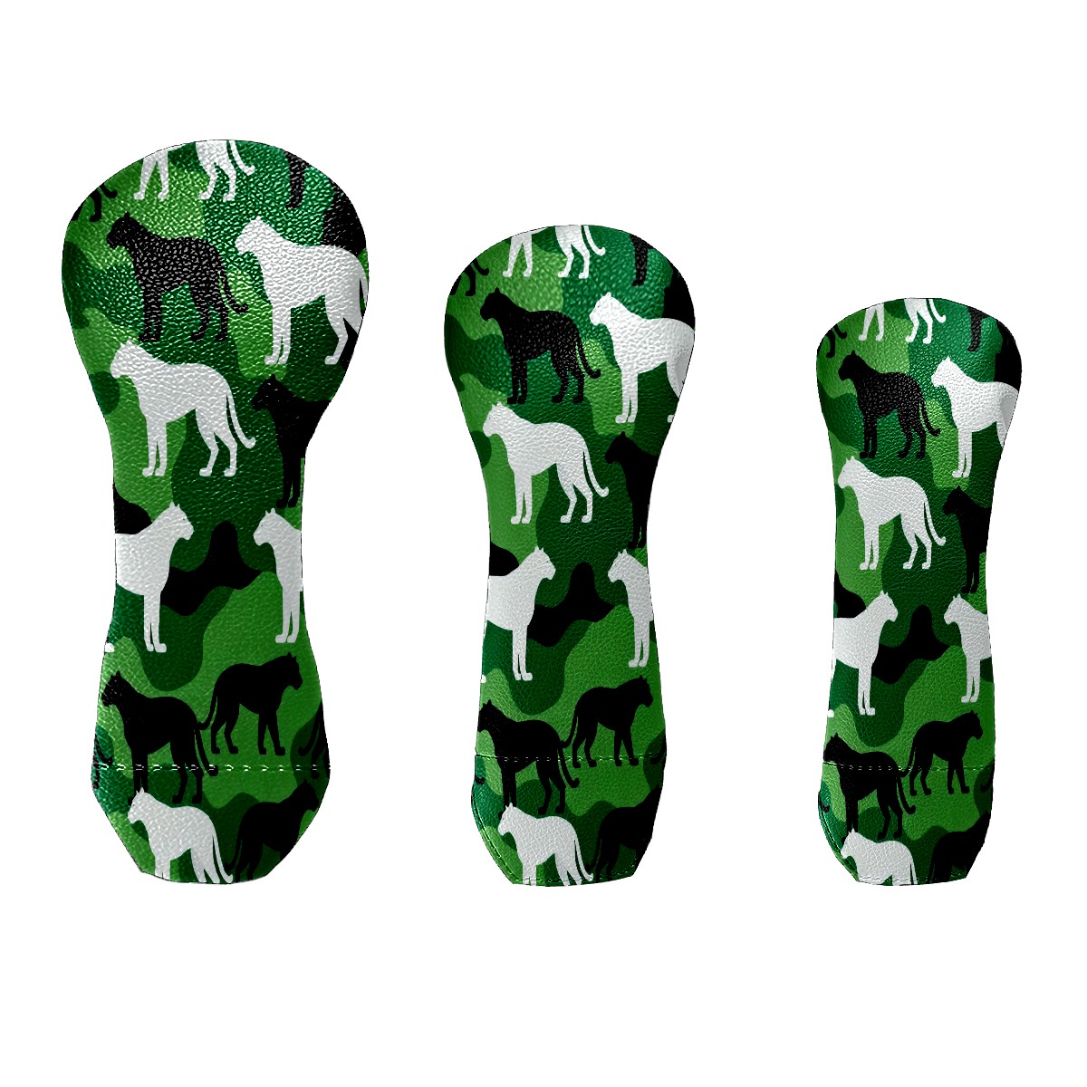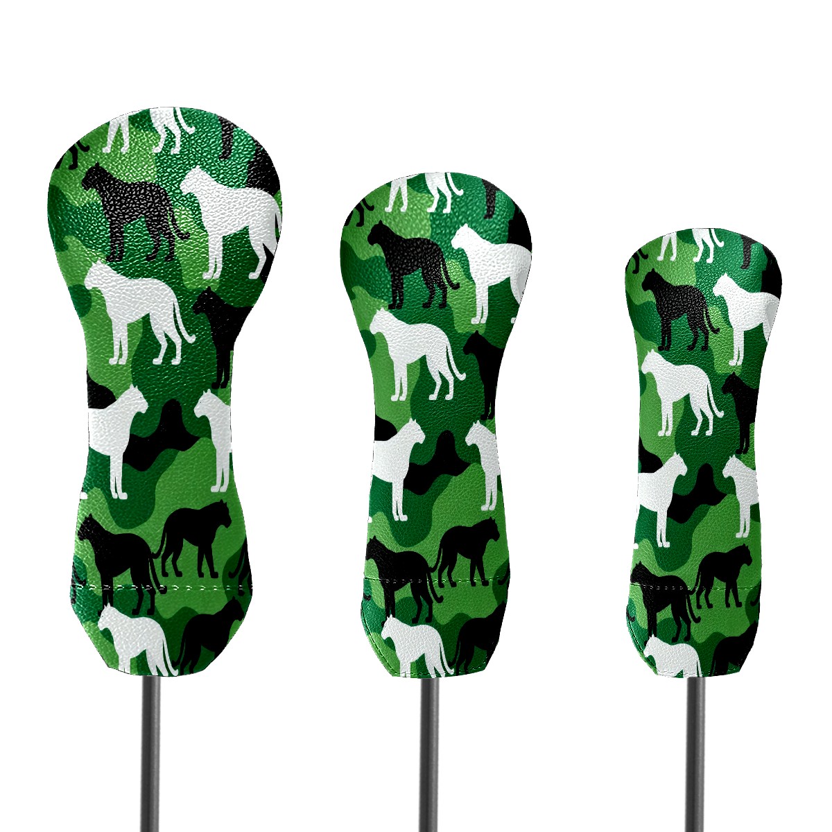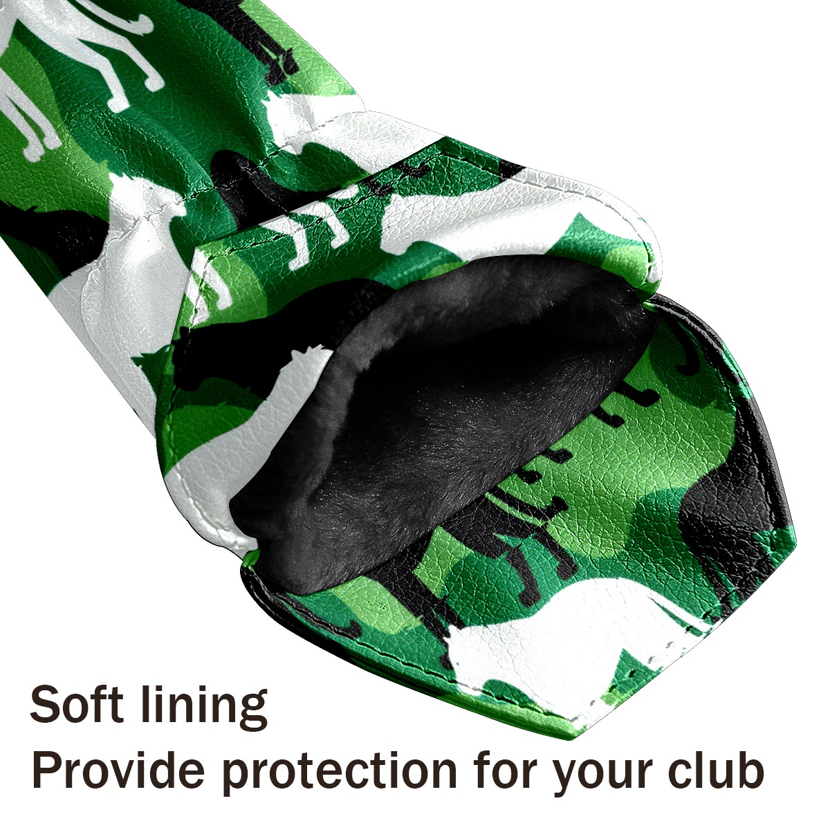 PU Leather Golf Putter Head Covers for Driver, Fairway Wood & Hybrid Clubs, Unisex, Fits All Brands Camouflage Silhouette Pattern Green